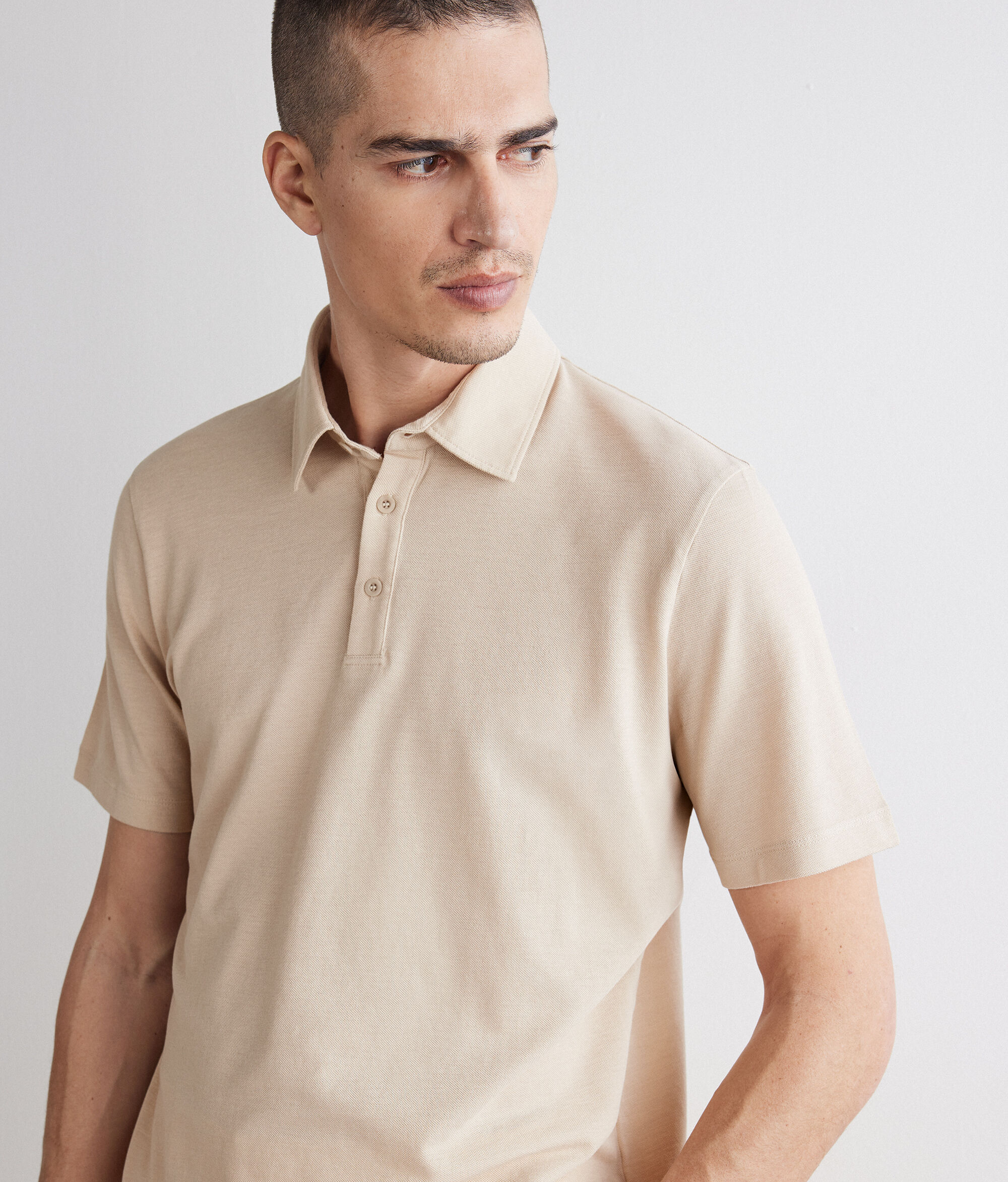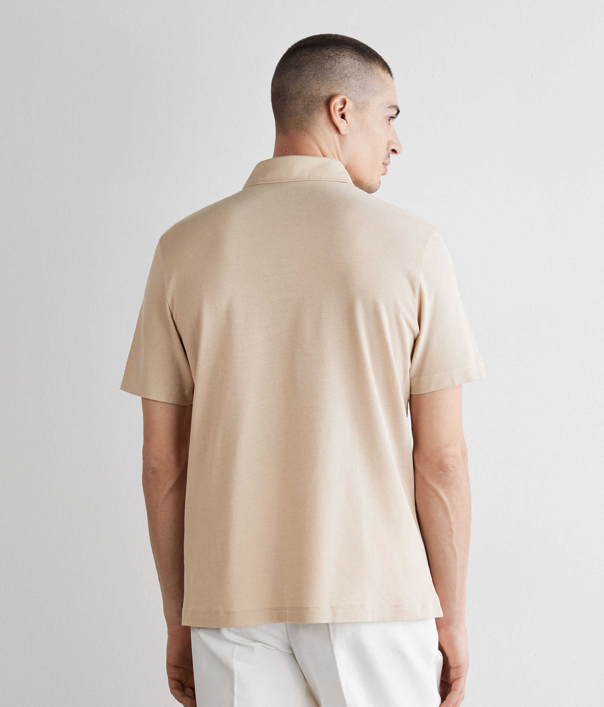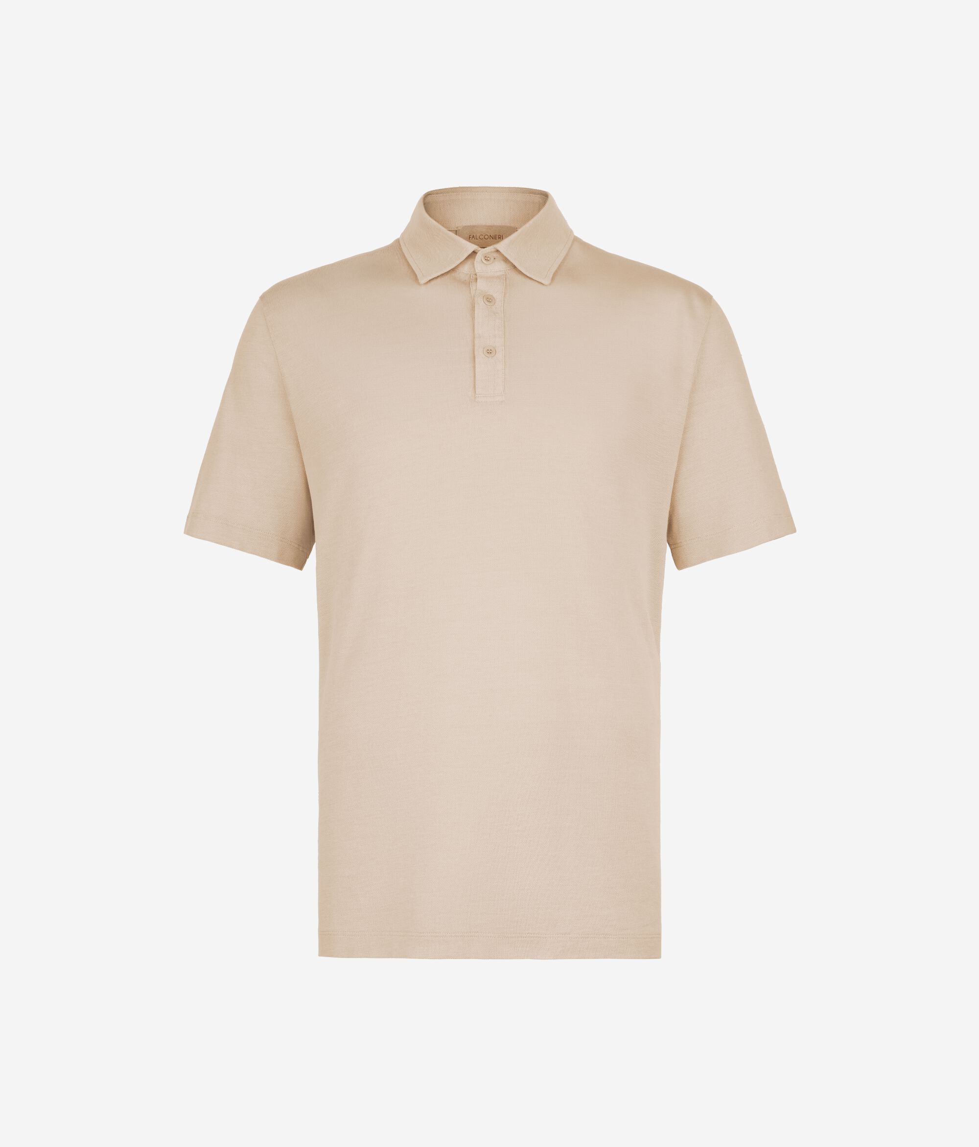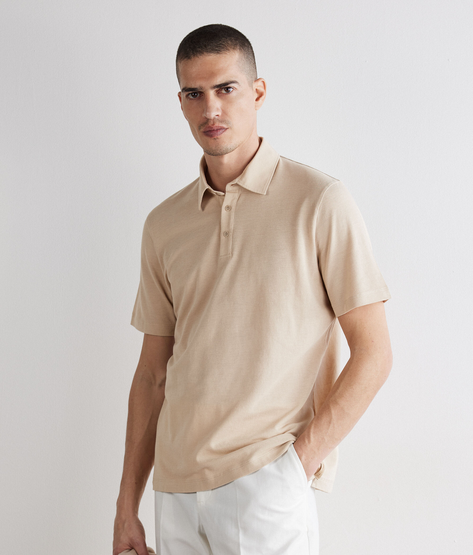 Questa polo è realizzata in jersey piquet di cotone e seta (83% cotone, 17% seta). Il capo presenta spacchi laterali e un’etichetta con logo in microfibra effetto suede.