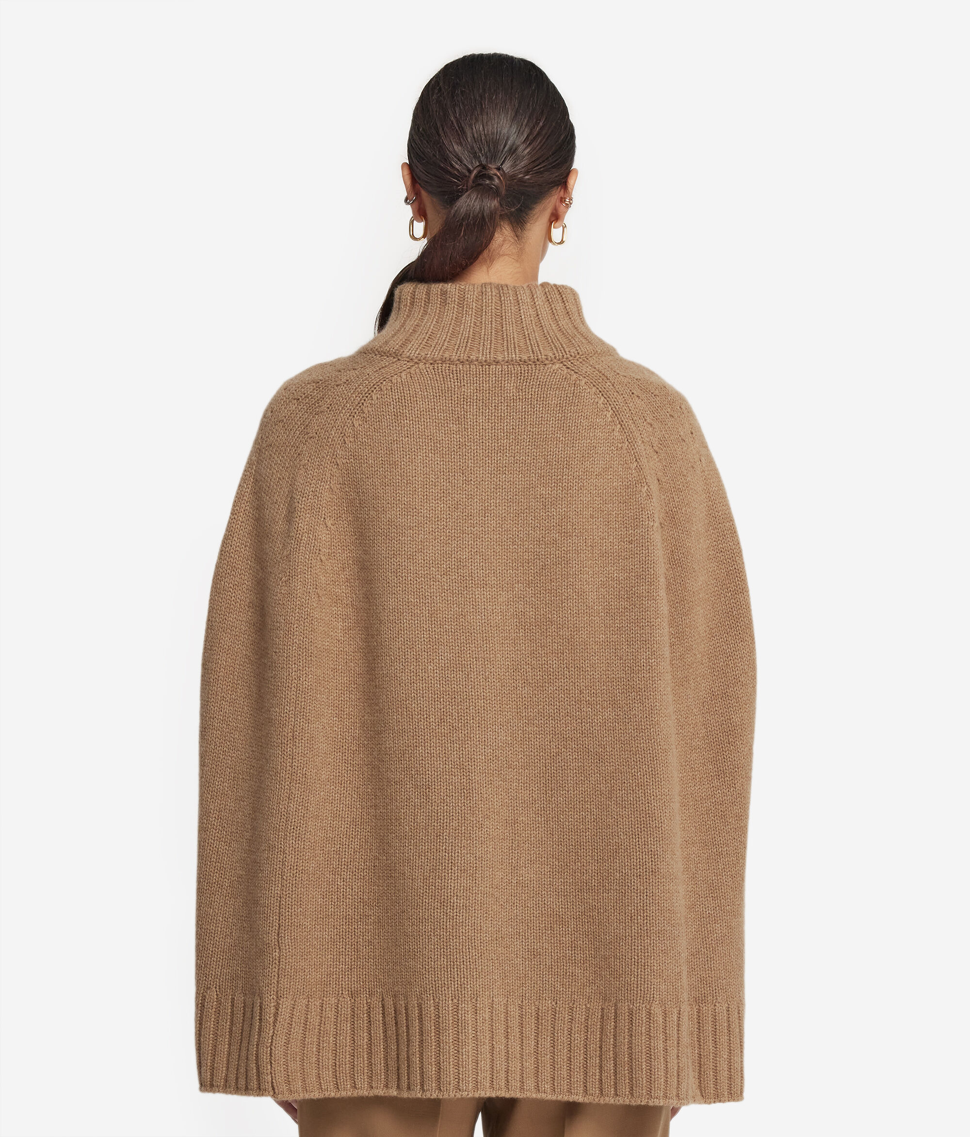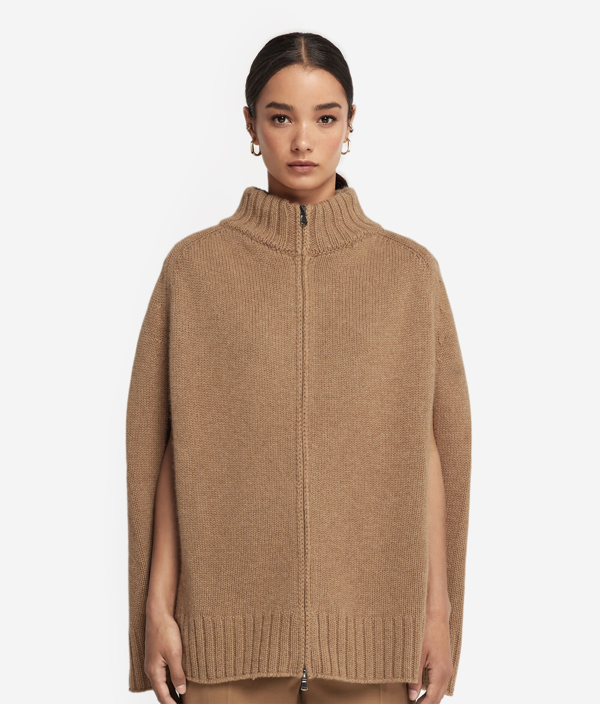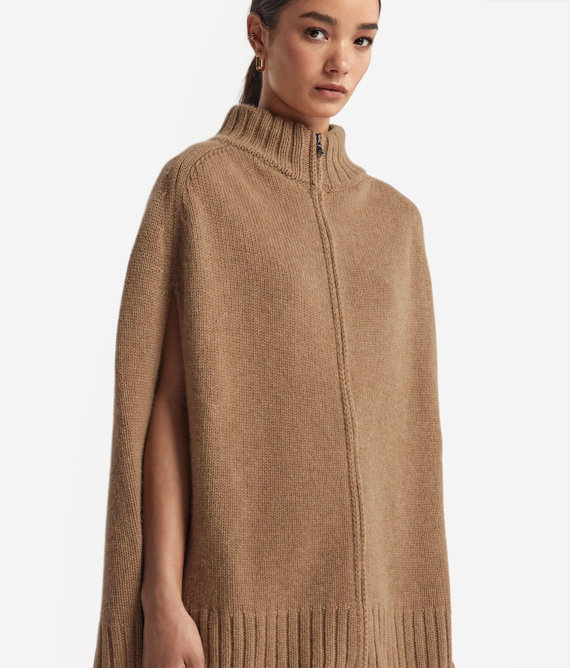 A relaxed fit meets Scandinavian-inspired details in this sleeveless cape made from Ultrasoft cashmere. It features a zip fastening and ribbed collar and trim. The cape falls slightly short with a slightly loose fit, creating a modern, sophisticated style that’s perfect for adding a touch of casual elegance to any outfit.