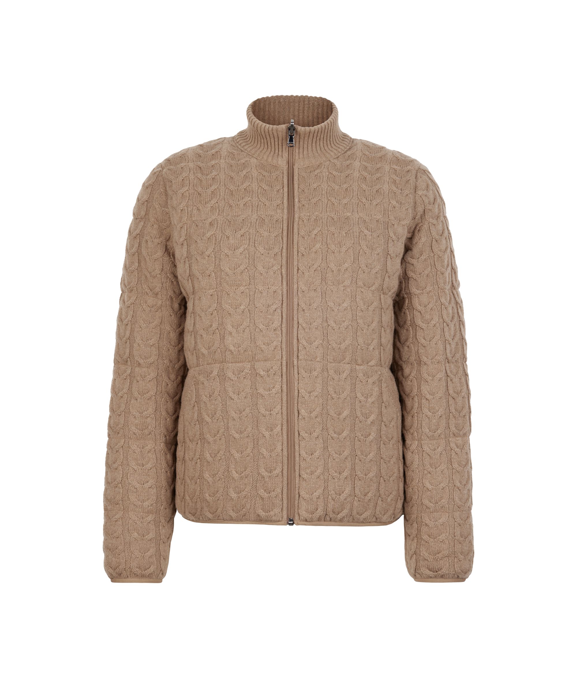 Dwustronna puchowa kurtka z warkoczami z kaszmiru i technicznego materiału