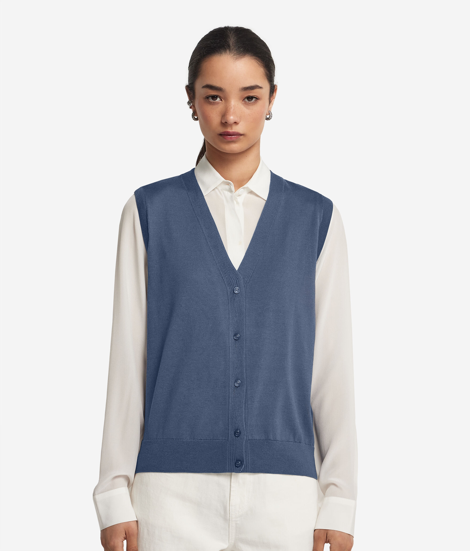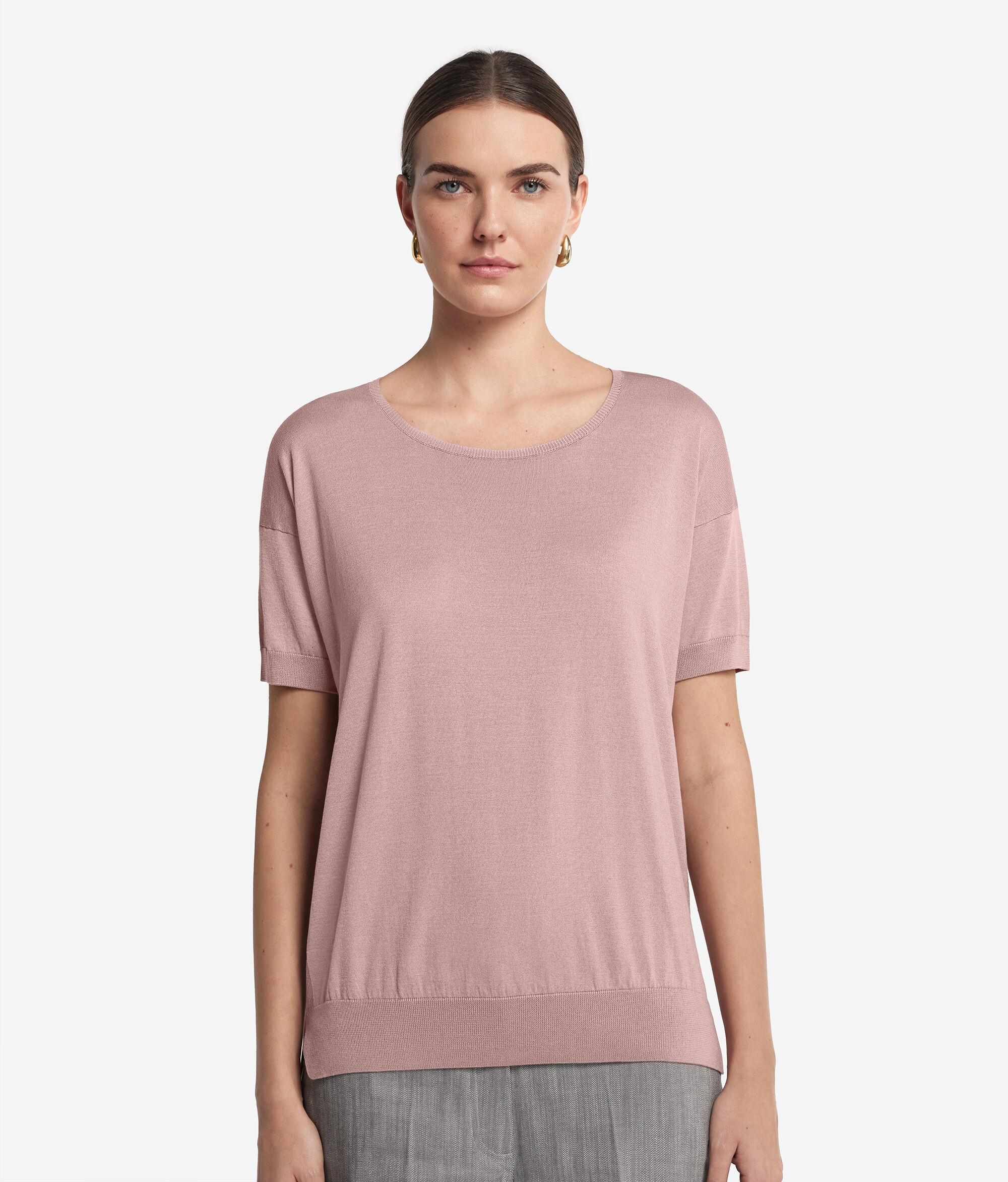 Bluzka z dekoltem w serek i krótkim rękawem z bawełny jedwabnej