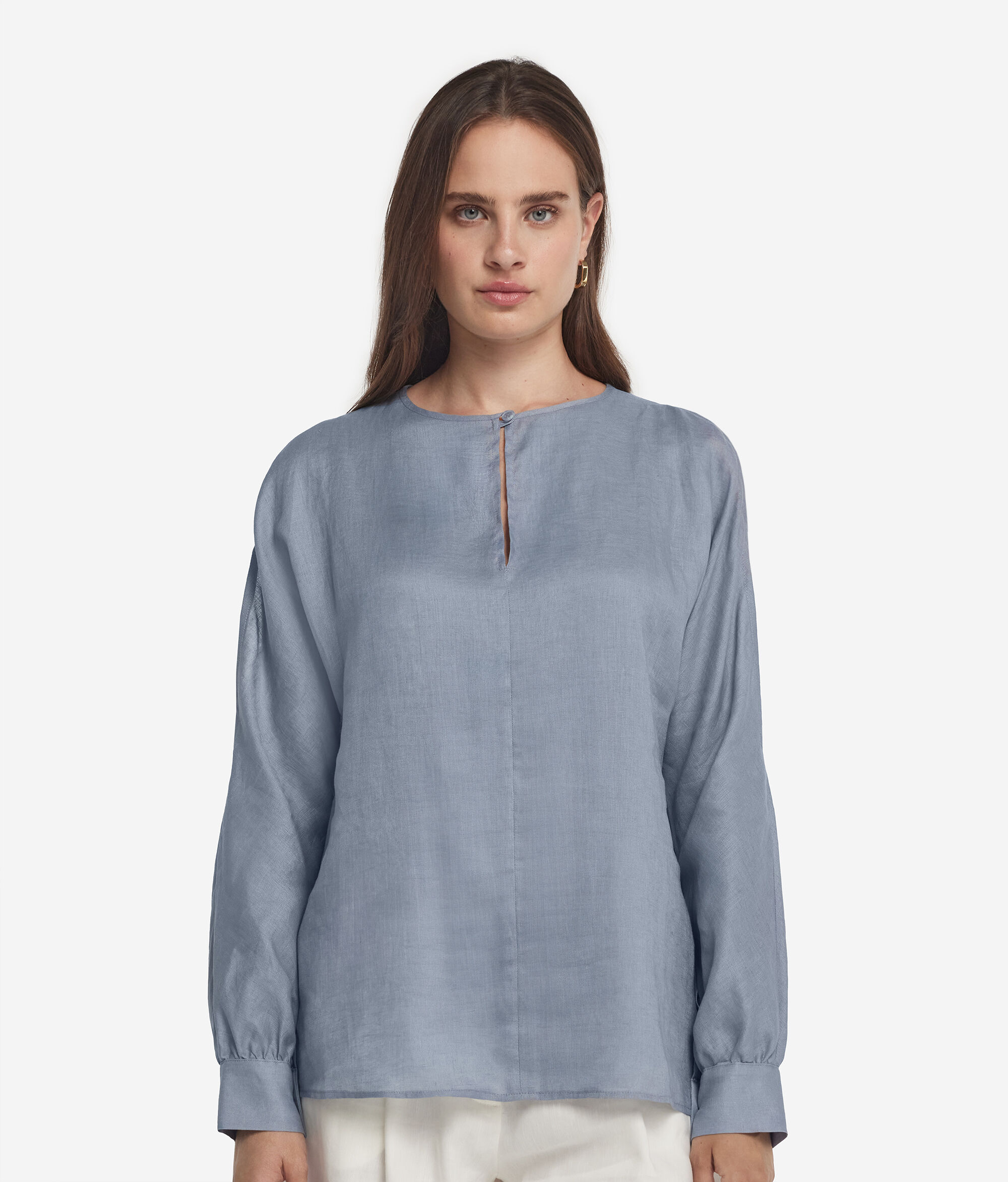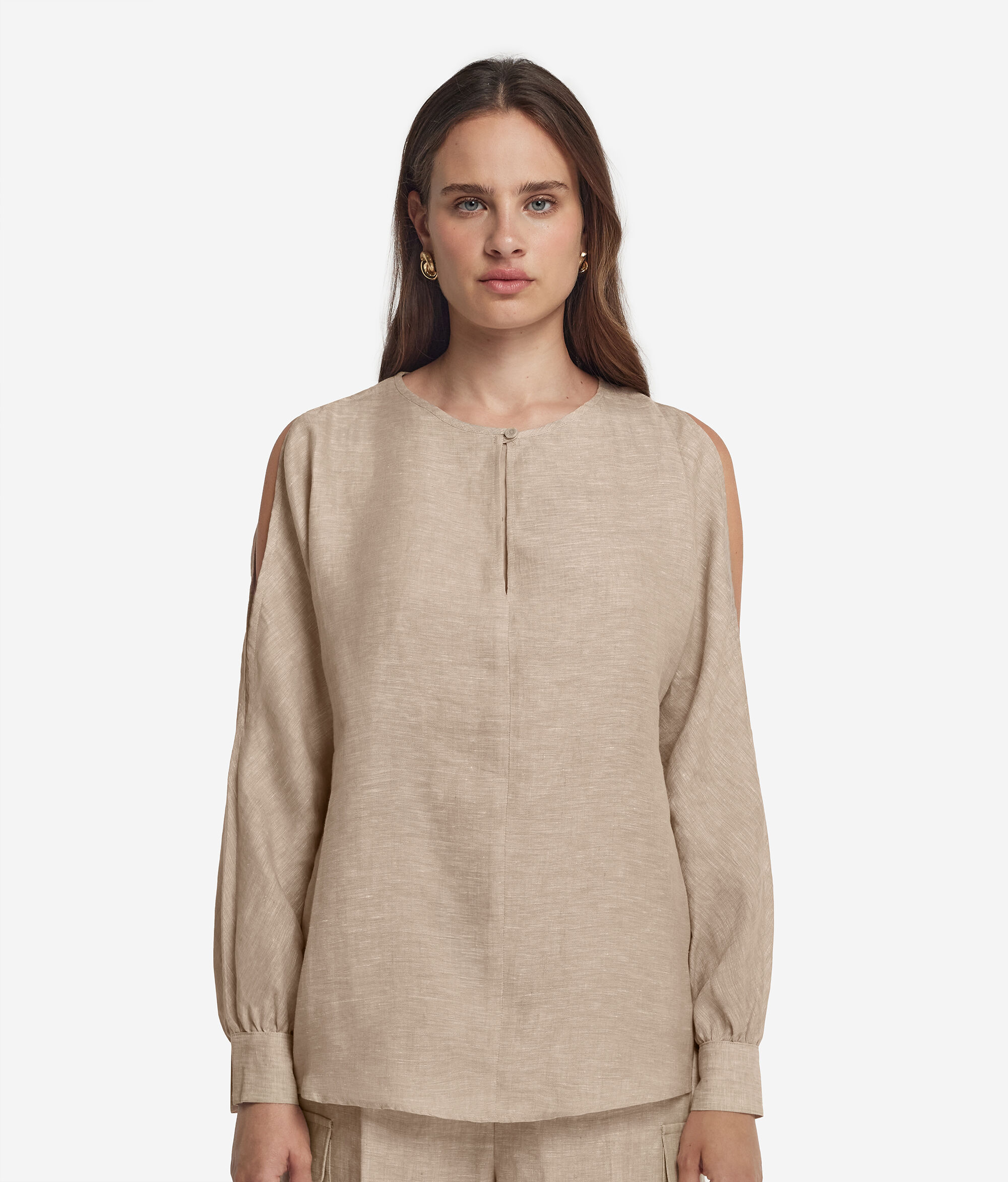 Koszula Lniana z Wycięciami na Ramionach
