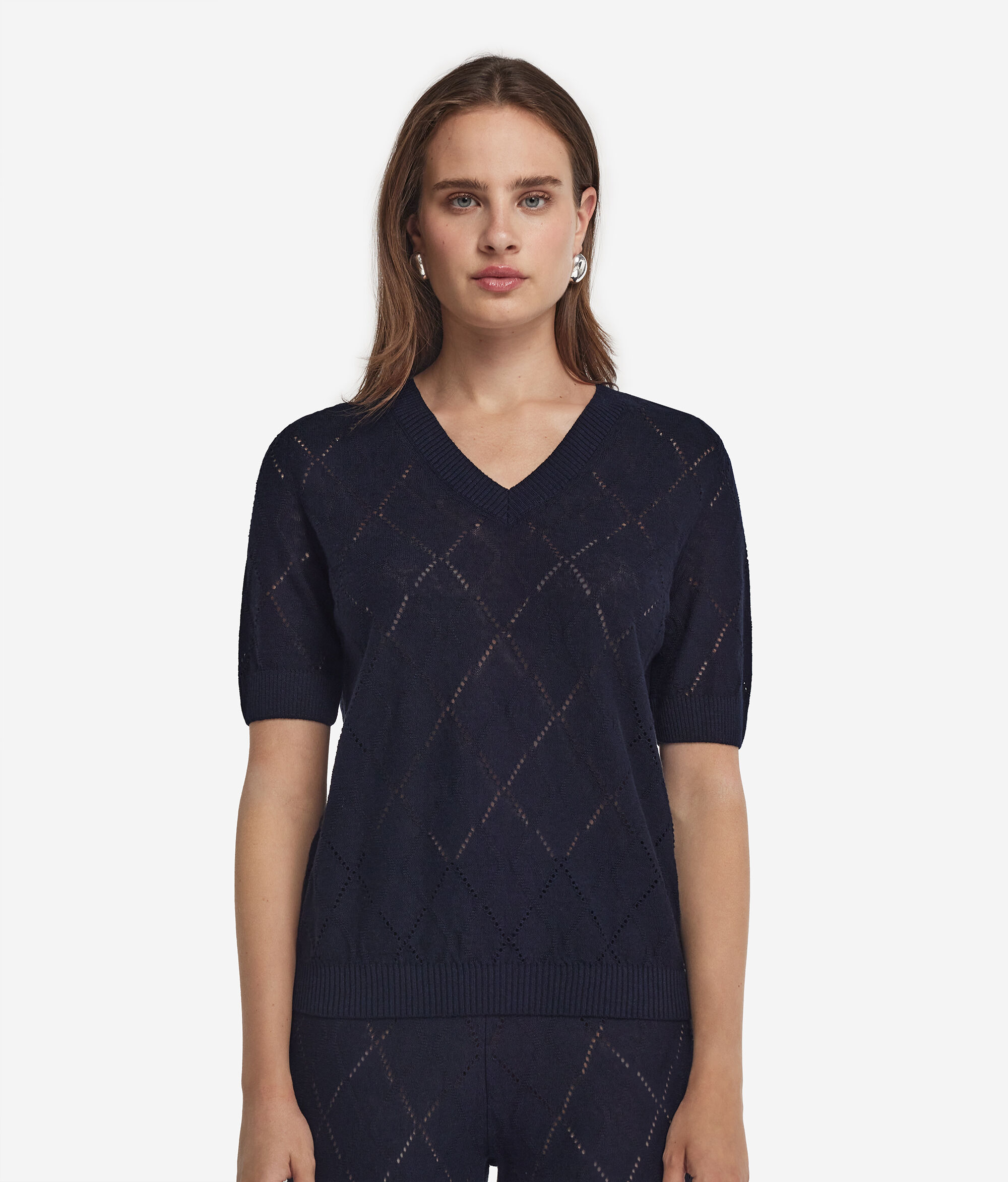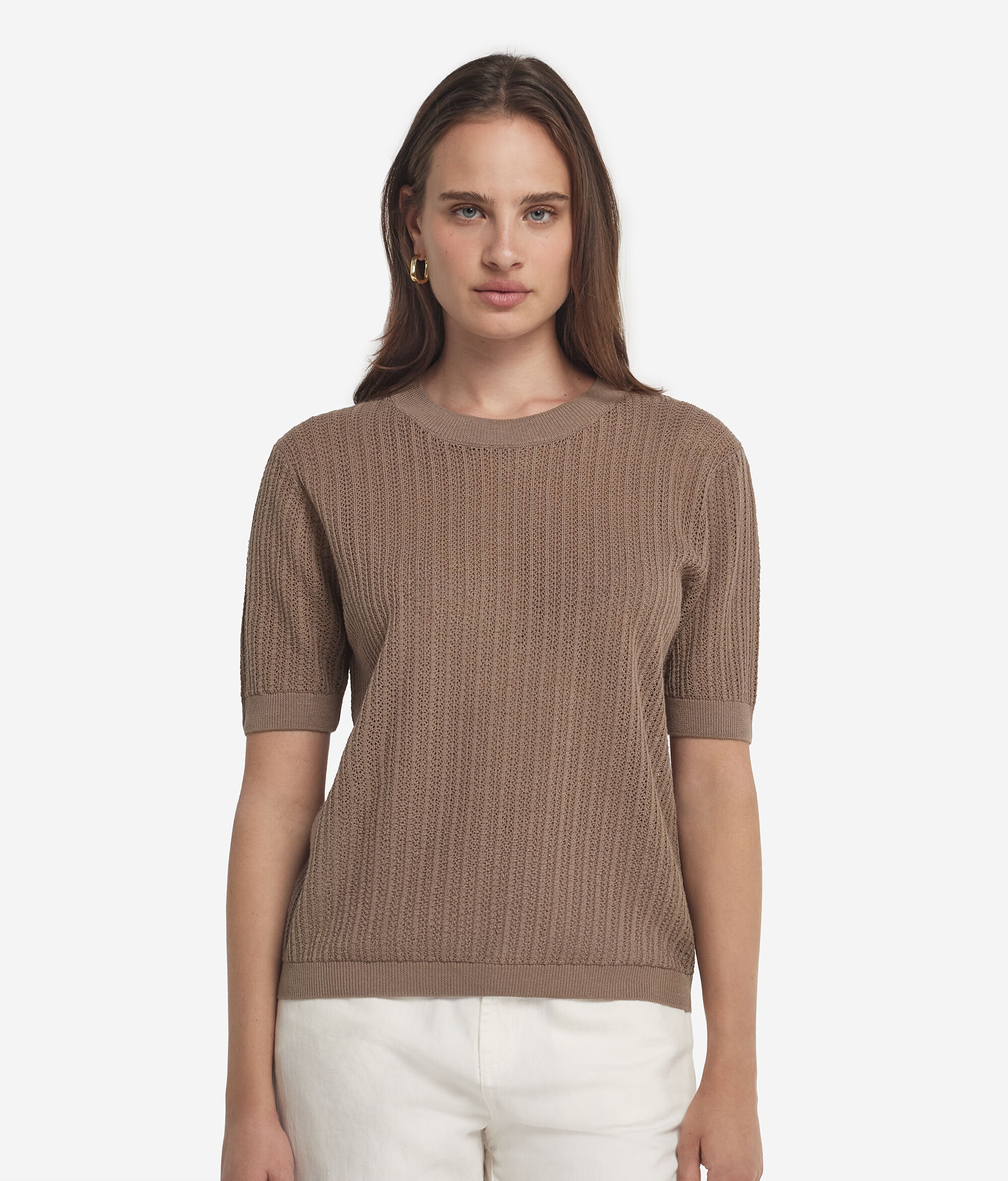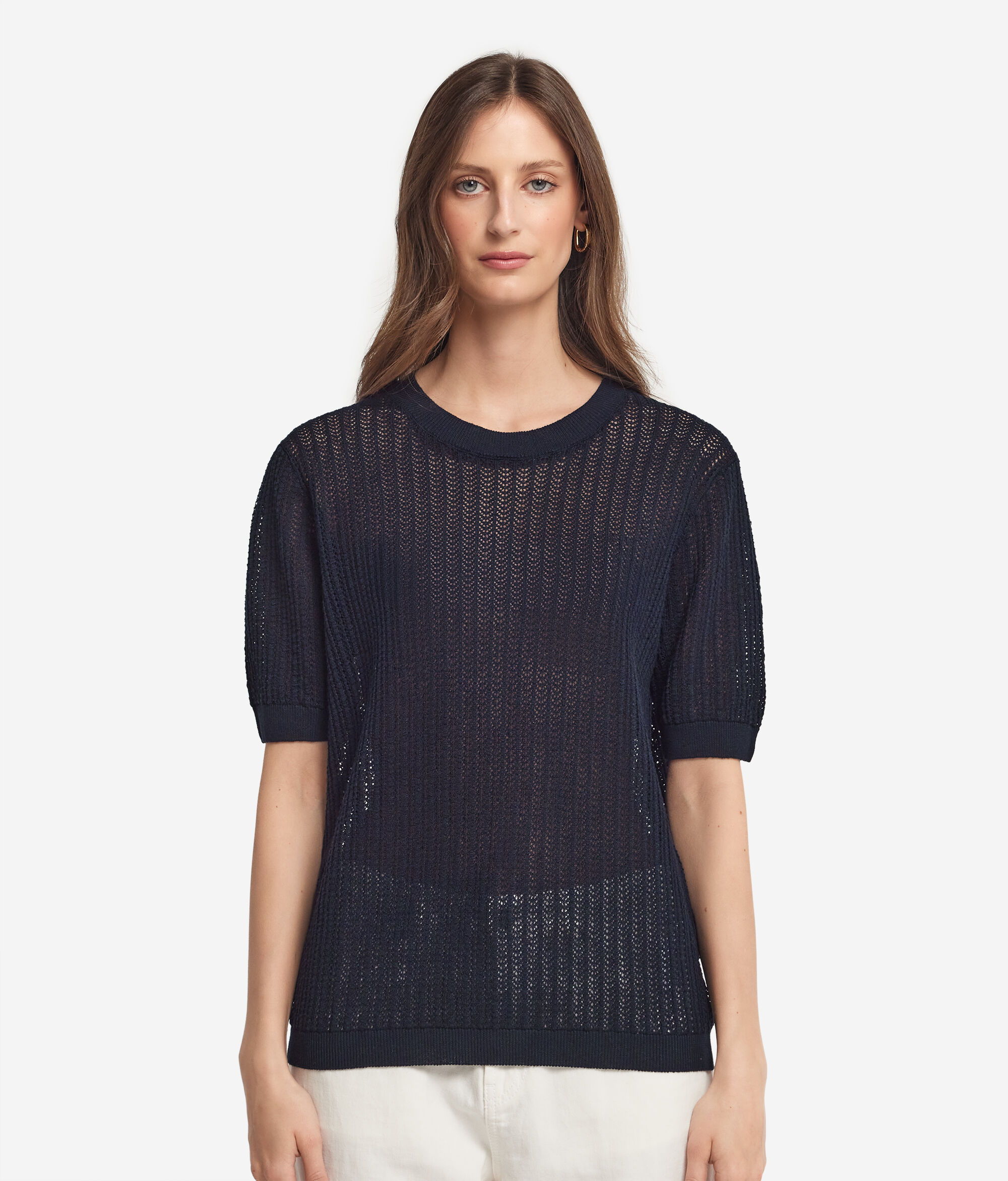Koszulka z Ażurowej Bawełny w Prążki