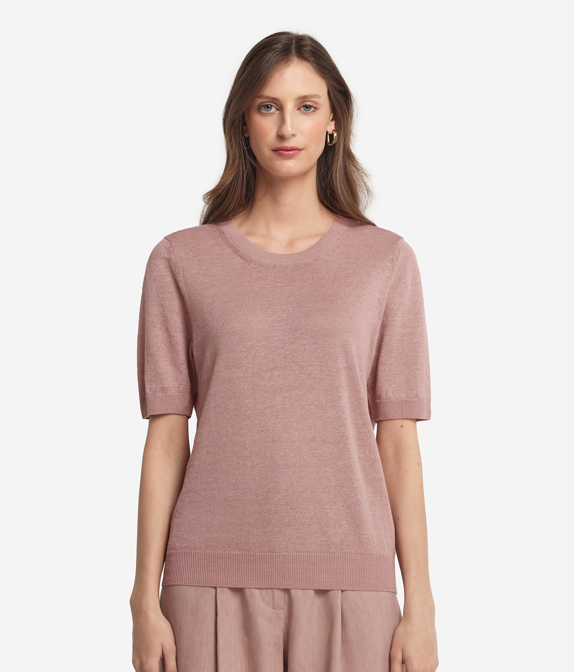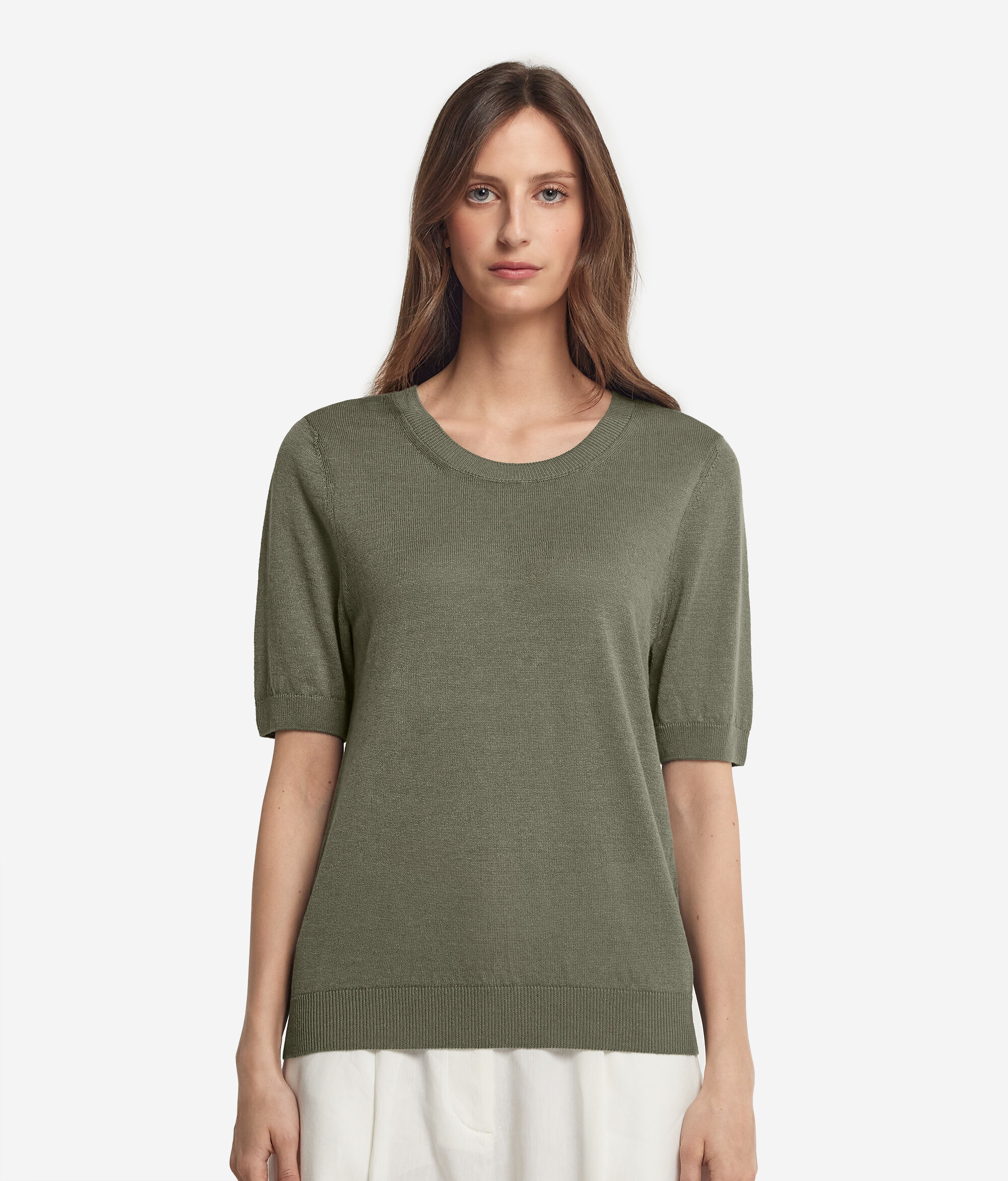 T-shirt z okrągłym dekoltem z lnu i bawełny