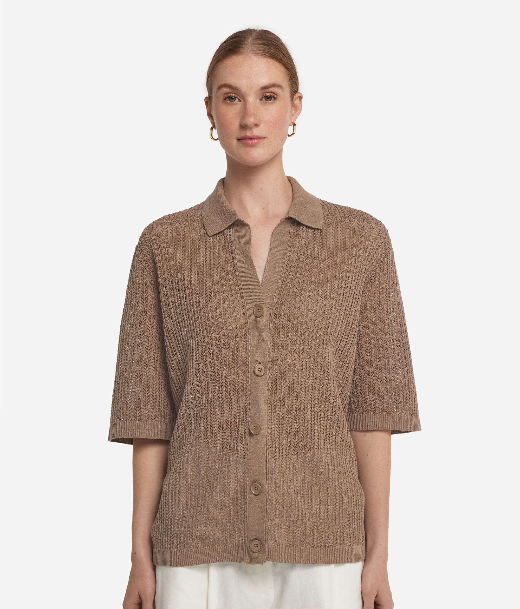 Koszulka z Dekoltem w Serek z Lnu i Bawełny