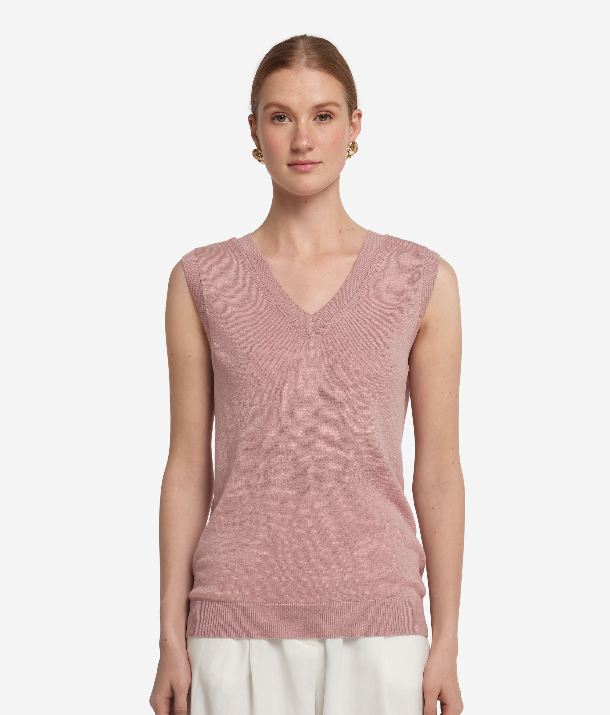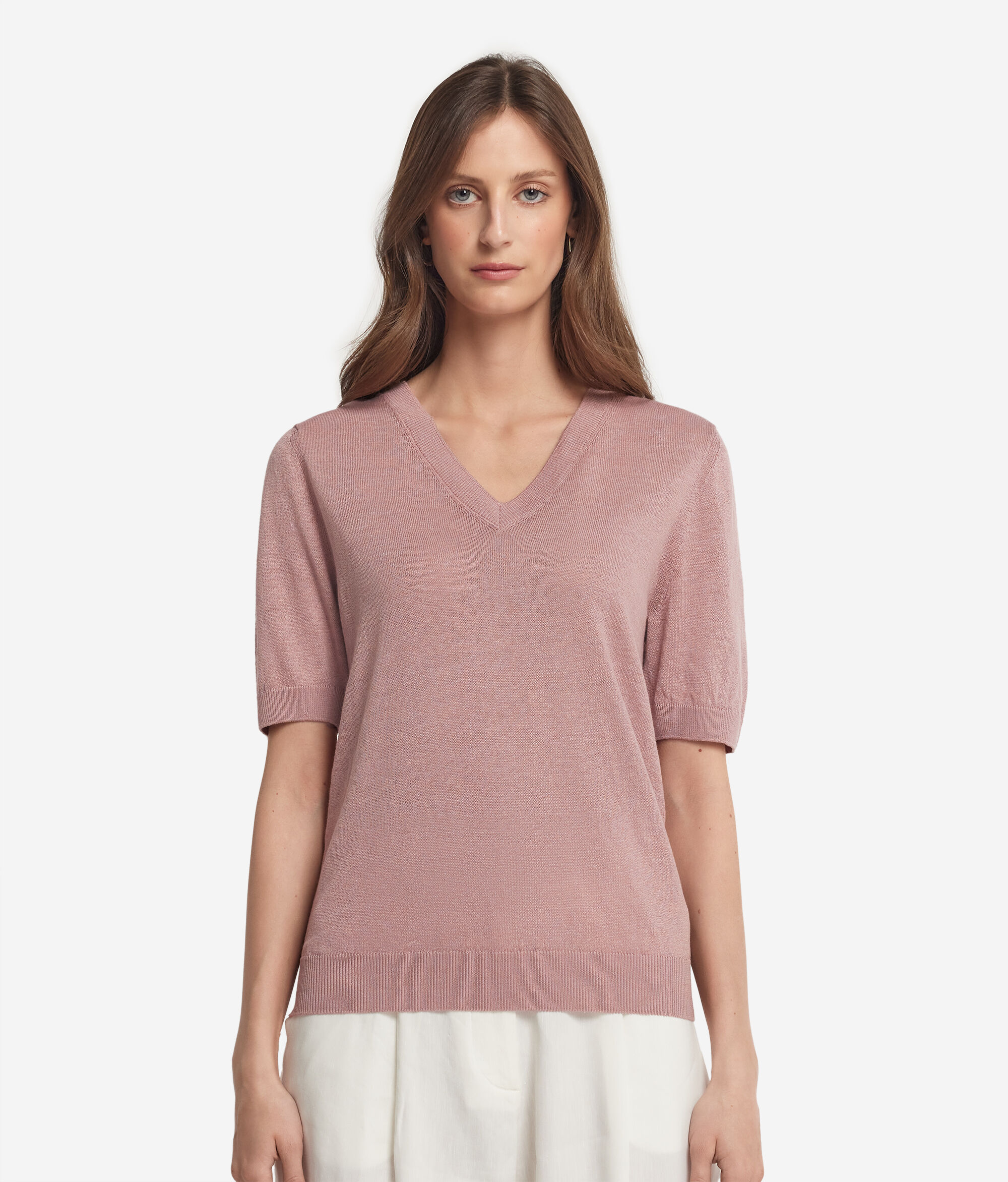 Koszulka z Dekoltem V z Bawełny i Lnu