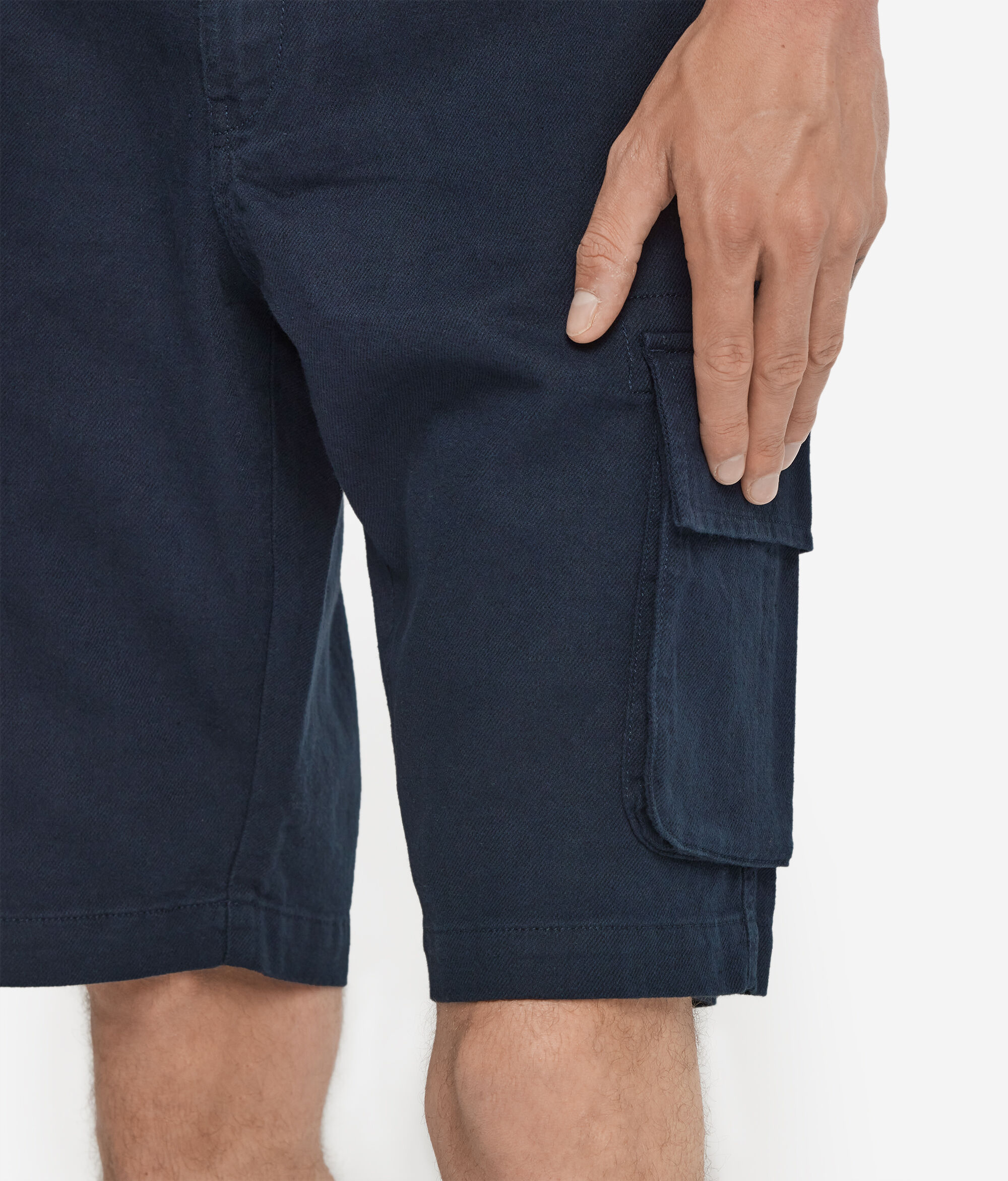 Przewiewna, oddychająca mieszanka bawełny i lnu sprawia, że te spodenki są funkcjonalne i stylowe. Model wyróżnia się kieszeniami francuskimi i naszywanymi kieszeniami bocznymi, co nadaje mu dynamiczny i funkcjonalny wygląd. Długość nad kolano i luźny krój sprawiają, że spodenki te doskonale nadają się na upały, zapewniając jednocześnie praktyczny i elegancki styl.
