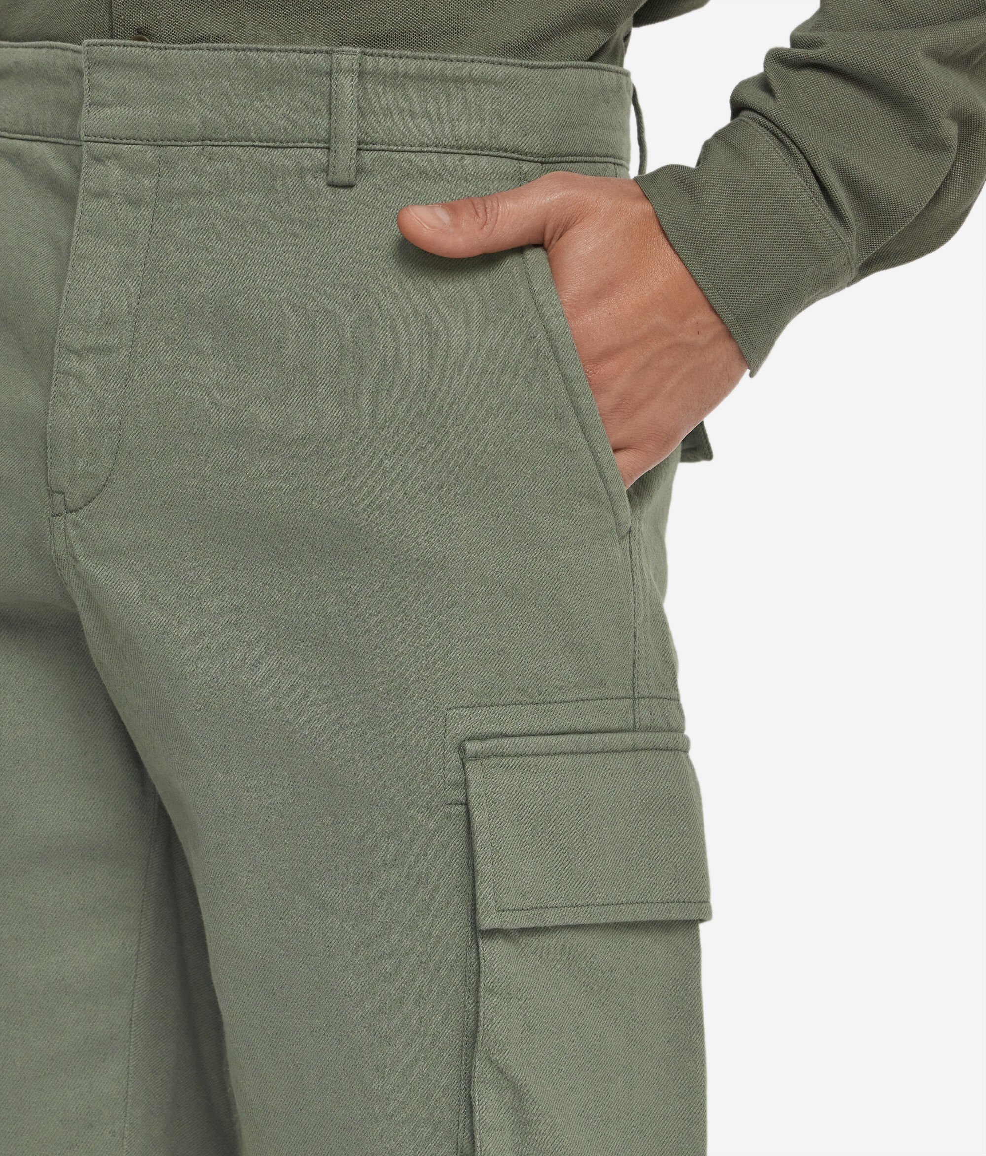 • Naszywane kieszenie francuskie po bokach, kieszenie z patką na zatrzask na nogawce z boku