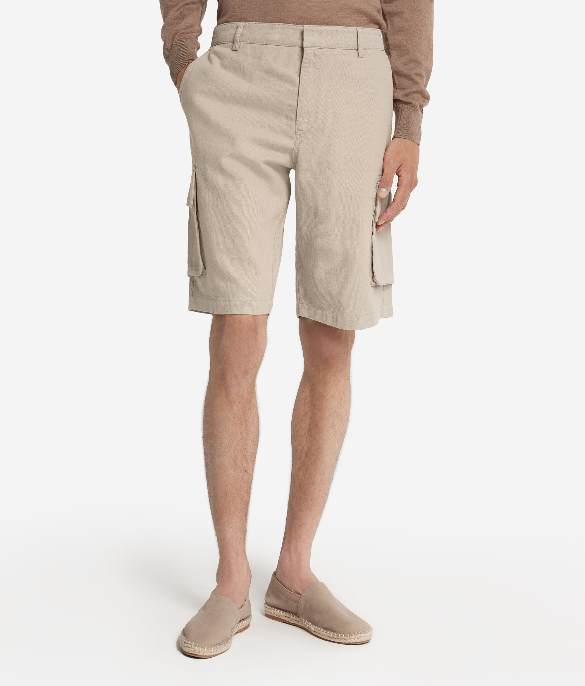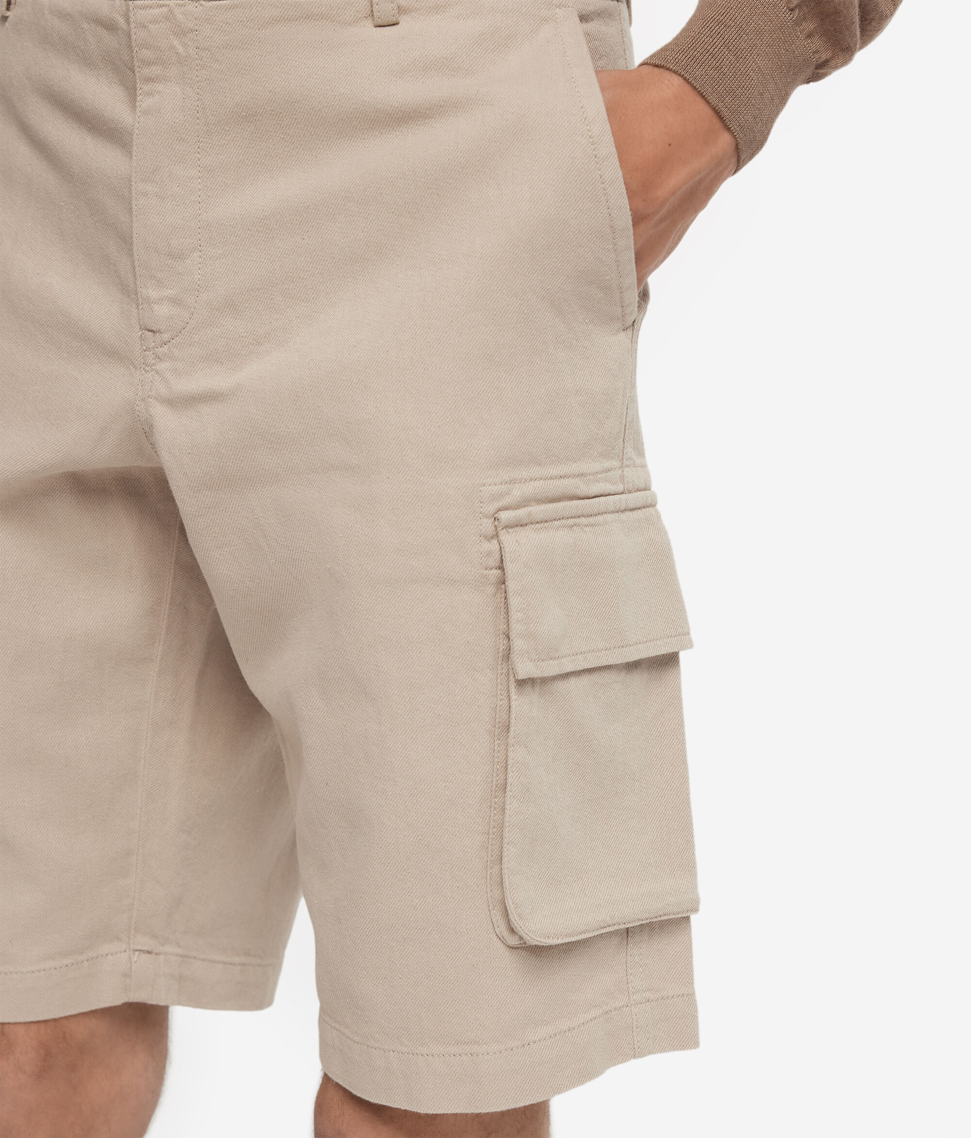 Przewiewna, oddychająca mieszanka bawełny i lnu sprawia, że te spodenki są funkcjonalne i stylowe. Model wyróżnia się kieszeniami francuskimi i naszywanymi kieszeniami bocznymi, co nadaje mu dynamiczny i funkcjonalny wygląd. Długość nad kolano i luźny krój sprawiają, że spodenki te doskonale nadają się na upały, zapewniając jednocześnie praktyczny i elegancki styl.