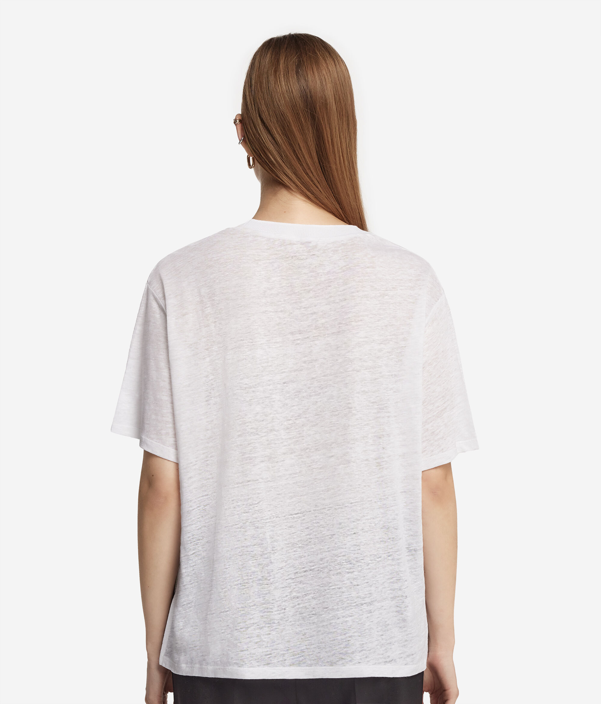 Lniany t-shirt z okrągłym dekoltem i dzianinowym obszyciem