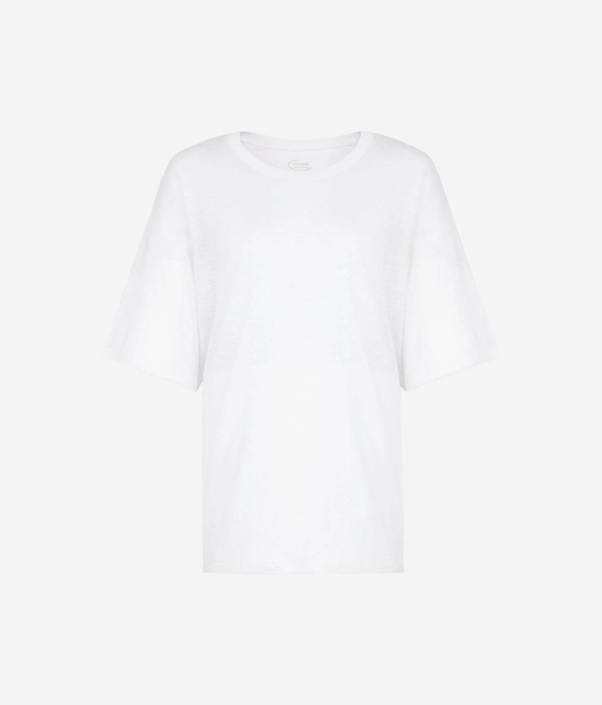 Niezastąpiony i uniwersalny element stroju na wiosnę i gorące letnie wieczory, koszulka z lnianego dżerseju z okrągłym dekoltem obfituje w stylowe detale, które charakteryzują markę Falconeri. Wykończenie dekoltu prążkowaną dzianiną dopełnia całości wyraźnie kobiecym detalem.