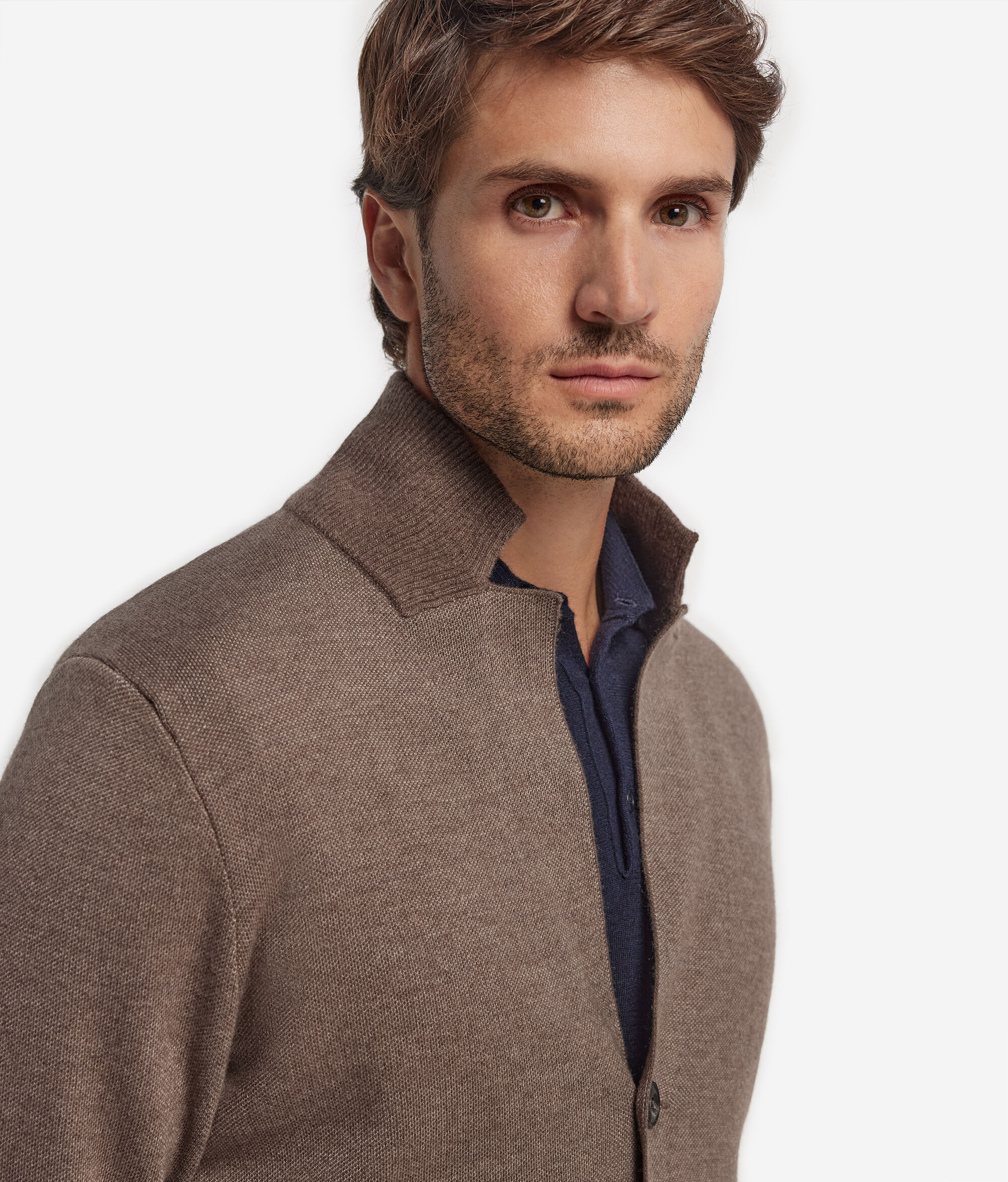 Innowacyjne detale i szlachetne przędze łączą się, tworząc wyrafinowany i ponadczasowy model. Miękkość tkaniny oraz detale w postaci dwóch naszywanych kieszeni podkreślają klasyczny charakter niestrukturalnej marynarki męskiej i sprawiają, że staje się obowiązkowym elementem męskiej garderoby.