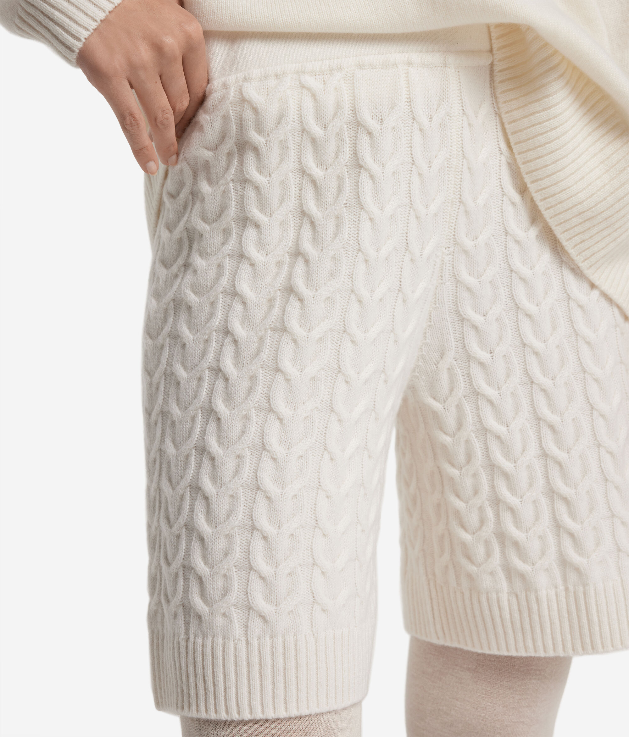 Elegantes e envolventes, estes calções em caxemira ultrasoft jogam com textura e leveza. O cós elástico na cintura garante um ajuste perfeito e liberdade de movimentos, enquanto o comprimento acima do joelho e o corte confortável criam um equilíbrio entre o estilo contemporâneo e o conforto descontraído. Uma peça pensada para um look chique mesmo nos momentos mais casuais.