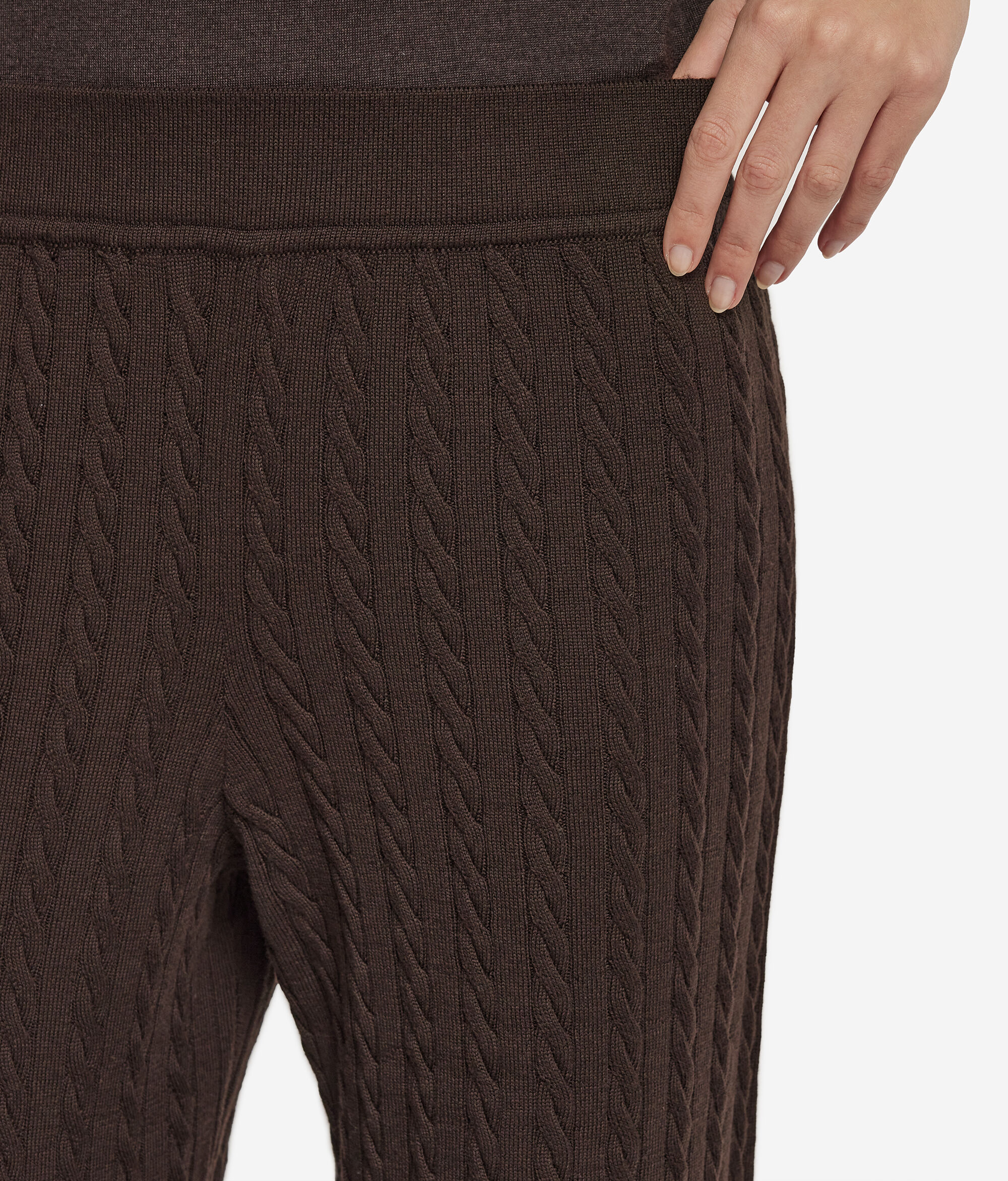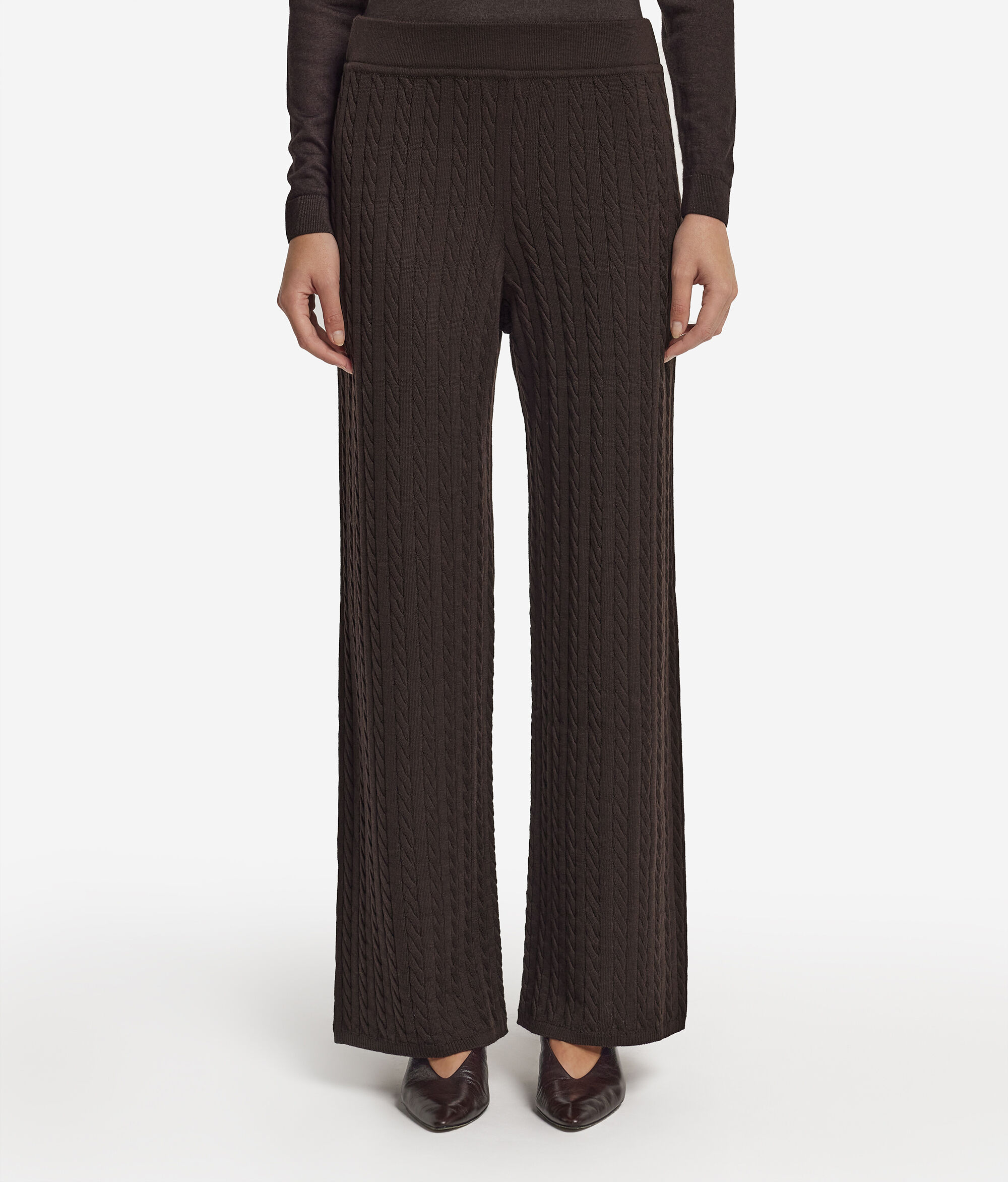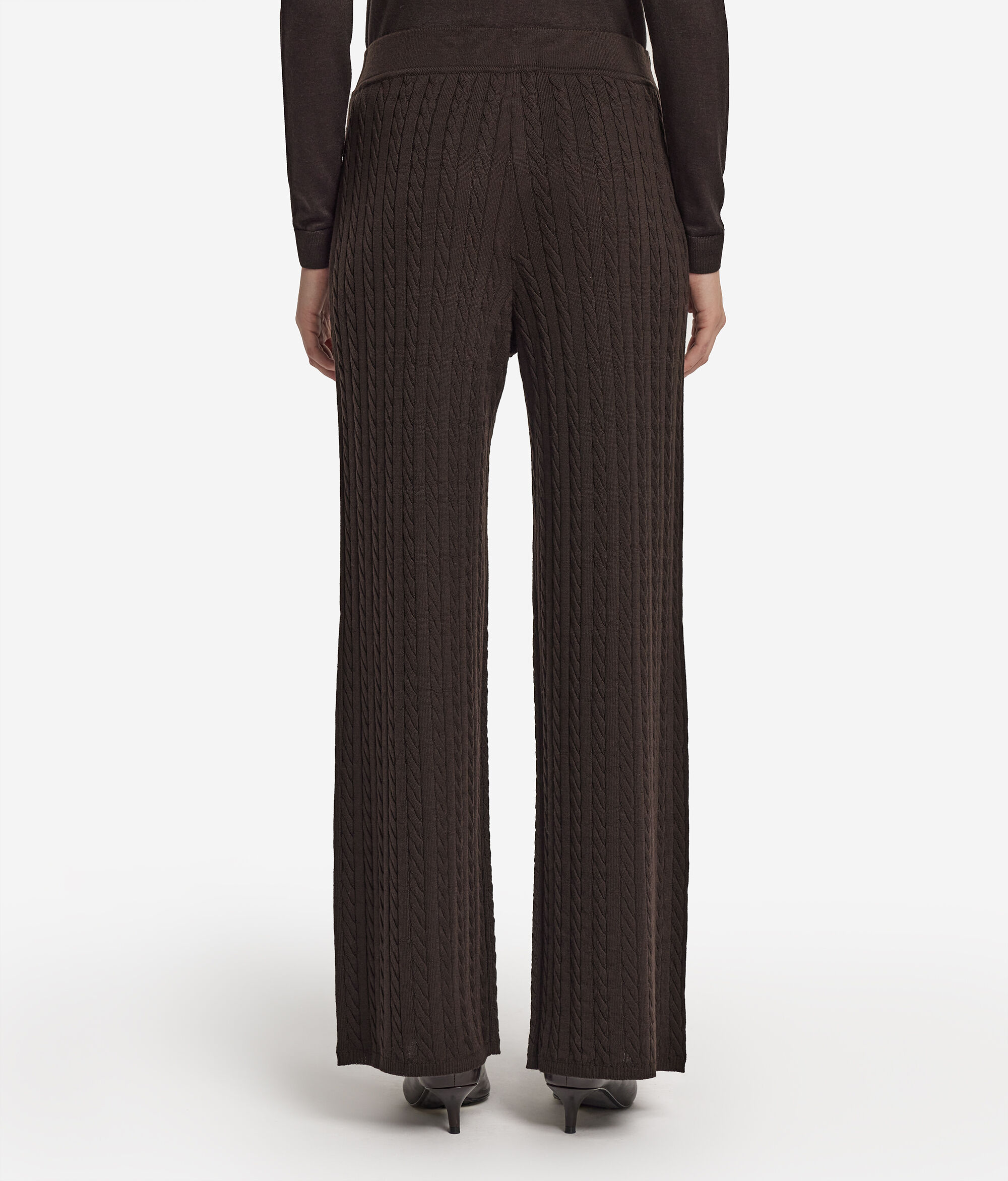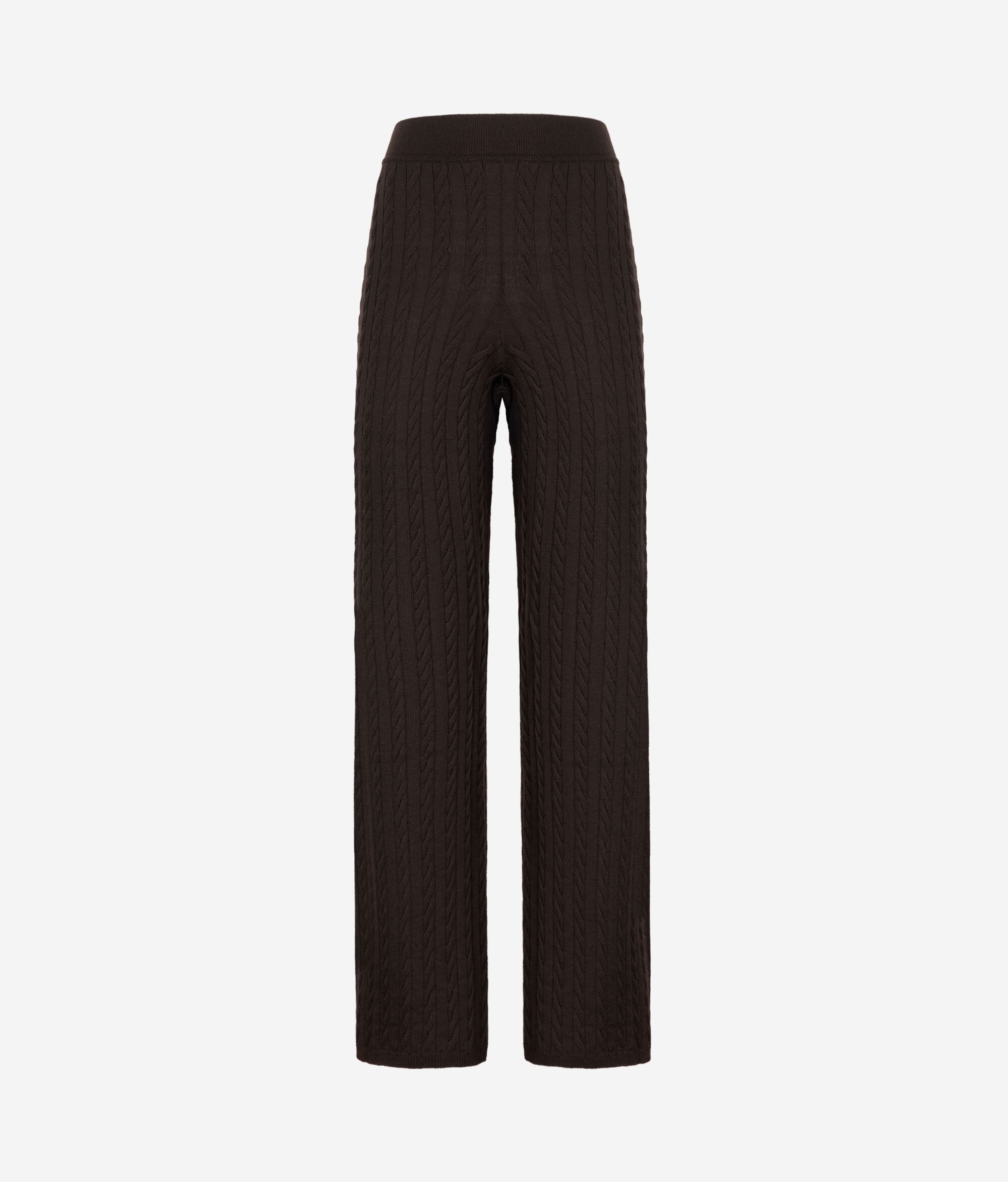 Ideais para uma elegância descontraída e sofisticada, estas calças largas em lã destacam-se pelo corte amplo e comprimento pelo tornozelo, que valorizam a silhueta com naturalidade e leveza. O delicado padrão entrançado em malha, tom sobre tom, acrescenta profundidade e movimento ao tecido, realçando a sua textura macia e sofisticada. Uma peça versátil e elegante, perfeita para completar looks confortáveis com um toque de estilo.