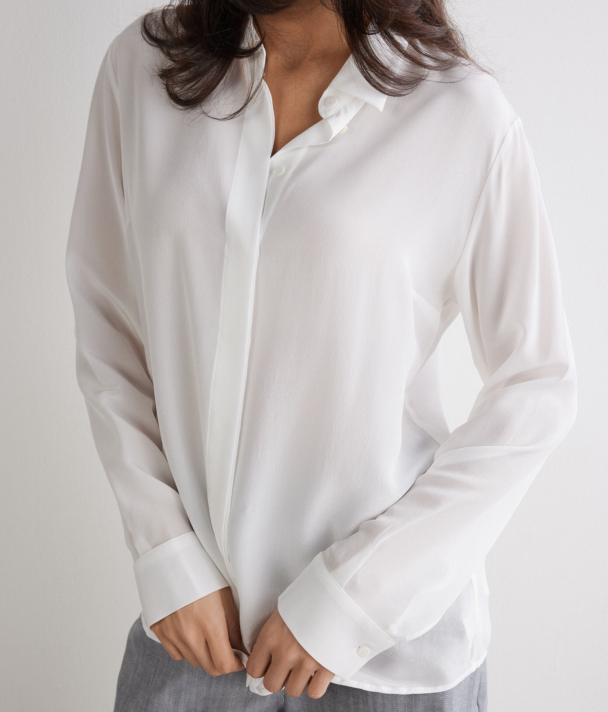 Camisa 100% seda com botões escondidos