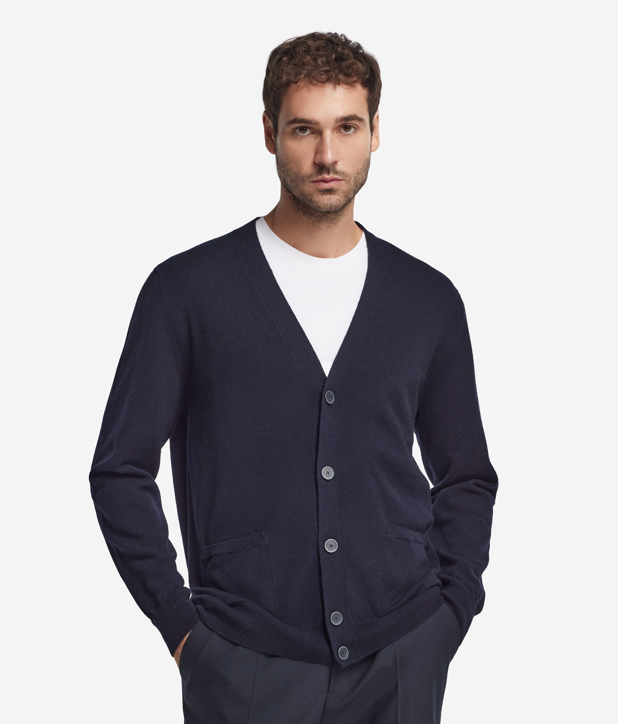 Envolvente e sofisticado, este cardigan em caxemira ultrasoft de qualidade é confecionado com um padrão de malha lisa que realça a suavidade e a textura uniforme. O design essencial é enriquecido por um decote em V e um fecho central de botões, detalhes que conferem uma elegância discreta e versátil. Os bolsos aplicados à frente conferem um toque prático e informal, enquanto o corte suave garante conforto e fluidez de movimentos.