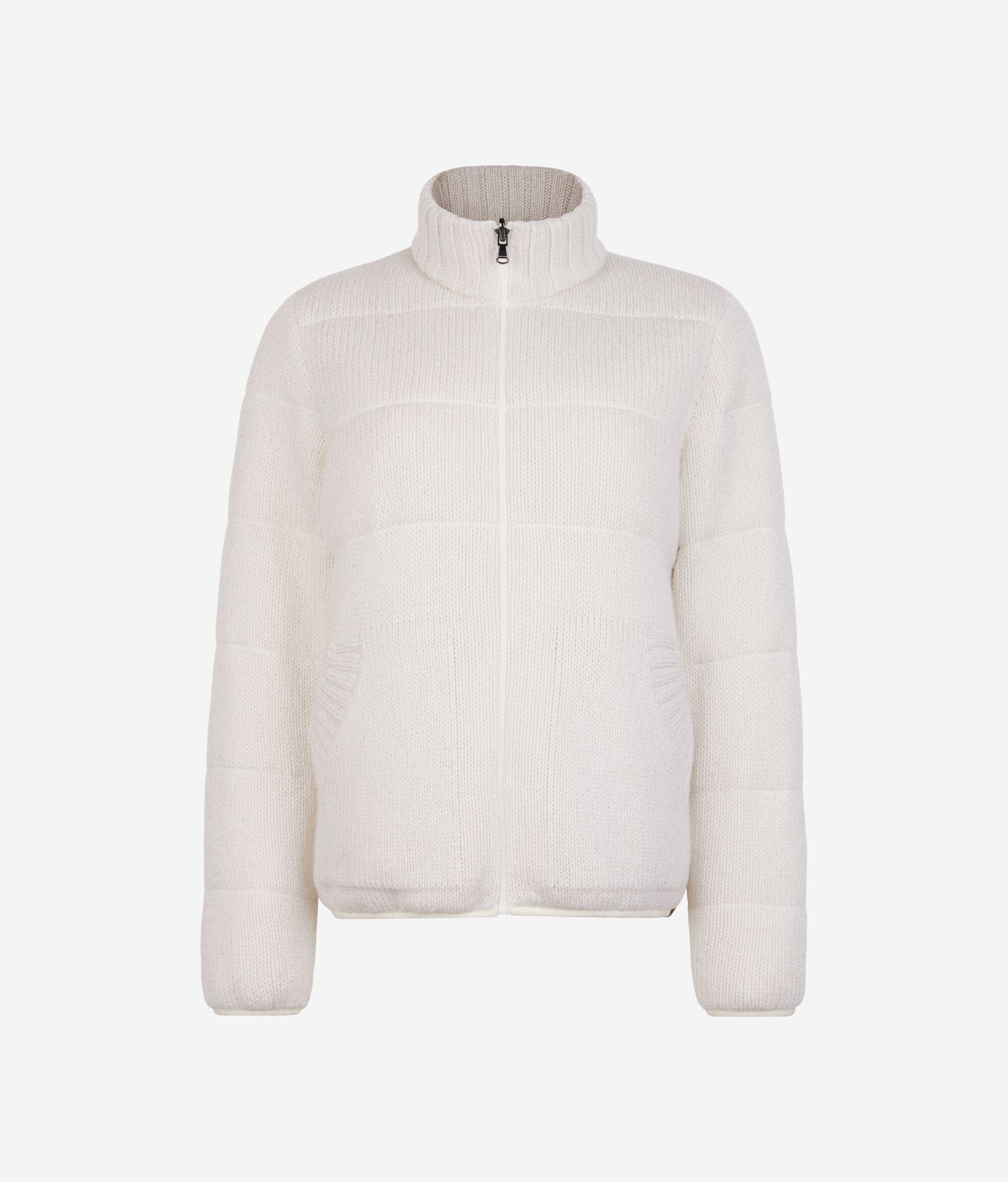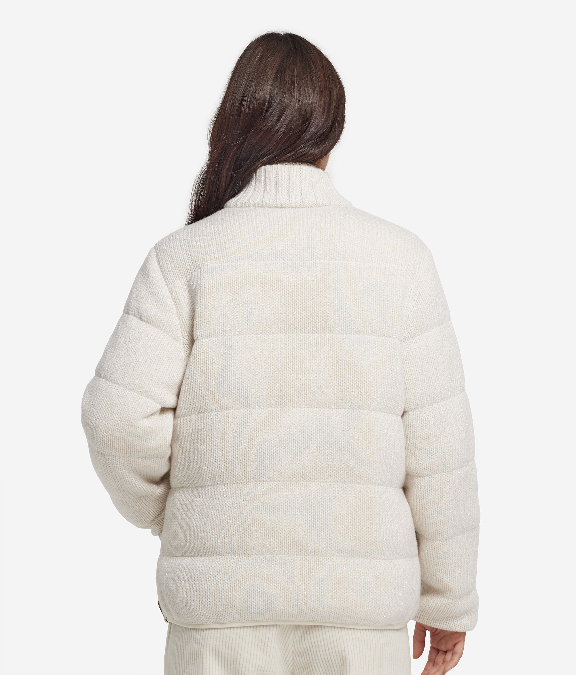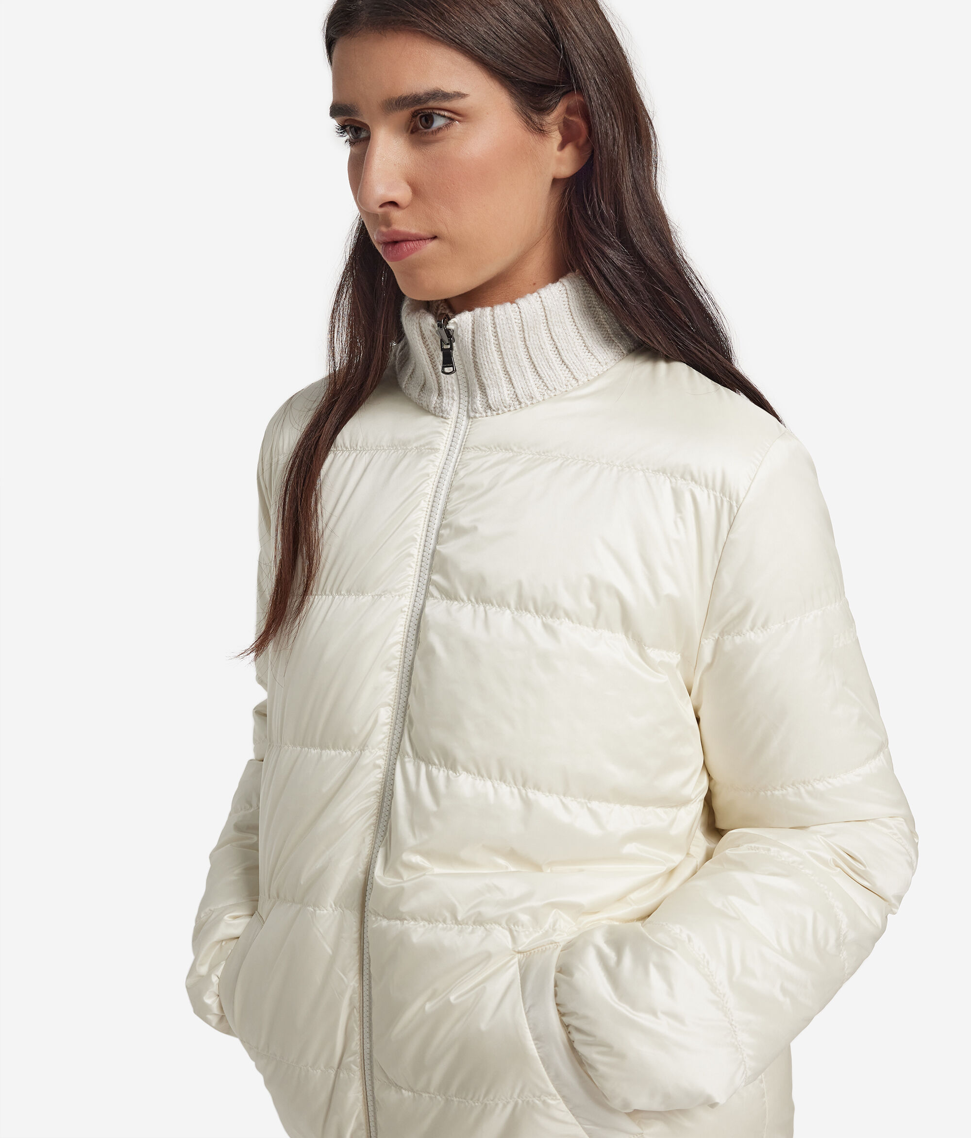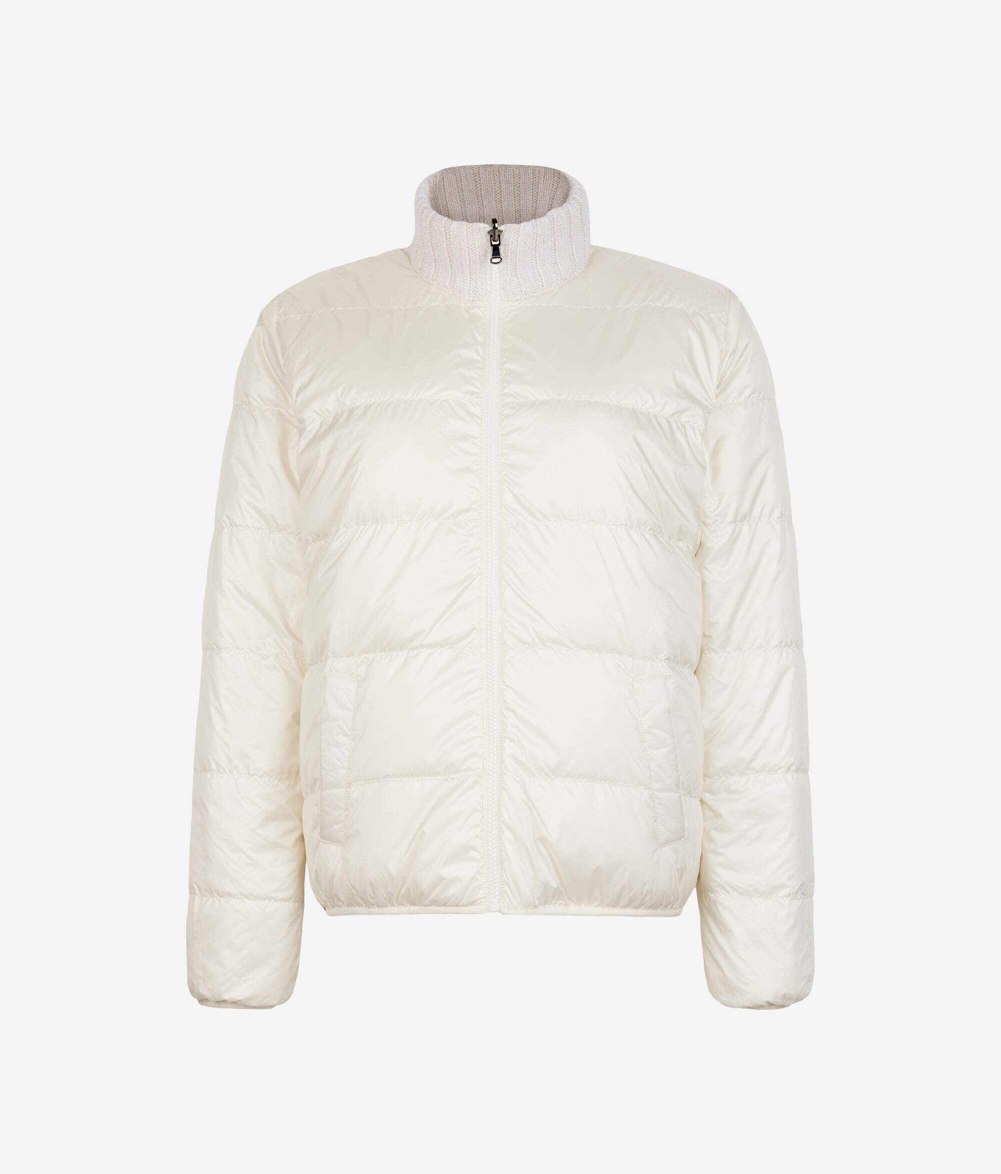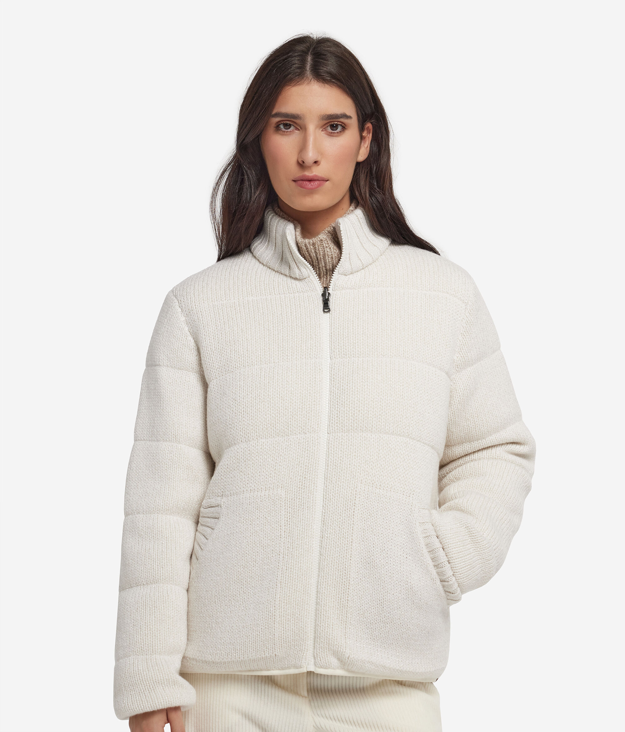 Conjugação perfeita de tecido premium e linhas informais, este casaco acolchoado reversível é confecionado em caxemira ultrasoft com um toque de lamé. A gola alta envolve e protege delicadamente, enquanto o fecho de correr em metal acrescenta funcionalidade e estilo. Com comprimento pela anca e corte confortável, foi criado para oferecer conforto sem renunciar à elegância moderna e versátil.