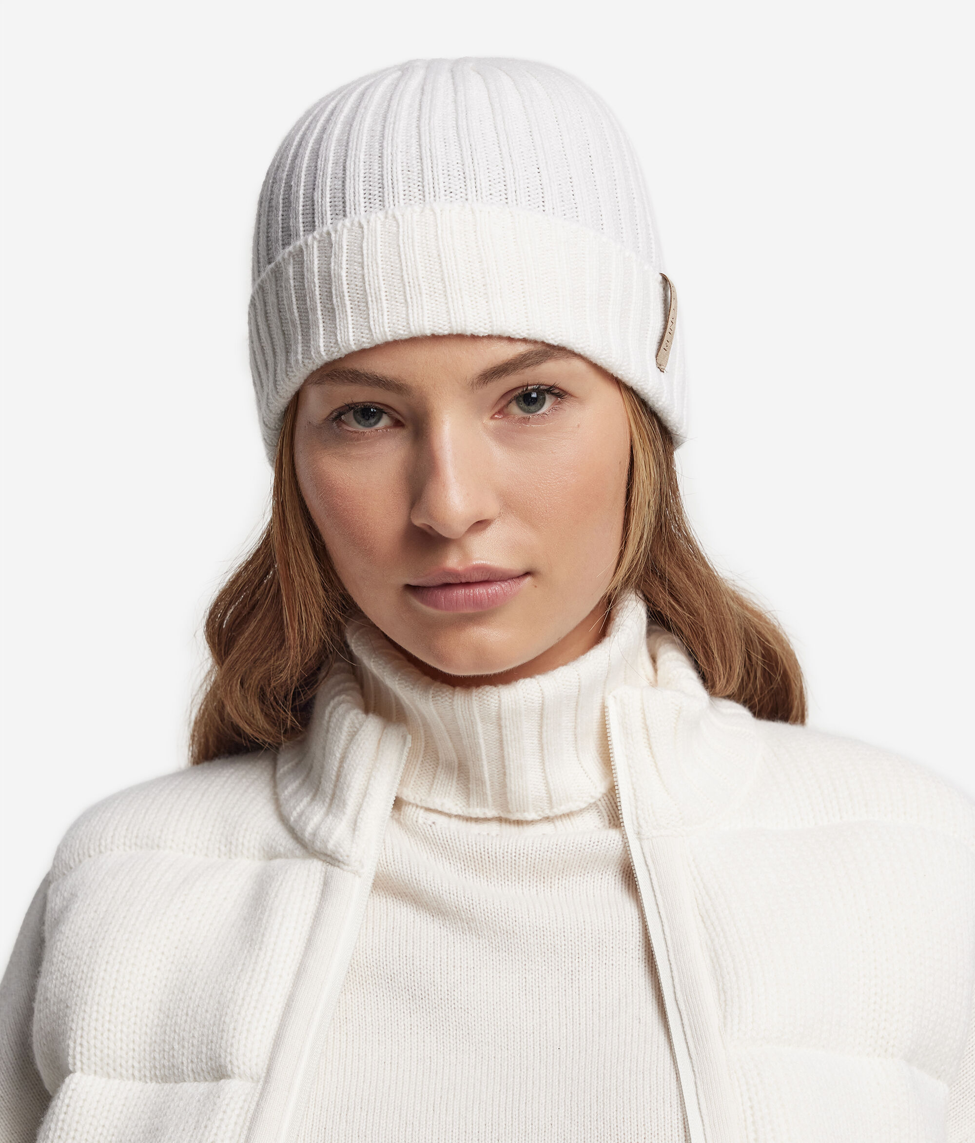 Um acessório essencial, reinterpretado com elegância minimalista. O gorro em caxemira ultrasoft envolve a cabeça com uma suavidade impercetível, enquanto a malha canelada larga confere estrutura e personalidade, criando um volume leve e moderno. A borda dobrada completa o design, acrescentando um detalhe discreto, mas distinto. Uma peça versátil, perfeita para completar um look casual com um toque de luxo contemporâneo.