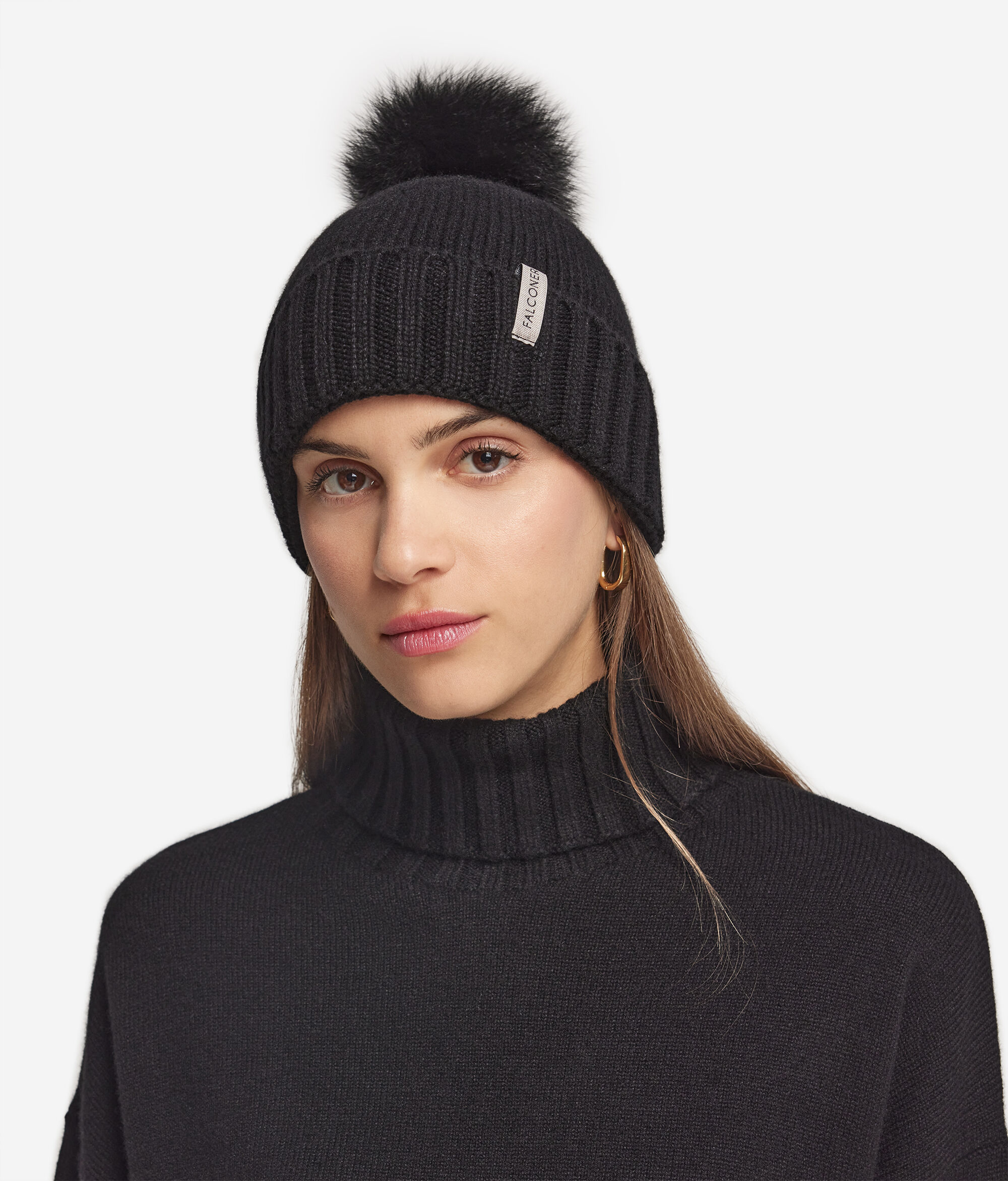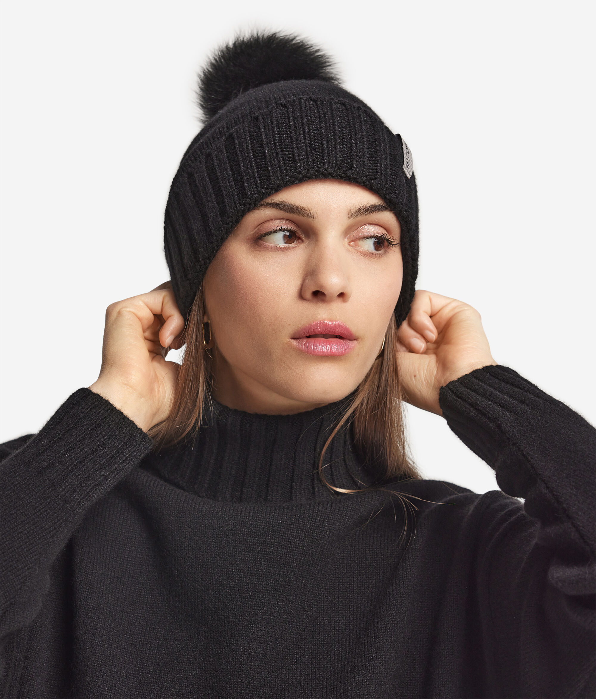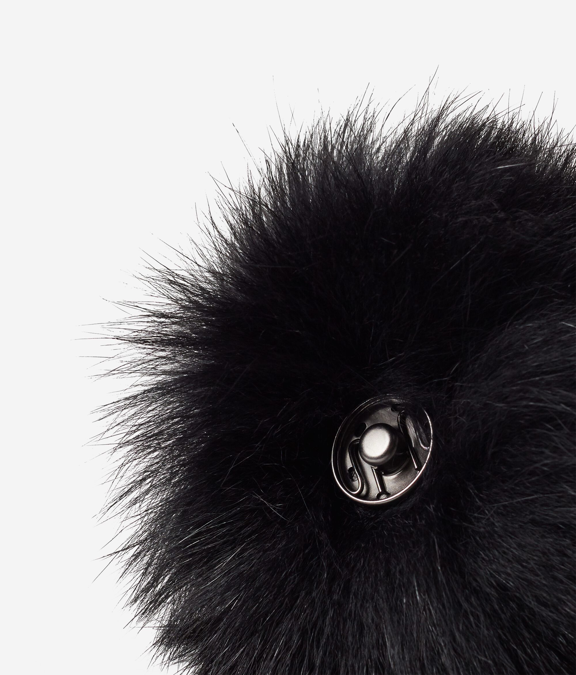 Um elegante pompom em peliça de raposa, ideal para enriquecer as linhas simples dos gorros de inverno em malha.