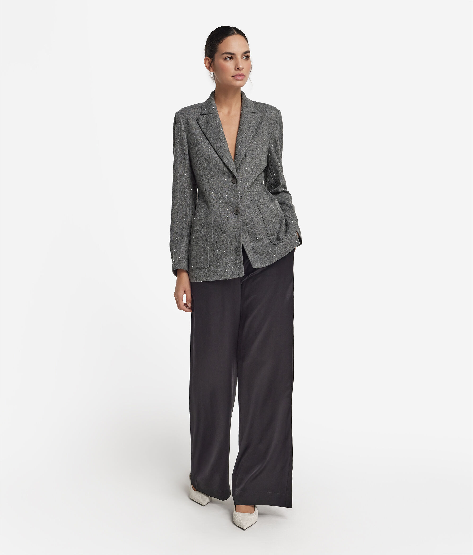 Sacou cu dungi din lână cu paiete