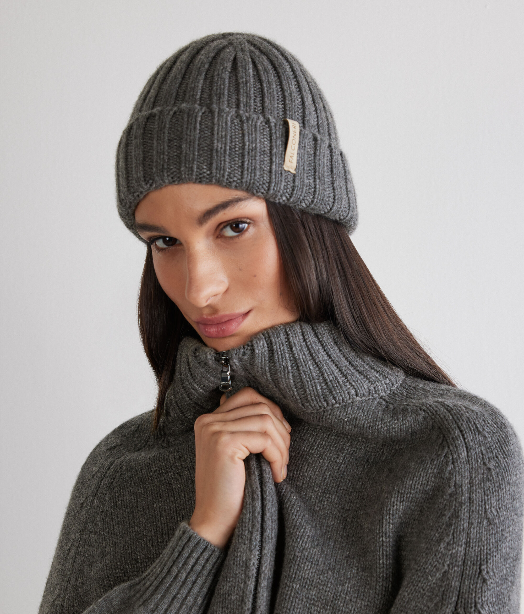 Confecționată din cașmir, această căciulă este împodobită cu detalii rafinate: căptușeala din mătase și tricotajul reiat o fac moale și confortabilă. Este accesoriul indispensabil pe care trebuie să îl aveți mereu cu dvs. pentru a face față condițiilor climatice aspre de iarnă.