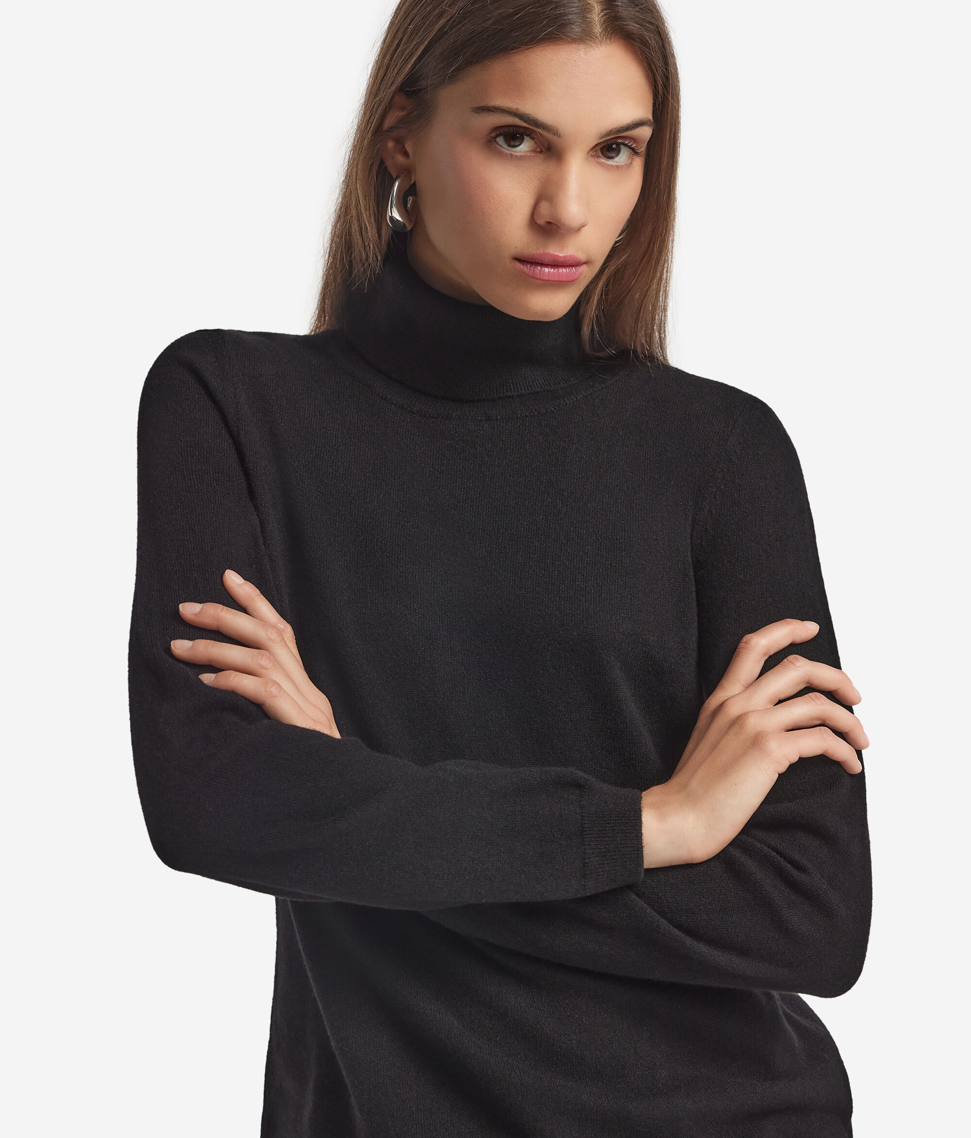 Simbol incontestabil al luxului și sofisticării, cașmirul ultrasoft accentuează forma acestei bluze cu guler înalt. Designul de bază prezintă o croială clasică: învăluie delicat silueta, accentuându-i feminitatea.