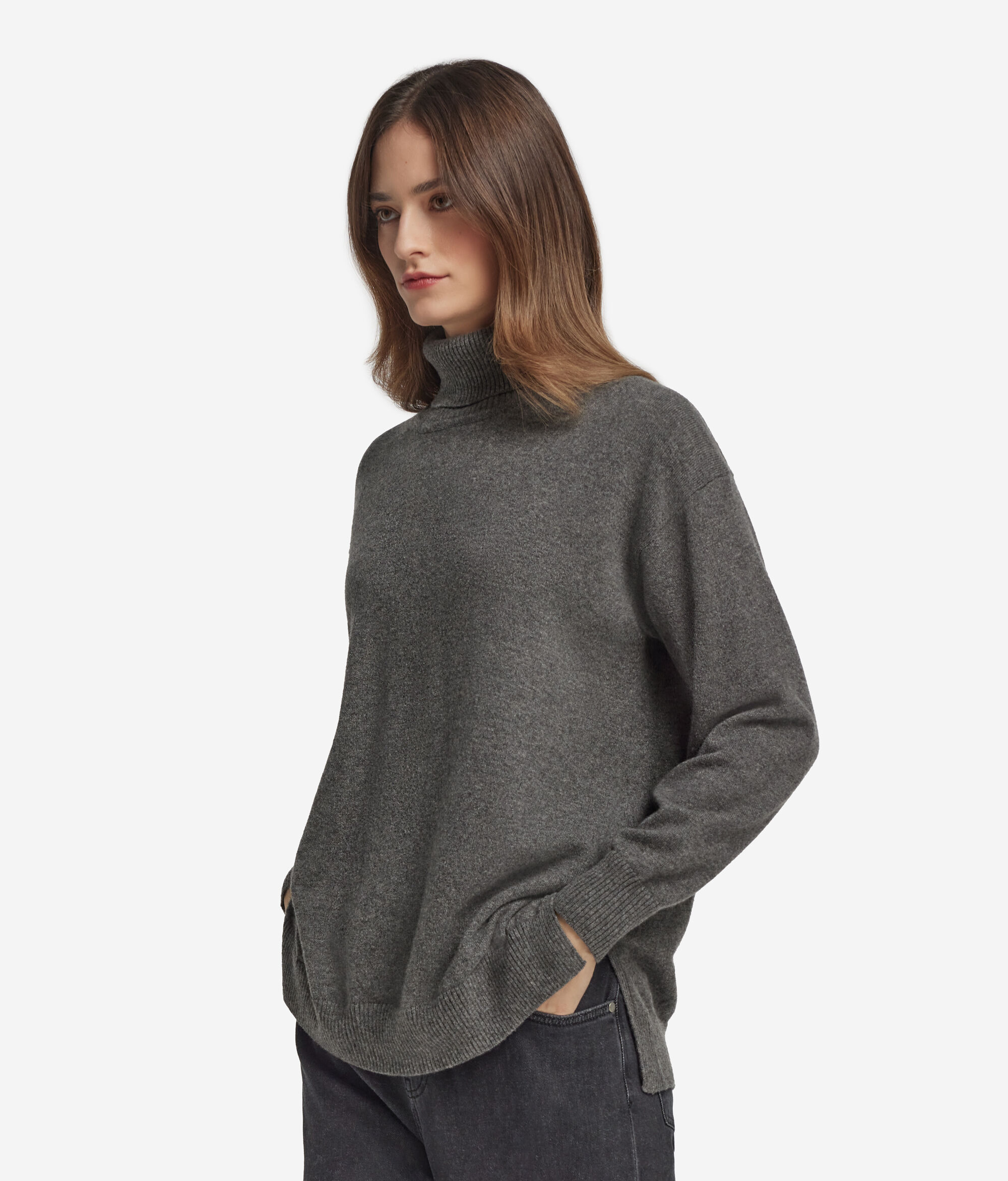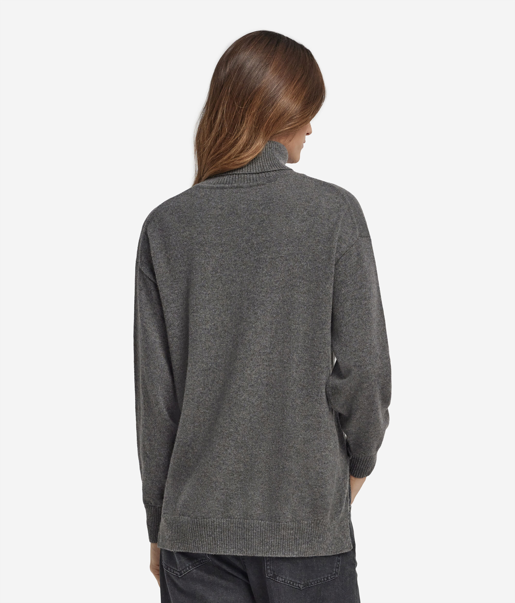 Maletă din cașmir ultrasoft. Acest articol vestimentar se caracterizează prin umeri ușor căzuți, model reiat pe decolteu, manșete și tiv, și prin fantele din partea de jos. Croiala este clasică.