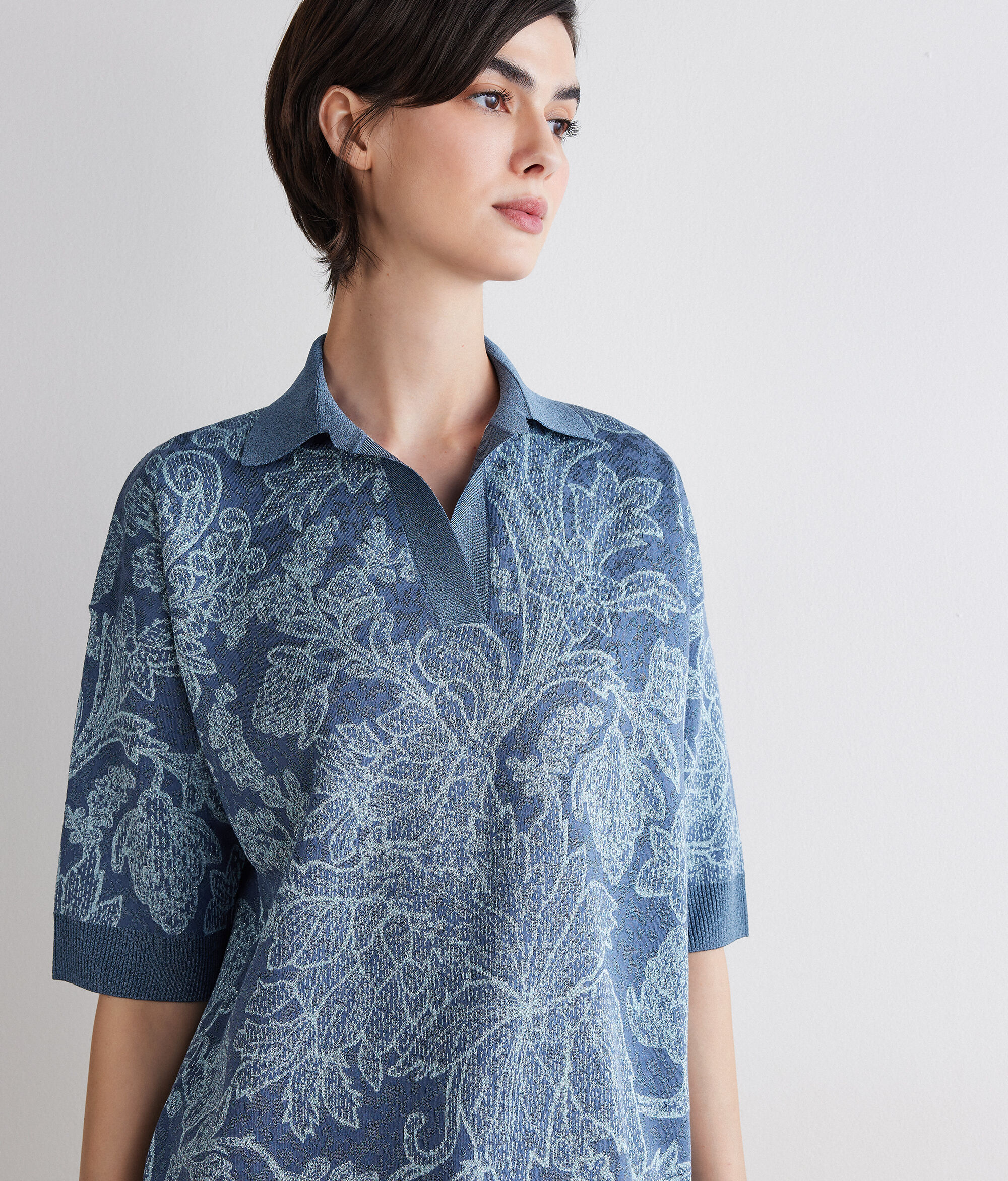 Tricou polo din jacquard cu motive botanice