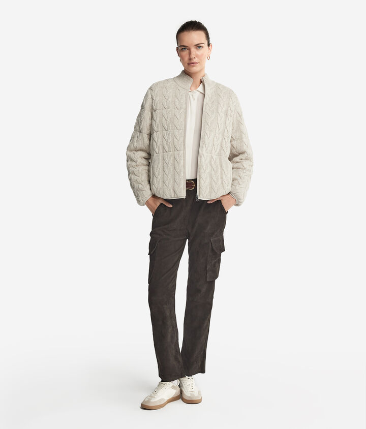 Geacă Reversibilă cu Puf cu Model Împletit din Cașmir
