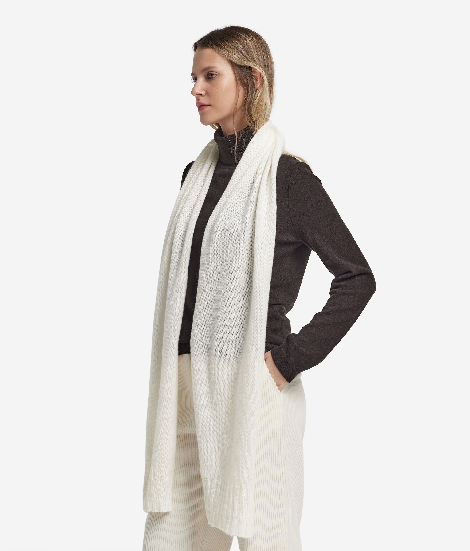 An essential yet luxurious accessory, this scarf made entirely of cashmere is the perfect accessory for keeping warm on colder days. Its simple and elegant ribbed design makes it versatile and suitable for many occasions, from the informal to the more special.