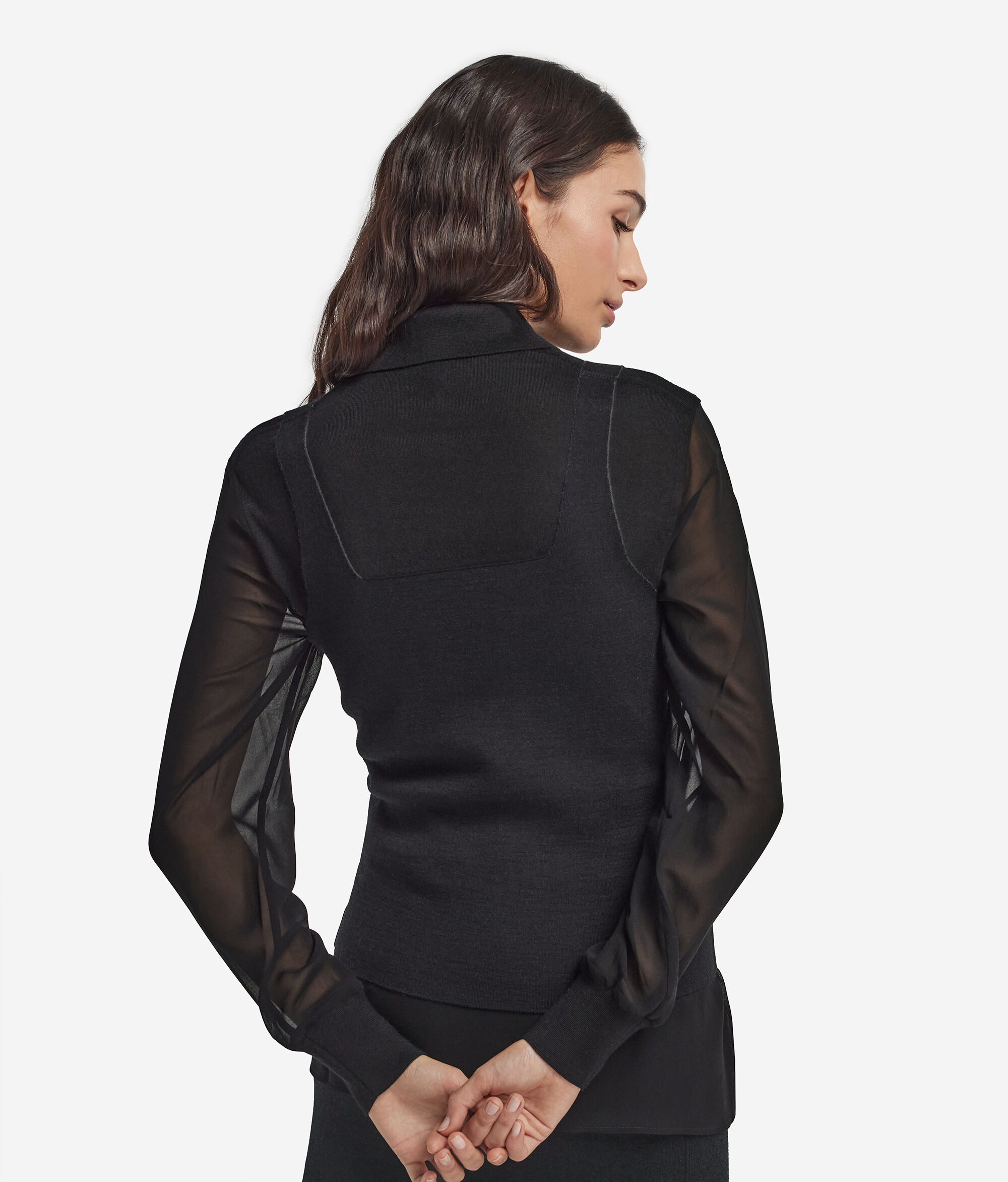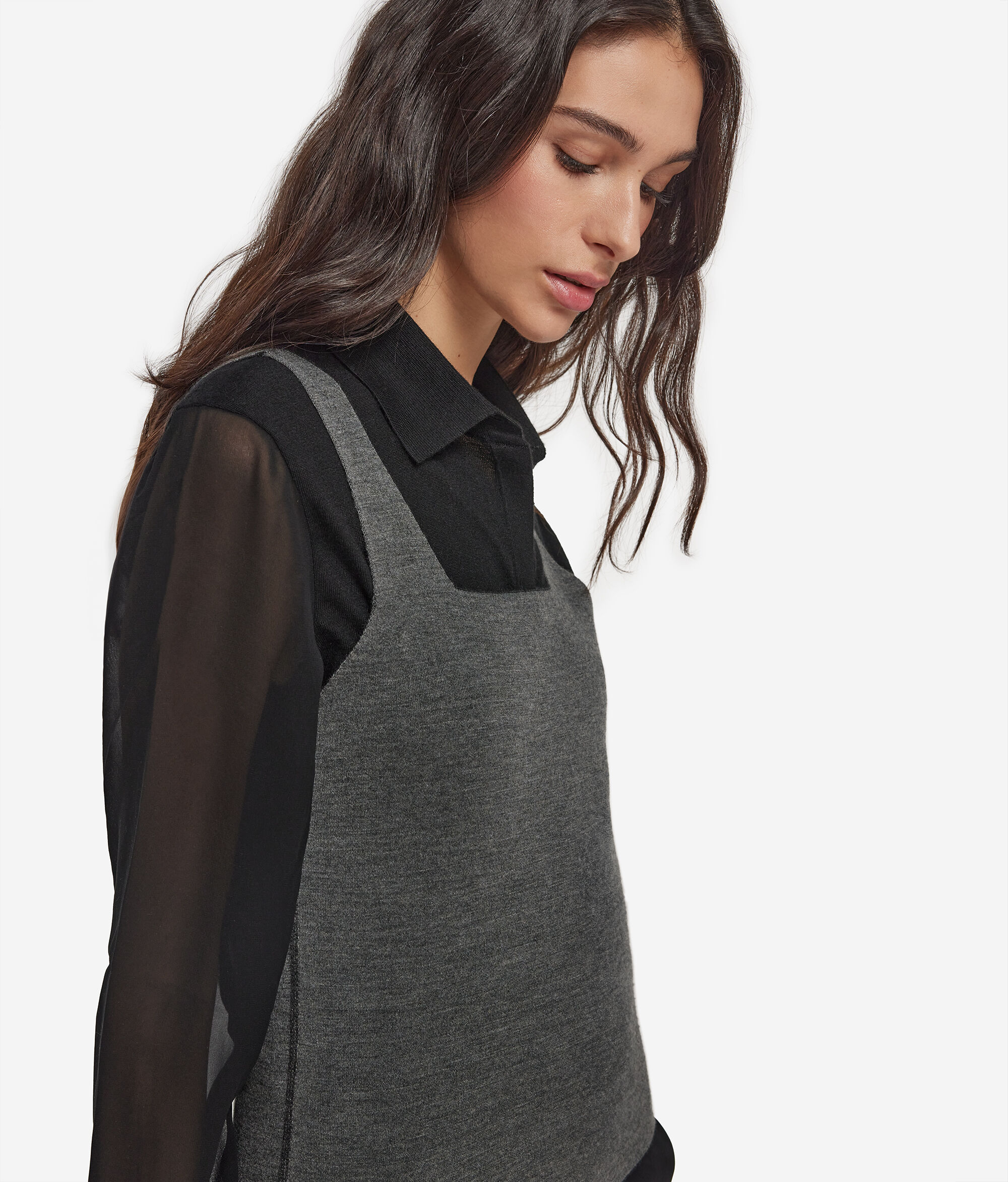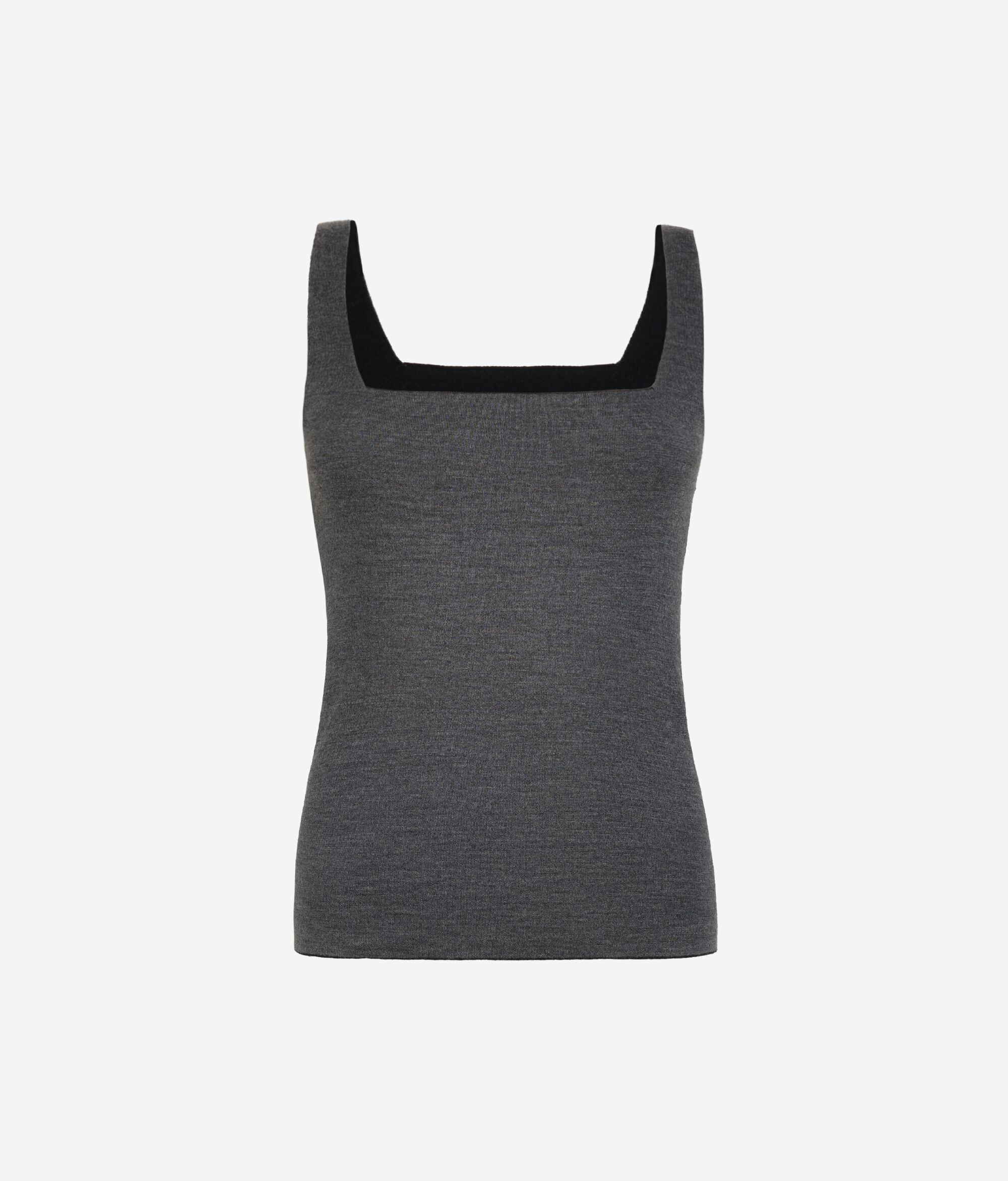 A garment that blends luxury and versatility, this Ultrafine Cashmere camisole caresses the skin with lightness and sophistication. The wide strap and square neckline at the front, complemented by a deep V-neck at the back, create a refined and balanced interplay of lines. Being reversible it offers two distinct looks, while the above-the-hip length and slim fit enhance the silhouette. Perfect on its own or as a layer beneath jackets and blazers, it is a real contemporary must-have.