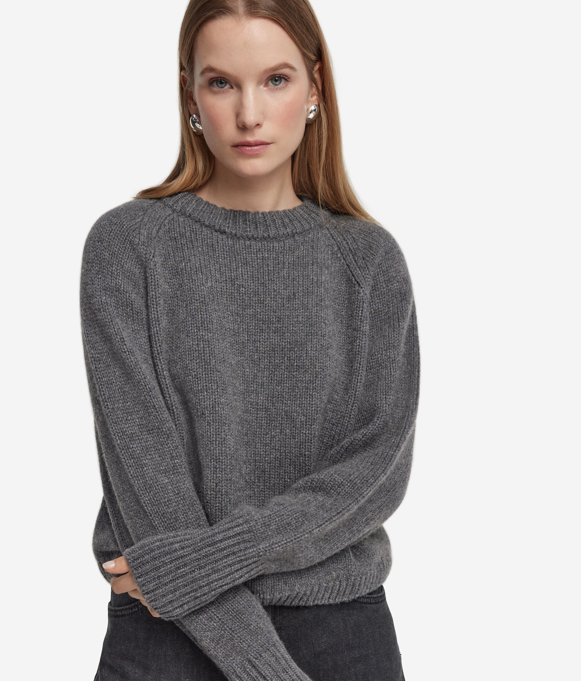 Add luxury and comfort to your wardrobe with this exclusive round-neck jumper in Ultrasoft Cashmere tricot. With its multi-ply yarn, it is embellished with a ribbed finish on the neckline and long cuffs, adding a touch of class to the understated design of the piece. The rolled hem and raglan sleeves make for modern, distinctive details to complete the look. Its loose wearability provides a relaxed and natural fit, in perfect contemporary style.