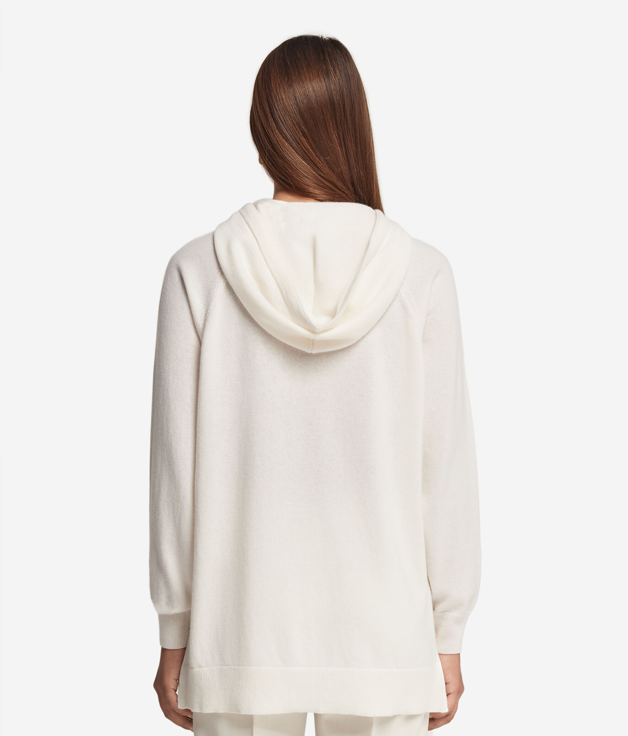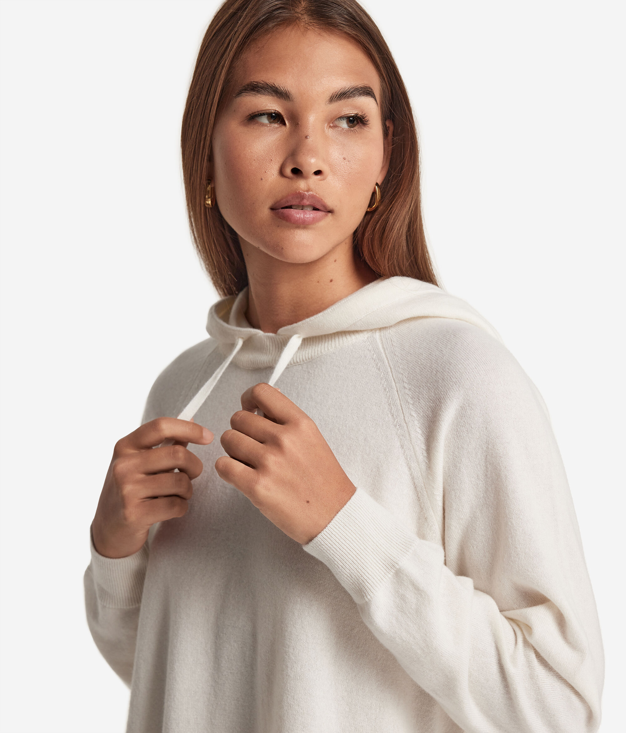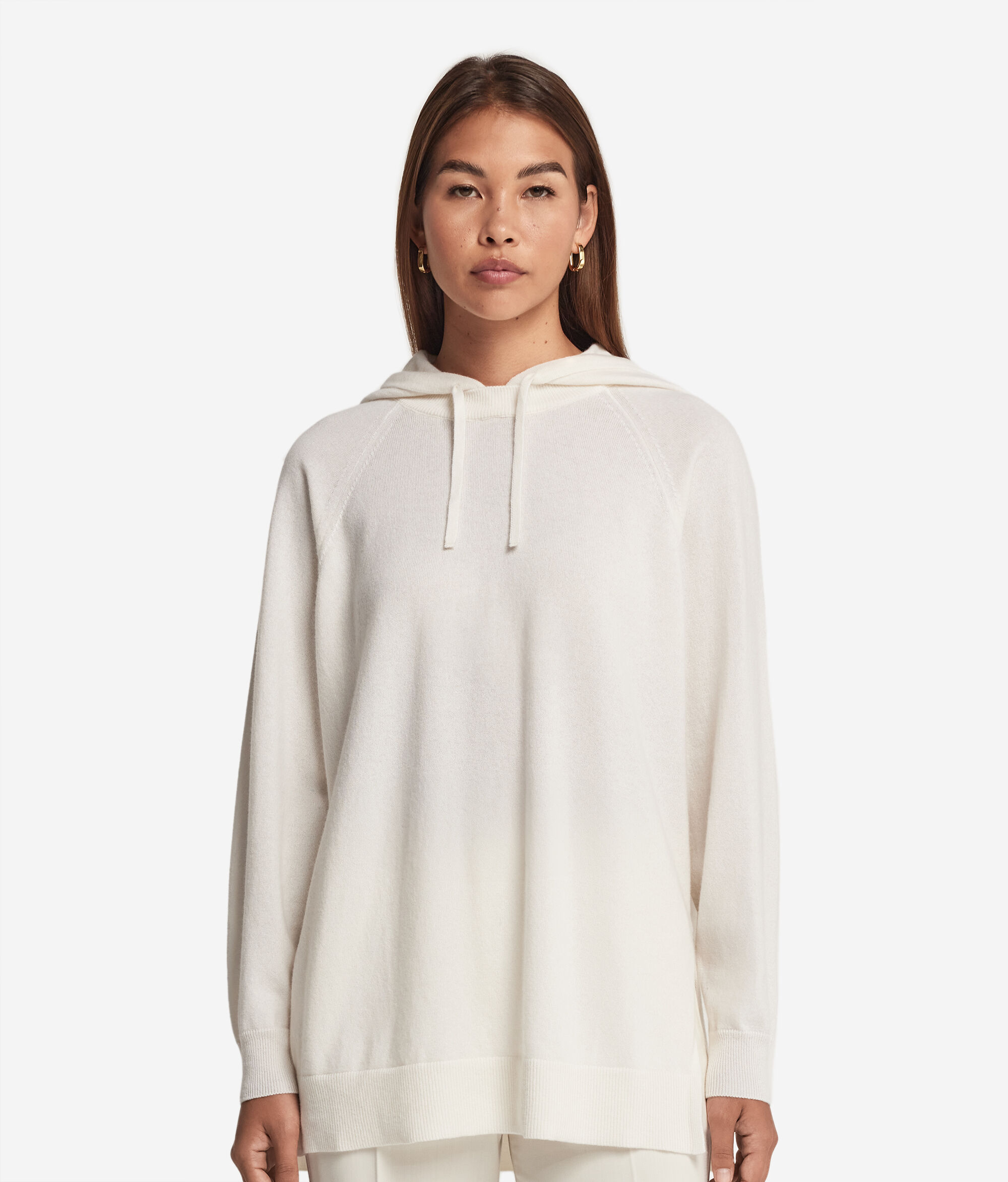 Let yourself be wrapped up in this soft sweatshirt entirely created in precious Ultrasoft Cashmere. Complete with hood with adjustable drawstring, it is also enriched by several ribbed knit finishes on the round neck, cuffs and hem. The design is further enriched by small side slits, a refined touch that gives the garment movement. Its loose wearability and raglan sleeves provide a relaxed and natural fit that comes up to a contemporary style.