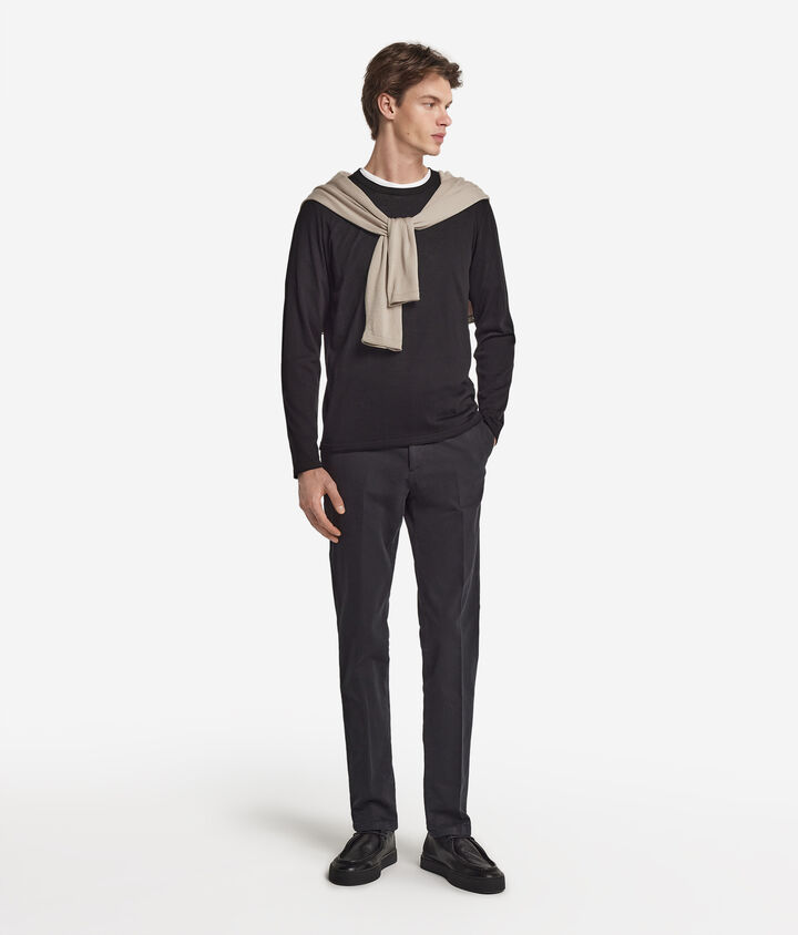 Round-Neck Silk and Cotton Jumper128,00 €Select your colourNavy BlueWhiteAlmond+ 2Selected color: Navy Blue