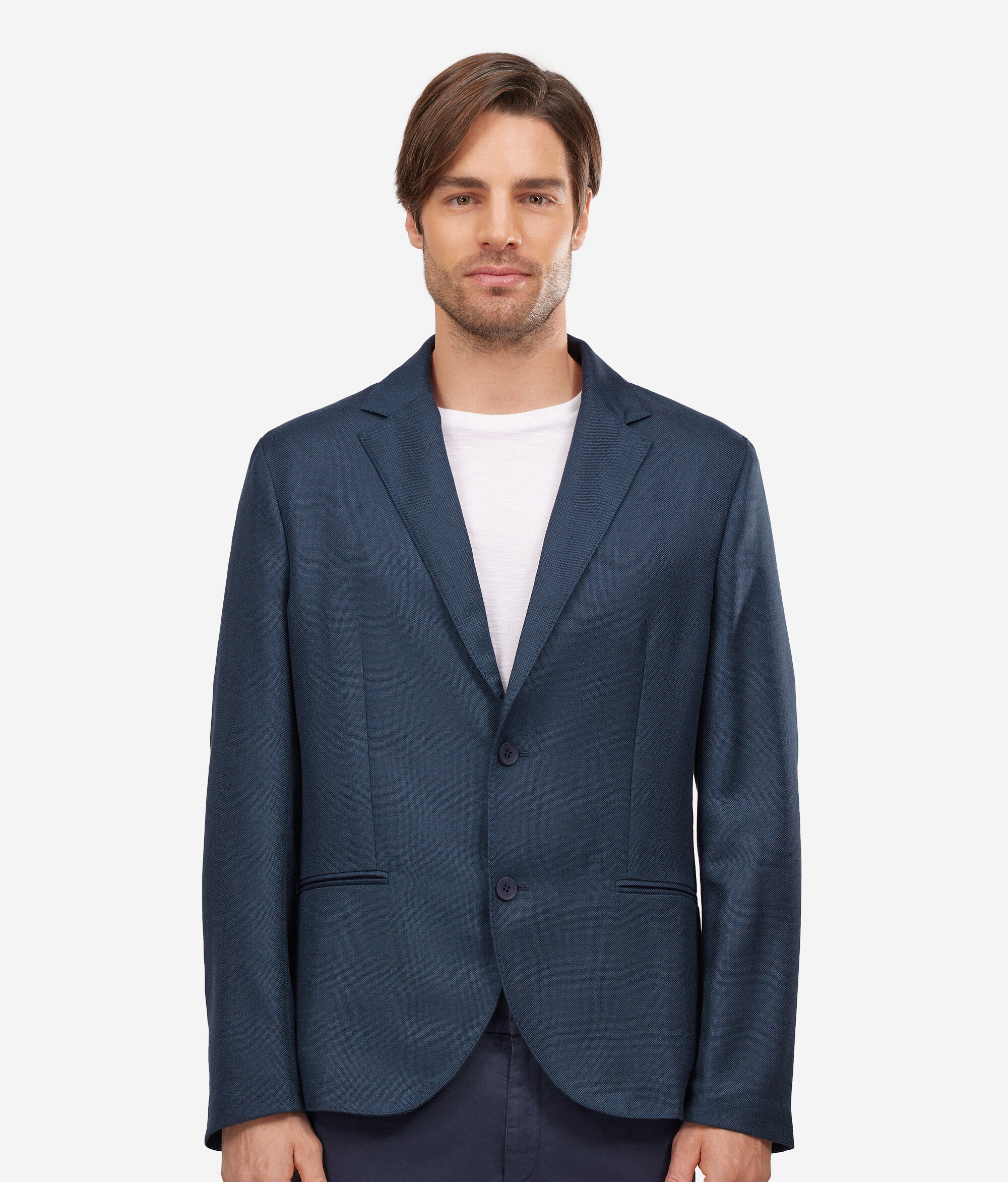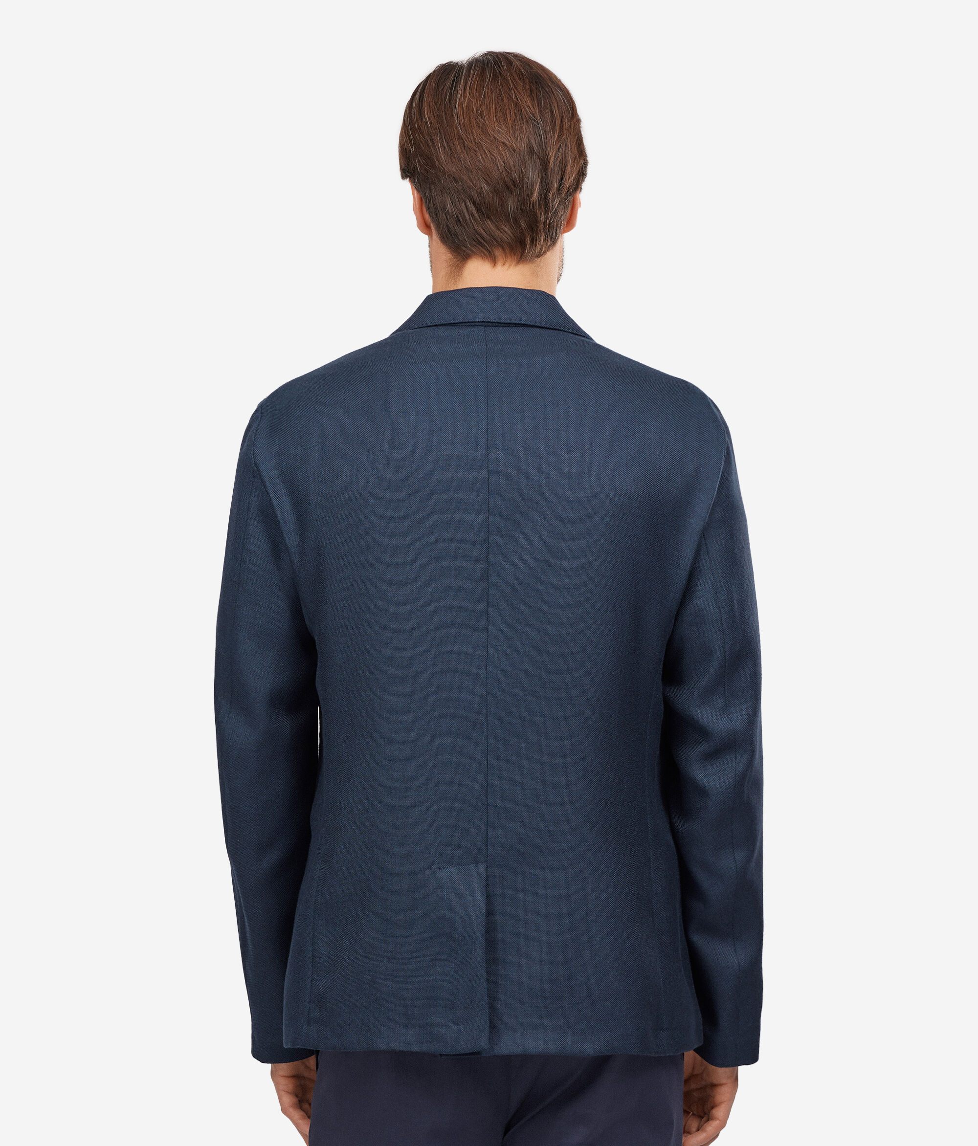 Single-breasted jacket crafted in a luxurious blend of cashmere, silk and linen. Central two-button fastening and patch pockets. The softness of the fabric gives the piece a Regular Fit. We recommend sizing up one to two sizes for the best fit.