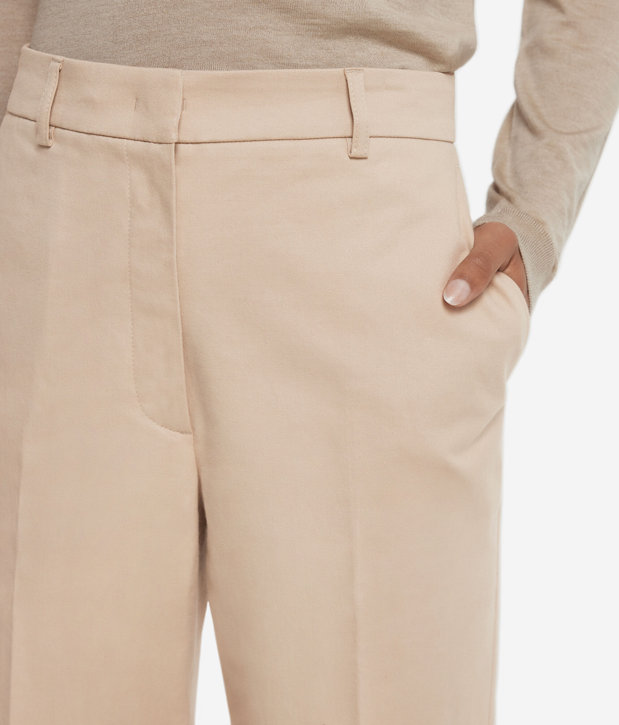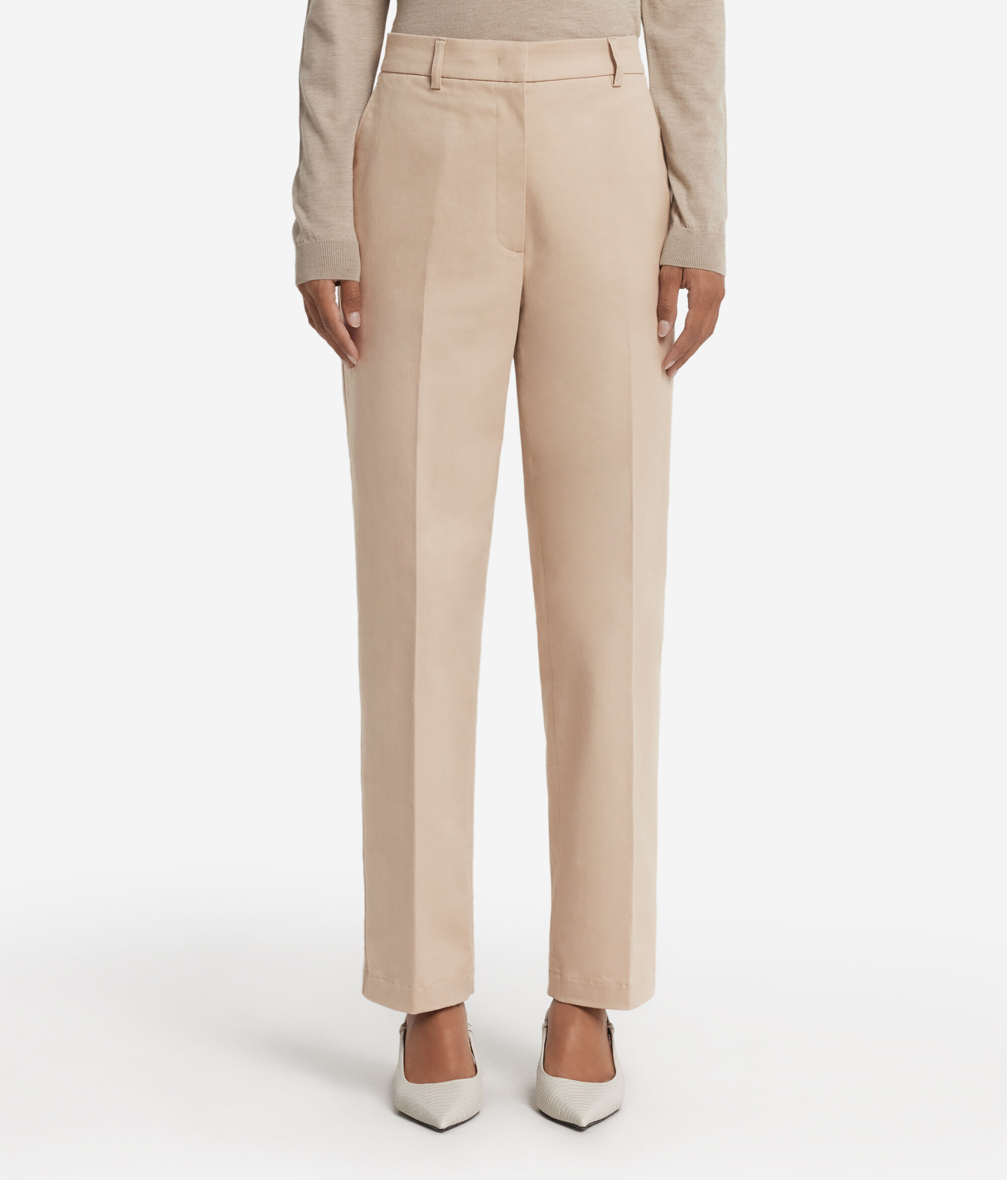 Cotton and cashmere converge in these cigarette trousers, offering an exceptional feel and a sculpted silhouette. Pockets at the hips provide a practical, subtle detail, while the regular silhouette and ankle length strike an ideal balance between modern elegance and everyday functionality. A versatile garment that seamlessly complements both professional attire and more casual moments.