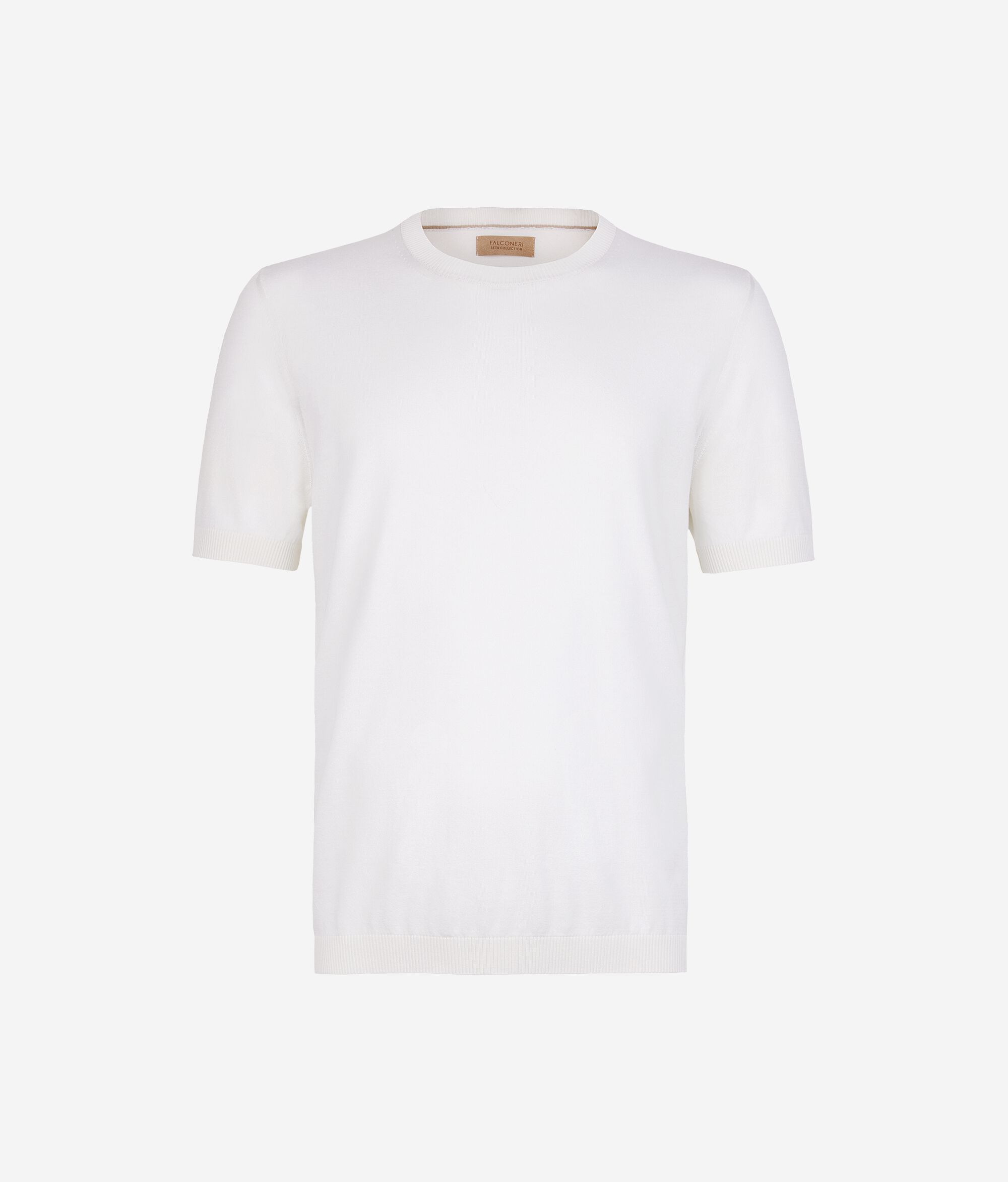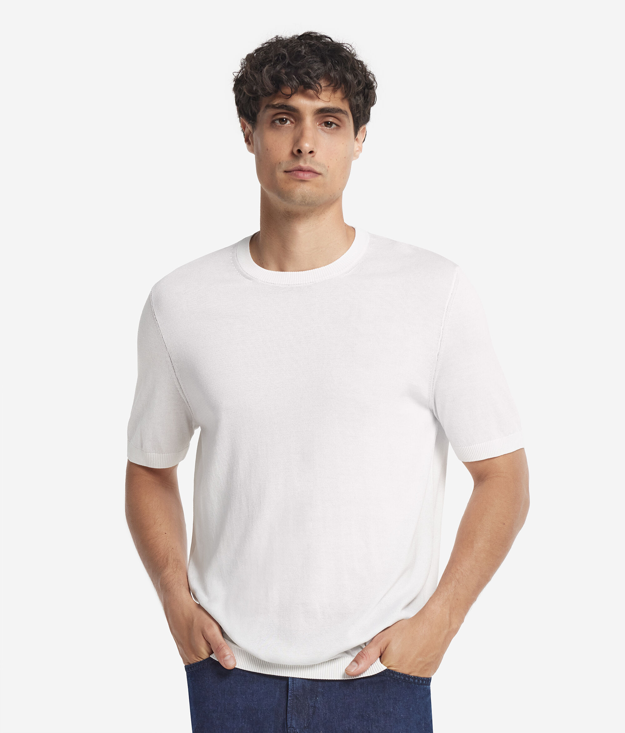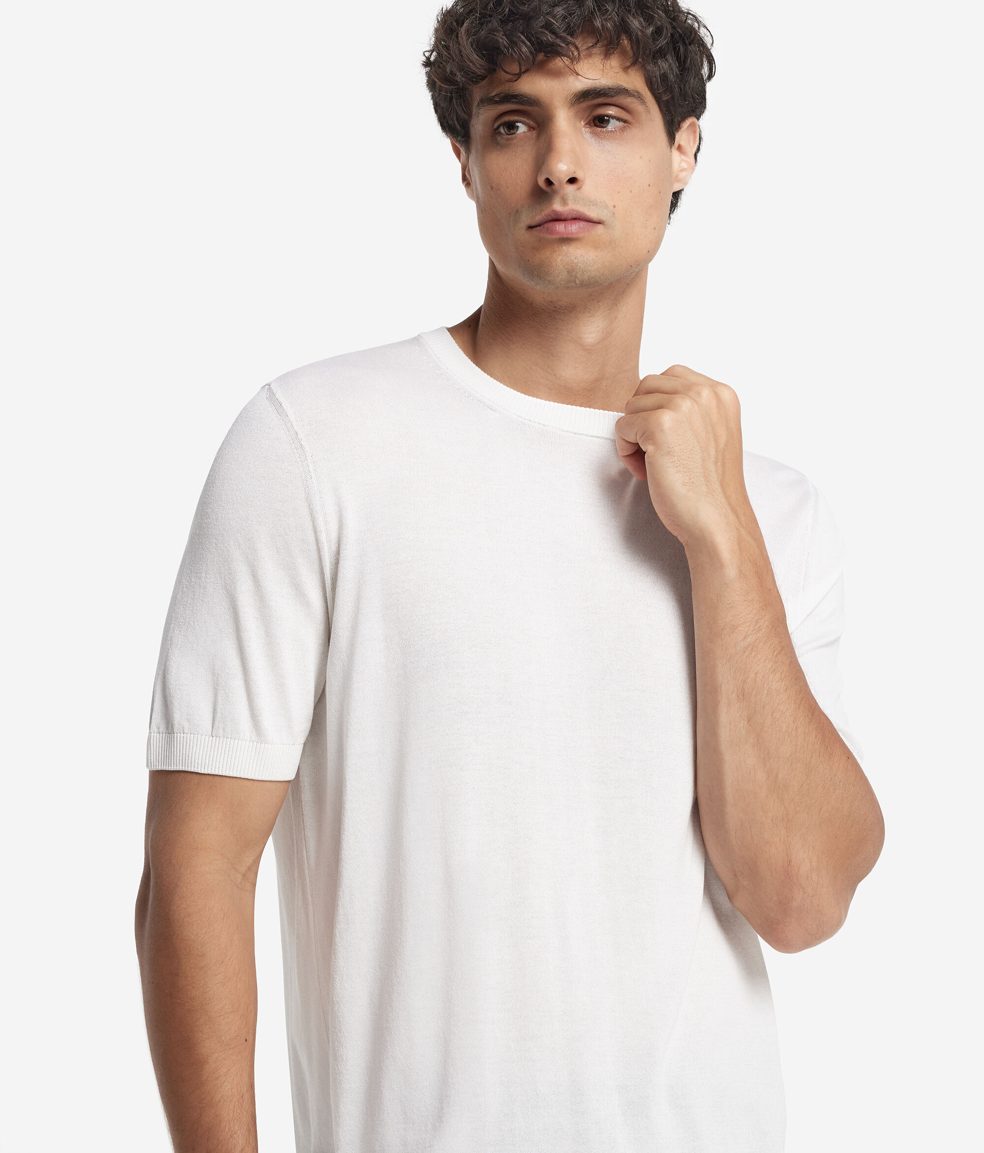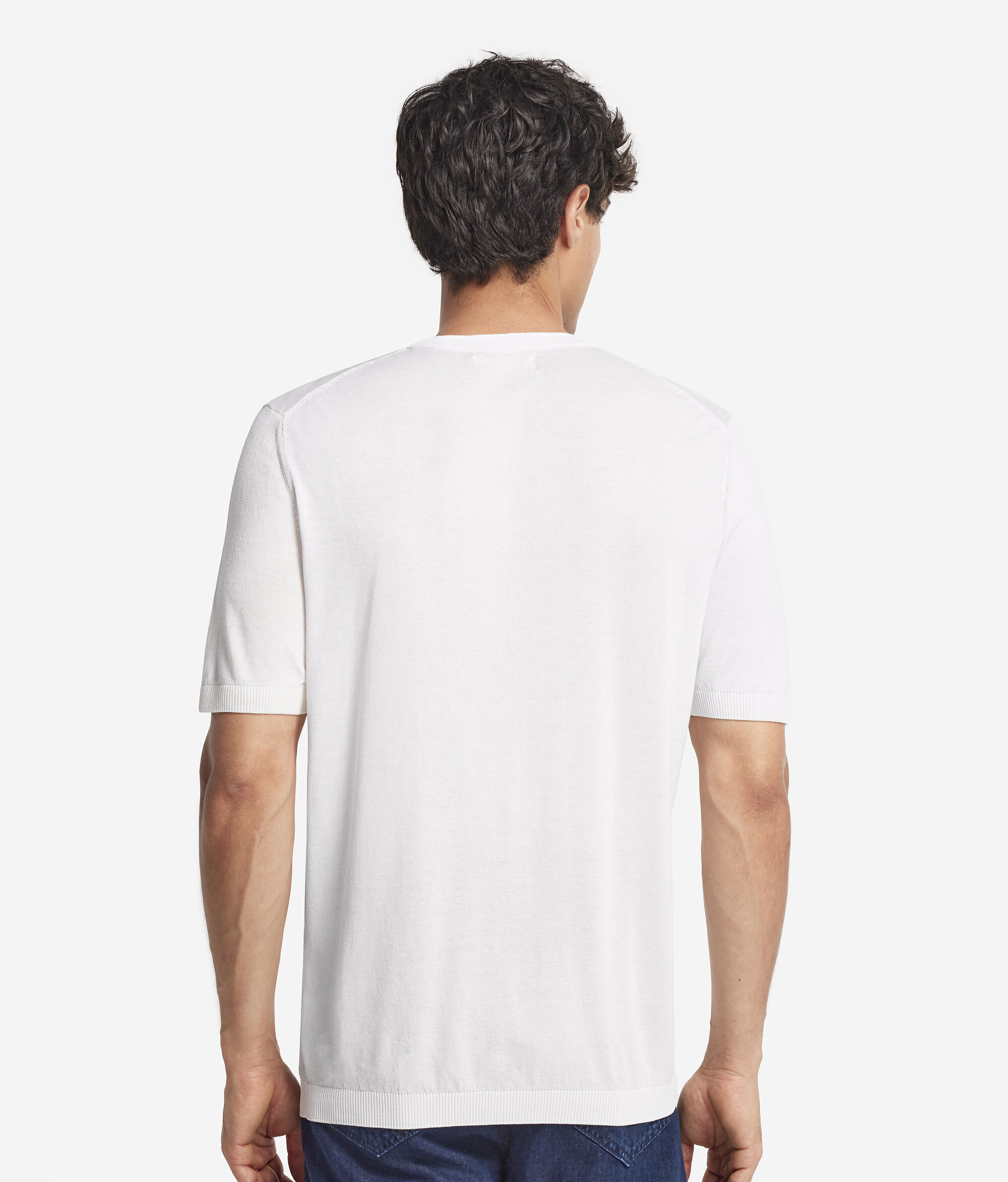 The luxury of the natural fibres enhances the simple design of this T-shirt in silk and cotton, a lightweight fabric with a smooth and flowing hand. With a Regular Fit. We recommend sizing up one to two sizes for the best fit, it adapts perfectly to the lines of the body and is perfect for any occasion, whether worn alone or under a jacket.