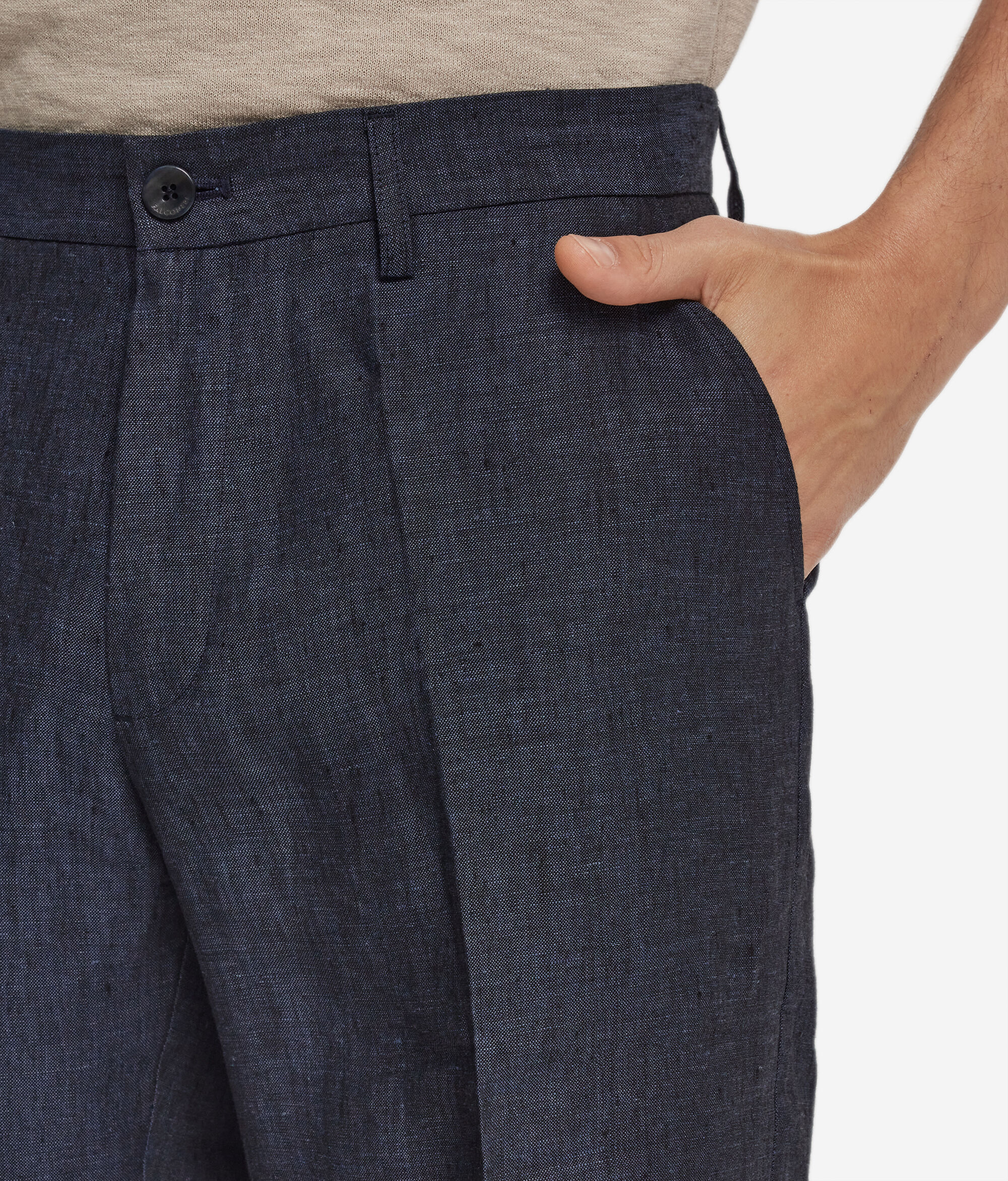 These elegant over-the-knee trousers, crafted from cool linen fabric, strike a perfect balance between simplicity and sophistication. Slant hip pockets and back welt pockets add a touch of sophisticated practicality to the design. With its Regular Fit. We recommend sizing up one to two sizes for the best fit, this garment strikes the perfect balance between freedom of movement and style, making it ideal for warmer days.
