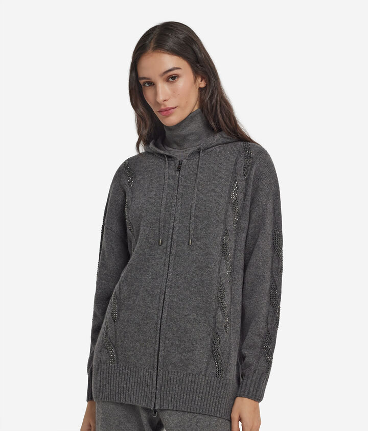 Ultrasoft Cashmere sweatshirt with cable knit and rhinestones