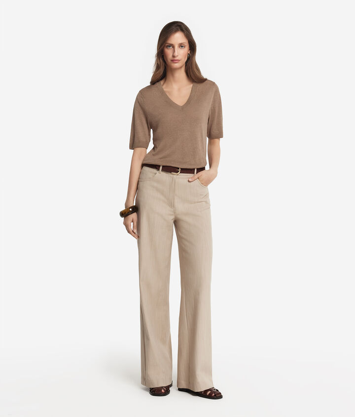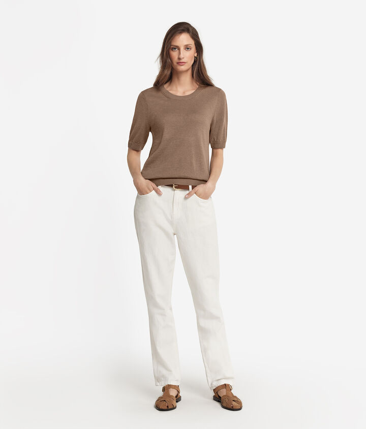 Short-Sleeved Round-Neck Ultrafine Cashmere Top