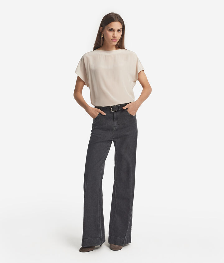 Round-Neck Silk T-Shirt88,00 €Select your colourBlackWhiteLIGHT MOTHER-OF-PEARL GREY+ 1Selected color: Black