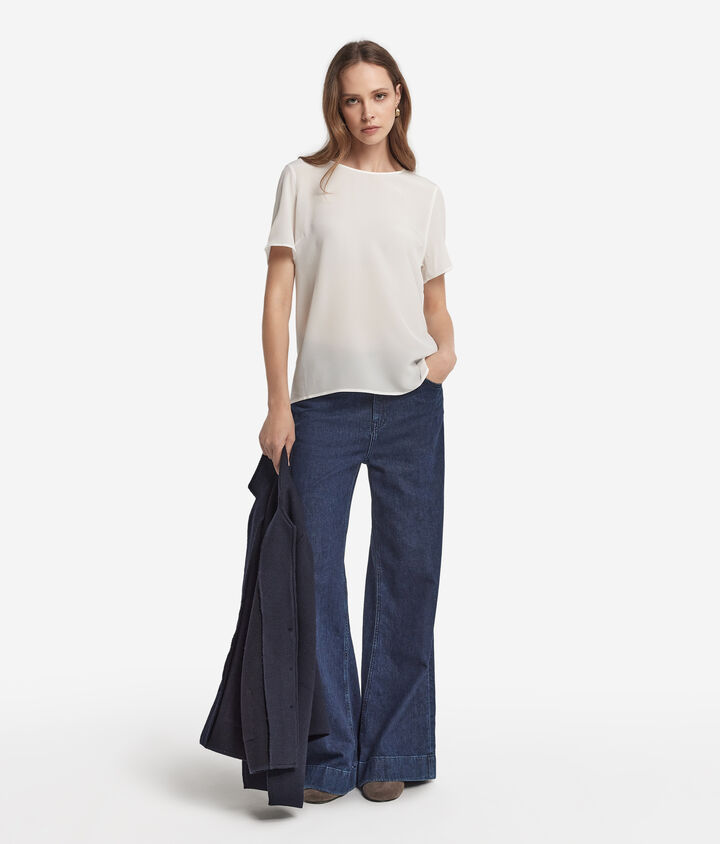 Round-Neck Silk T-Shirt88,00 €Select your colourNavy BlueWhiteLIGHT MOTHER-OF-PEARL GREY+ 1Selected color: Navy Blue
