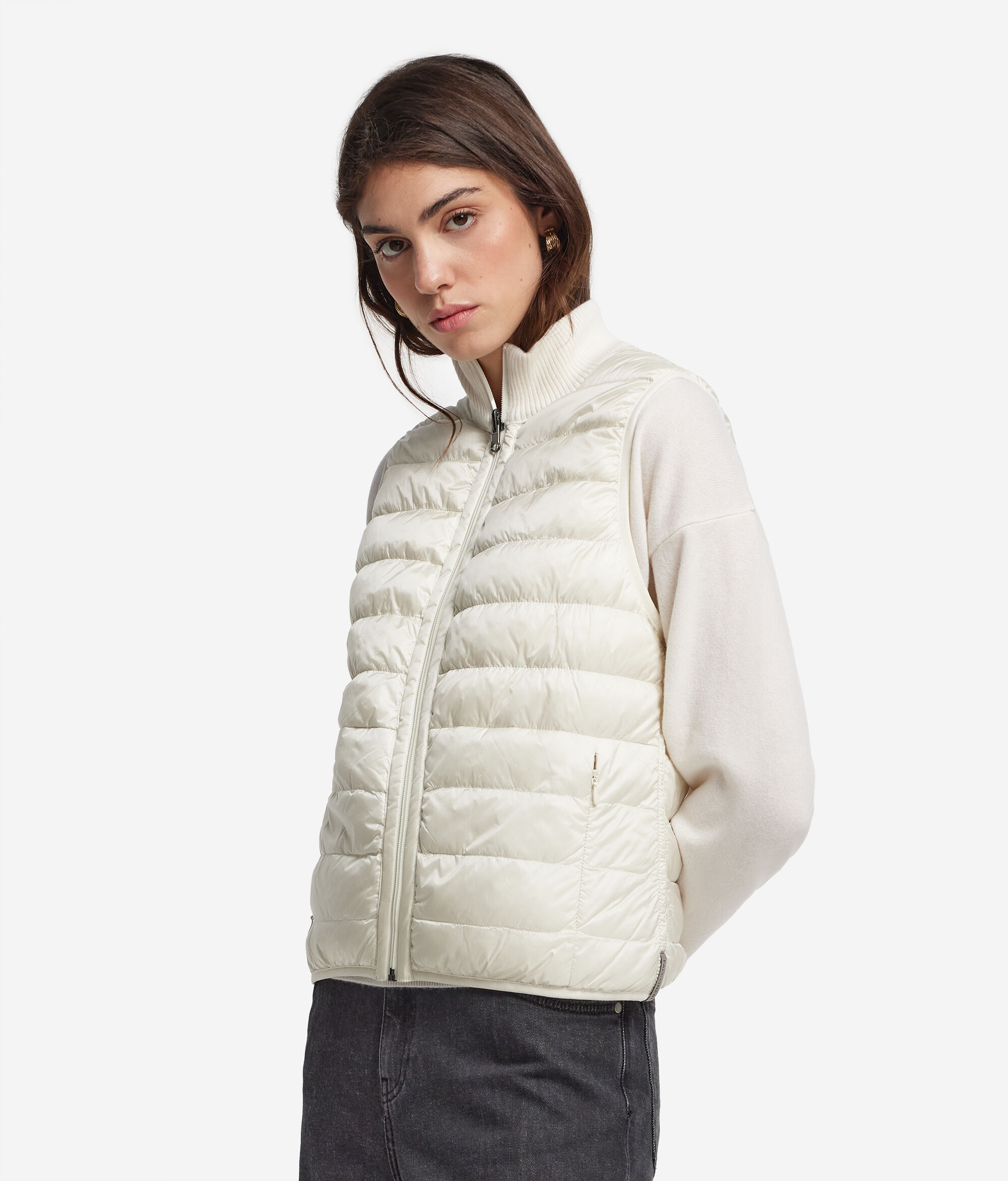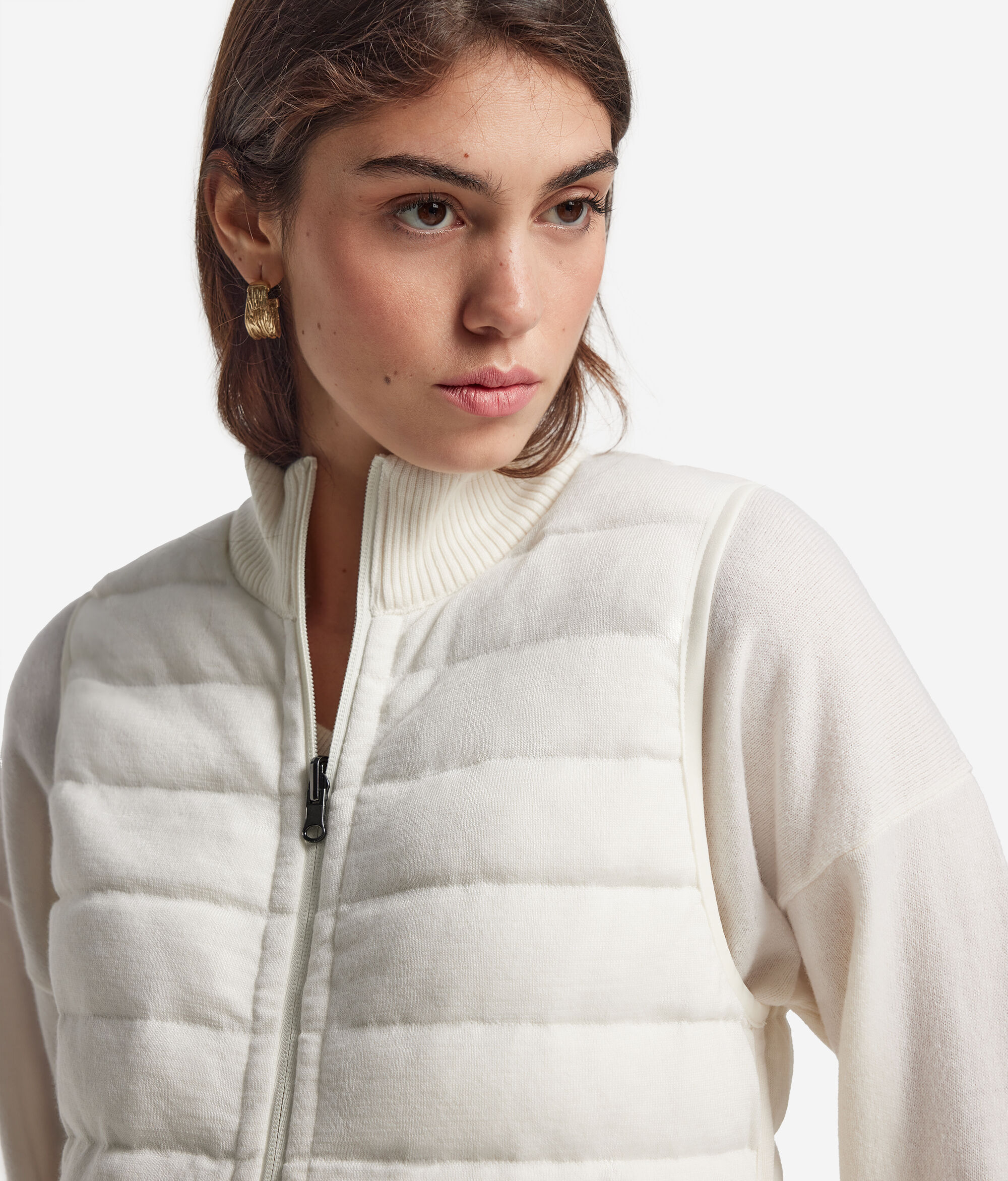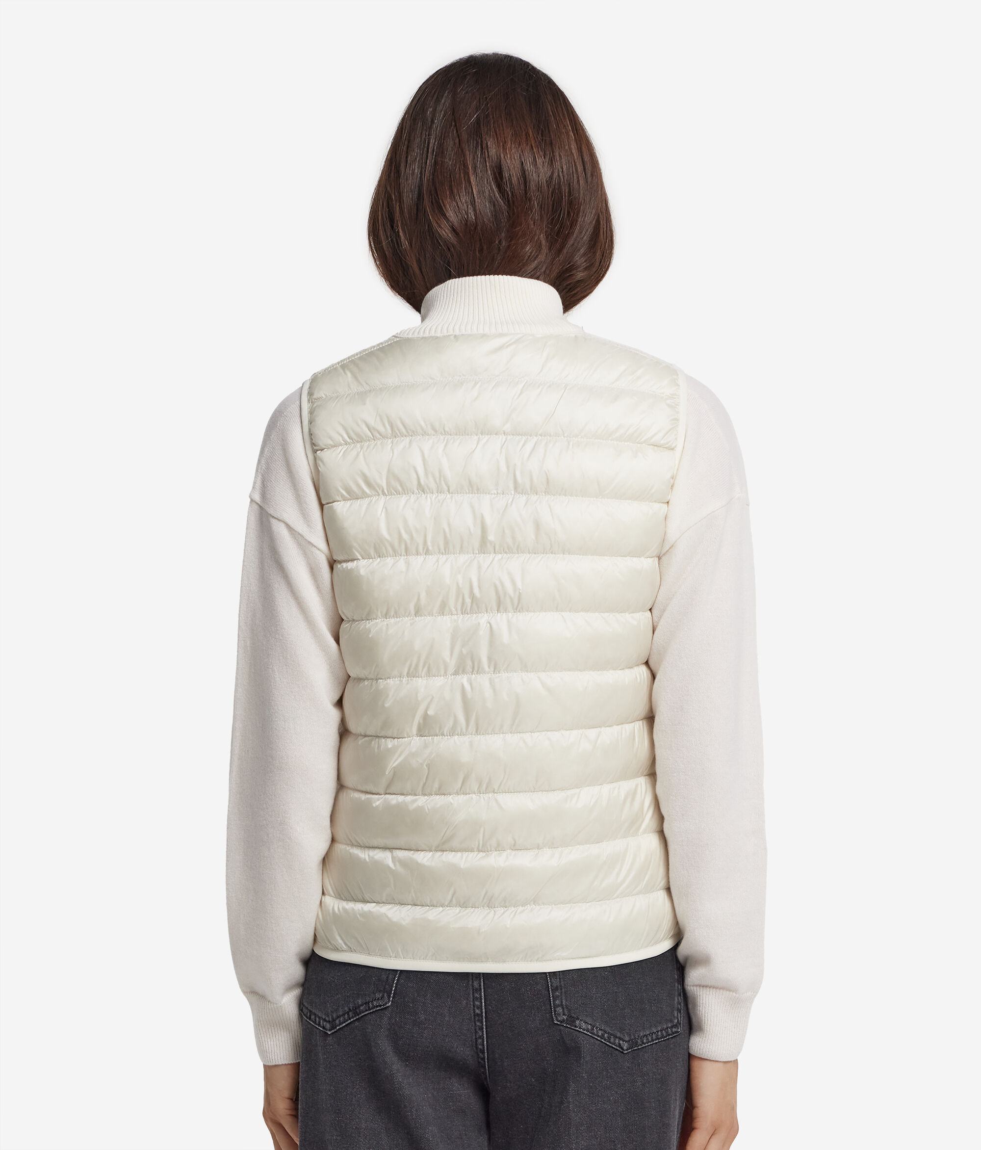 Falconeri dolgulu şişme yeleğin kadınlar için kullanışlı ve eşsiz yeni modelini sunar. Yüksek kaliteli ultrafine cashmere'in eklenmesiyle spor stili daha da zenginleşen yelek, işlevselliği ve şıklığı mükemmel bir şekilde birleştirir. Çift taraflı olması sayesinde giymek istediğiniz stili her zaman seçebilirsiniz. Geçiş mevsimi için ideal olan bu ürün tüm kombinlerinize şık bir dokunuş katacak!