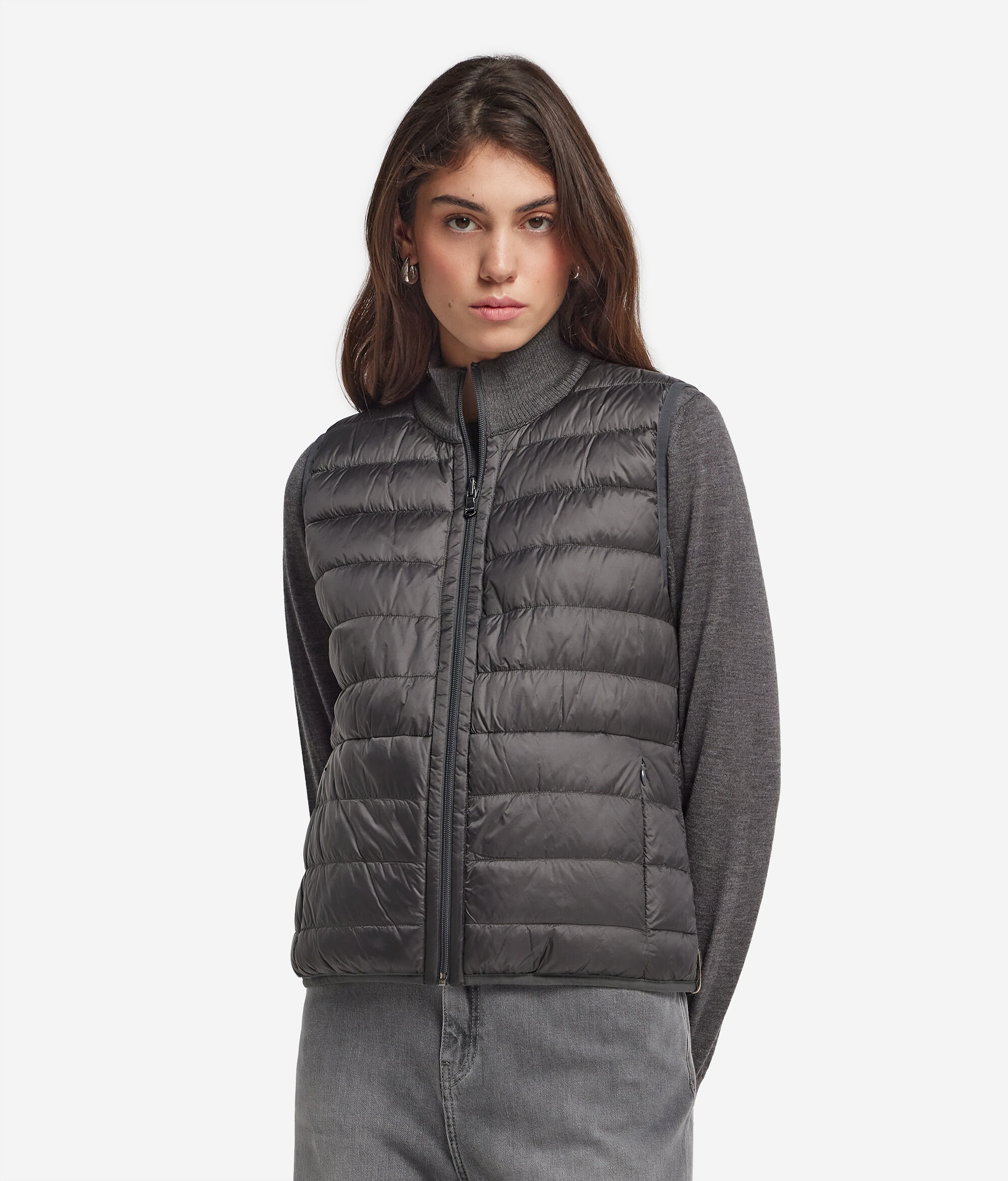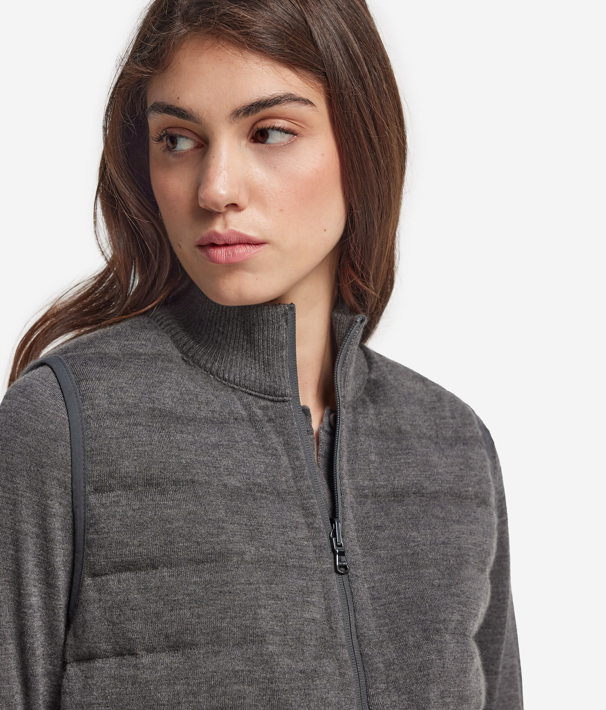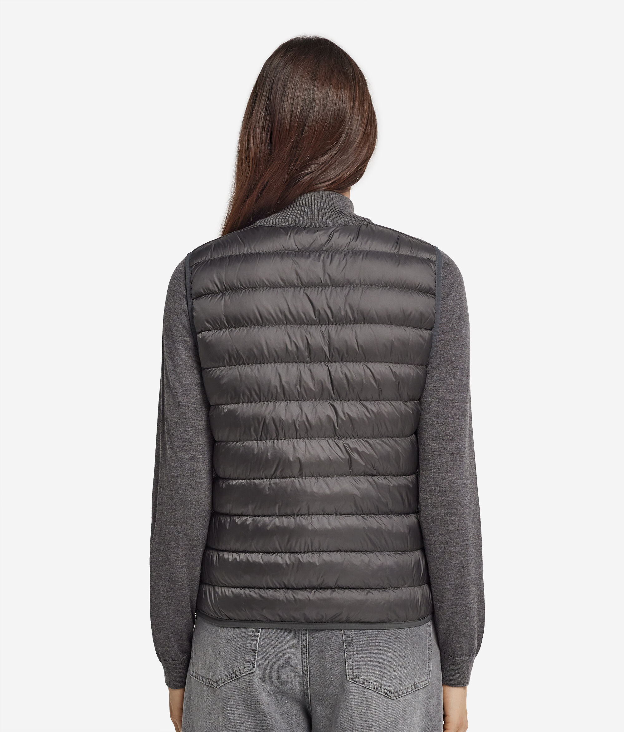 Falconeri dolgulu şişme yeleğin kadınlar için kullanışlı ve eşsiz yeni modelini sunar. Yüksek kaliteli ultrafine cashmere'in eklenmesiyle spor stili daha da zenginleşen yelek, işlevselliği ve şıklığı mükemmel bir şekilde birleştirir. Çift taraflı olması sayesinde giymek istediğiniz stili her zaman seçebilirsiniz. Geçiş mevsimi için ideal olan bu ürün tüm kombinlerinize şık bir dokunuş katacak!