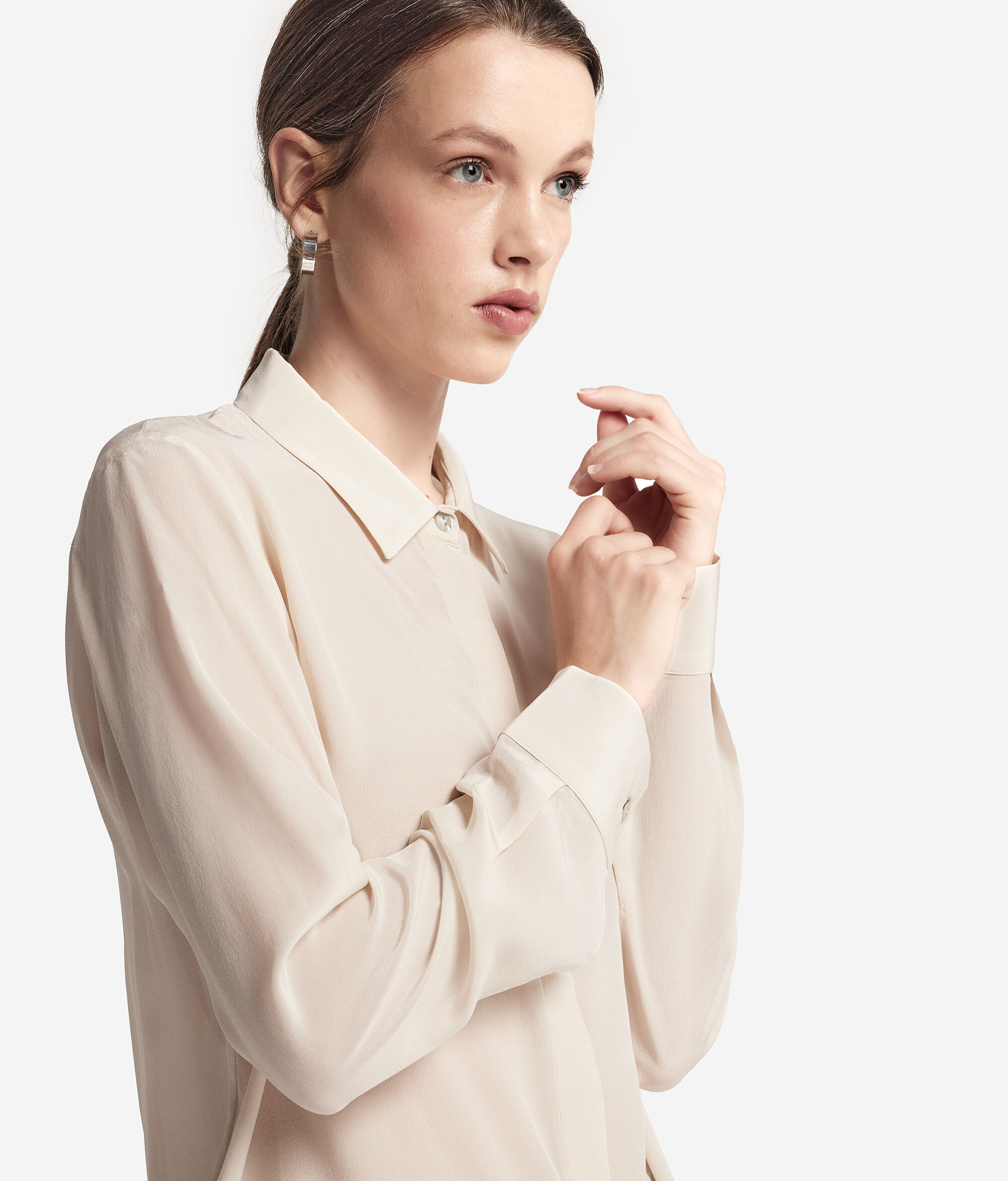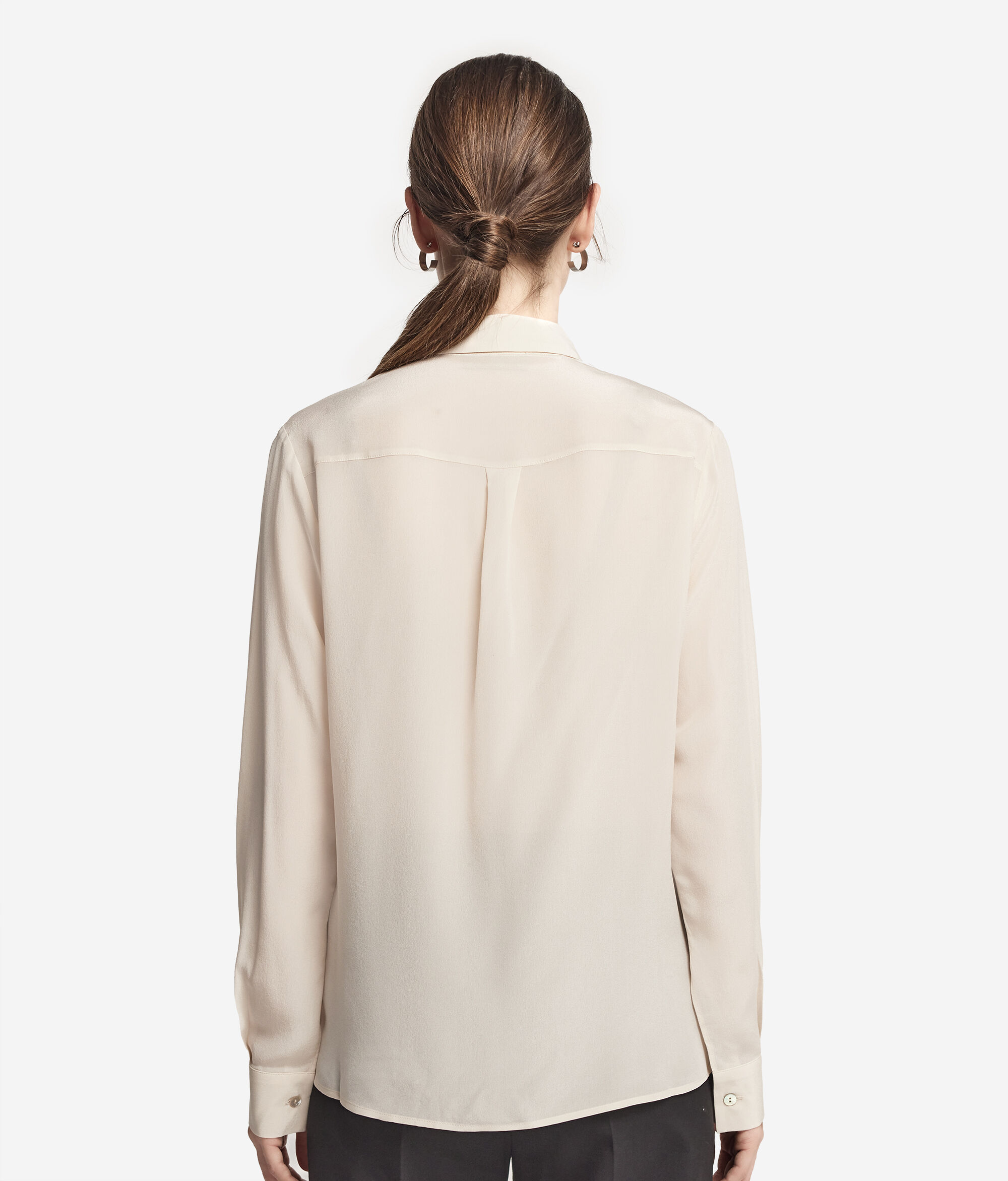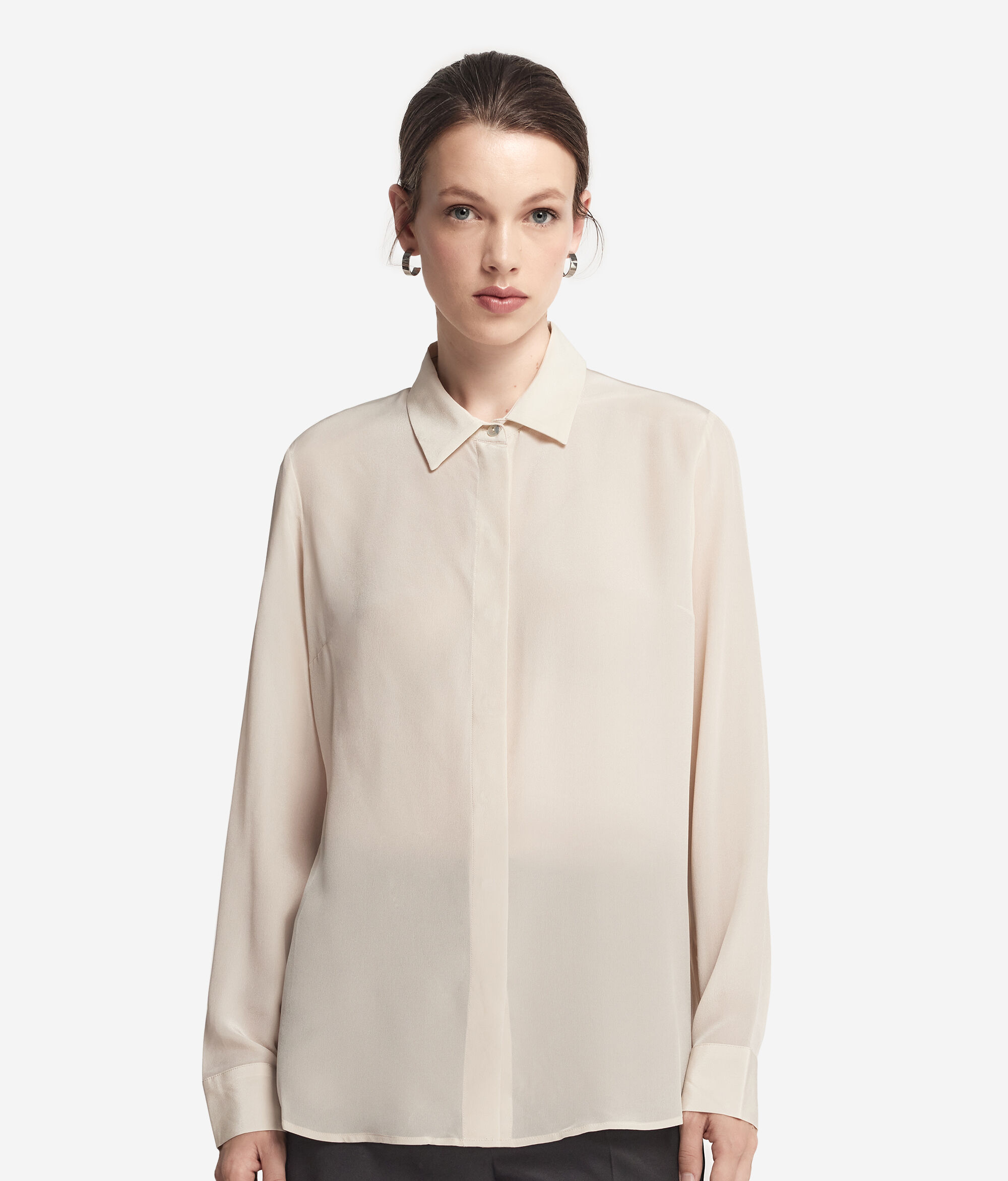 Şifon kumaştan üretilen bu gömleğin zamansız zarafetini keşfedin. Temiz ve sade çizgileri sayesinde, tasarımı klasik yaka ve düğmeli kapatma detayı ile zenginleştirilmiştir. Sade ama ayrıcalıklı bir zarafet sunan, kalite ve tarzından asla ödün vermeyenlerin gardırobunda olması gereken bir parçadır.