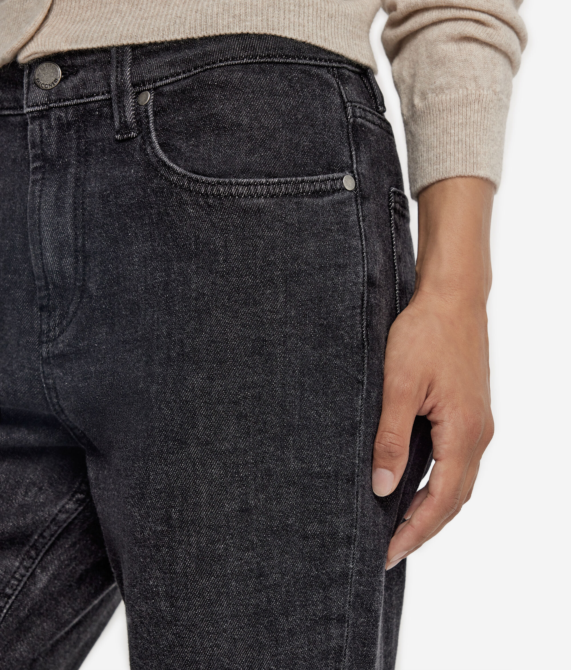 Terzi işçiliğinden ilham alan tasarım ve seçkin stil, bu pamuklu kaşmir denim pantolonda mükemmel bir denge oluşturarak bir araya gelir. Önden gizli fermuarlı ve logolu düğmeli kapatma dikkat çeken şık bir görünüm katar. Yanlarındaki ve arkasındaki cepler zamansız zarafet ve rahatlığın birleşimini sunar. Kumaşın yüksek kalitesi, vücudu saran ve konforlu bir etki yaratırken, sade ve düzgün hatlar modern bir form oluşturur.