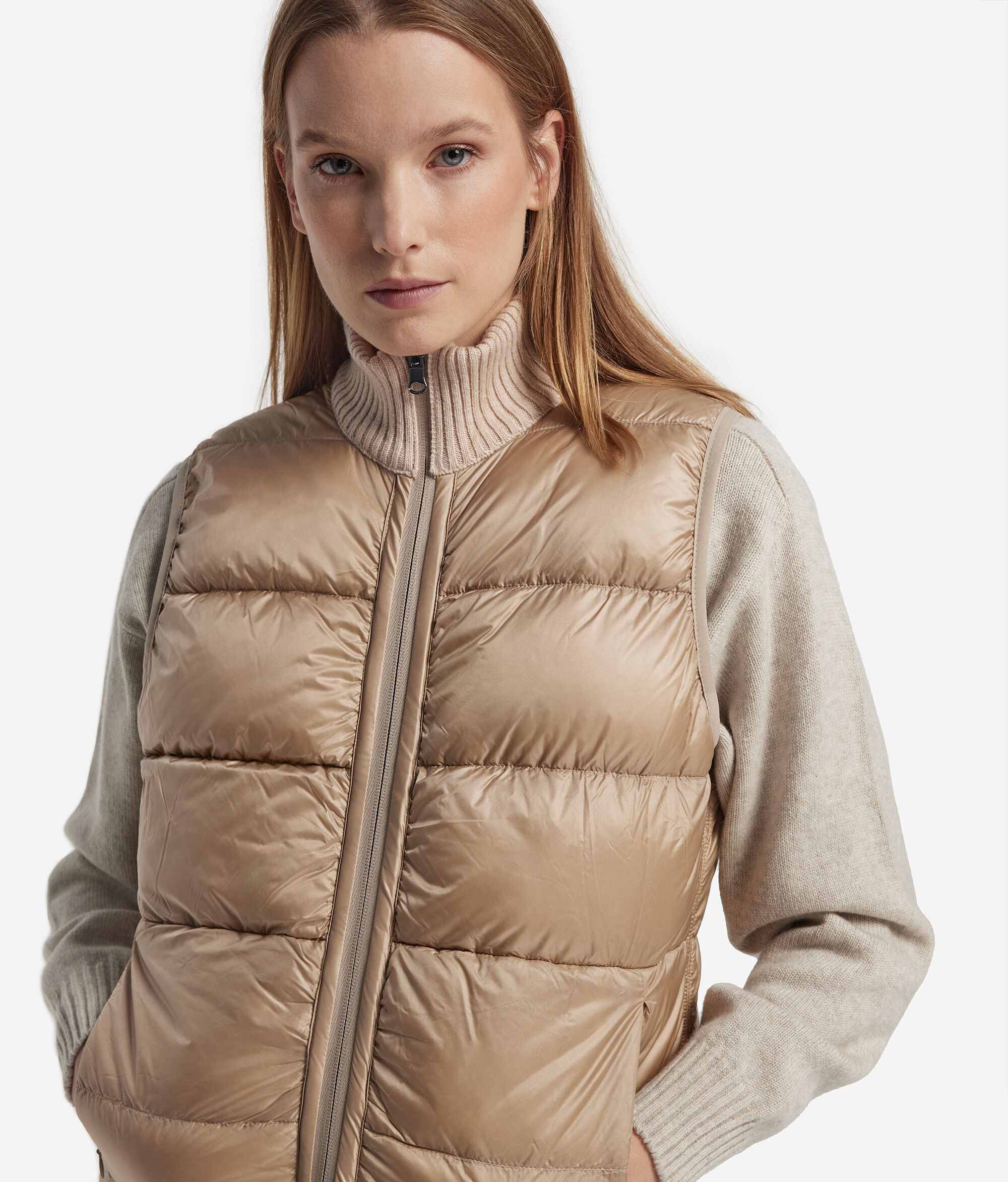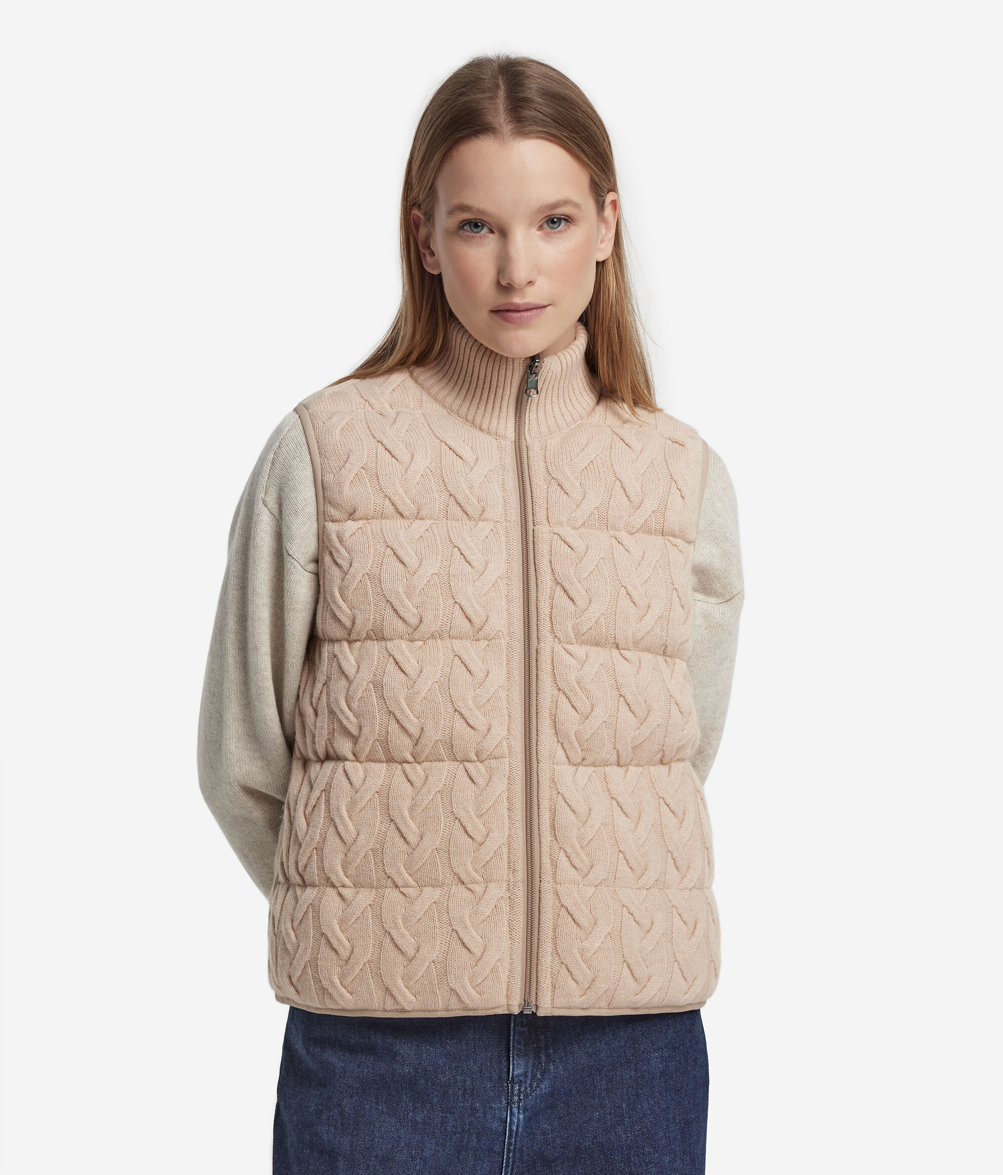 Saç örgüsü motifli dolgulu şişme yelek Falconeri imzalı sonbahar-kış kadın koleksiyonunun yeni bir parçası. Ultrasoft cashmere yarım balıkçı yaka detayı bu parçanın casual stilini zenginleştirerek işlevselliği ve şıklığı mükemmel bir şekilde birleştirir. Çift taraflı olması sayesinde giymek istediğiniz stili her zaman seçebilirsiniz. Geçiş mevsimi için ideal olan bu parça tüm kombinlerinize şık bir dokunuş katacak!