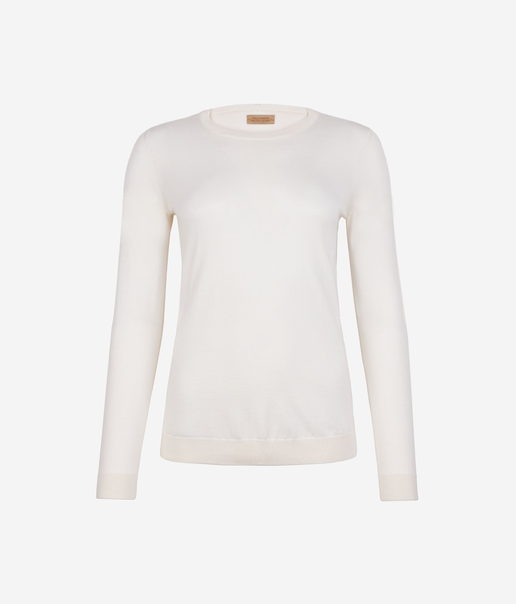 Klasiğin ve çağdaşın ince birleşimi tüm Falconeri koleksiyonunun stiline damga vurur. Değerli malzemelere duyulan tutku ve detaylara gösterilen özen saf ultrafine cashmere gibi ikonik ipliklerin seçiminde ve stillerle biçimlerin dengesinde açığa çıkar. Ceket altına giymek için mükemmel olan bu bisiklet yaka kazak her kadının gardırobunda olması gereken temel bir parçadır.