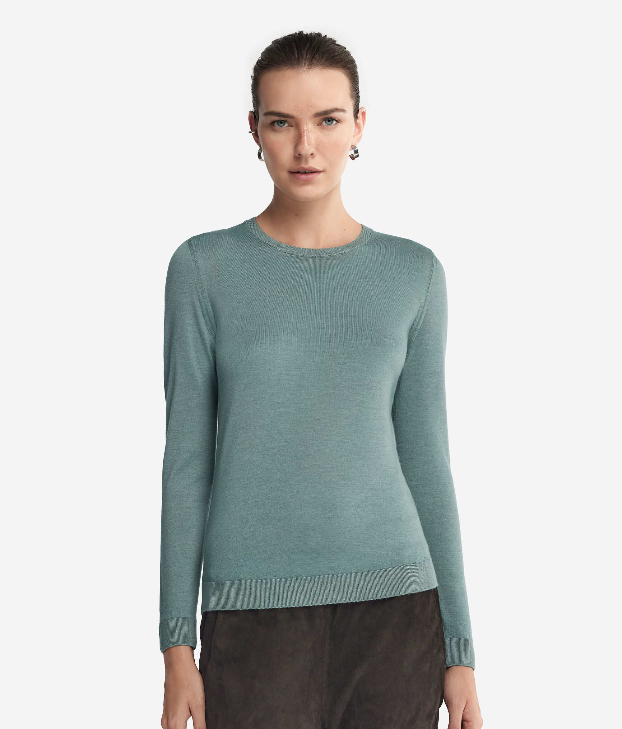 Klasiğin ve çağdaşın ince birleşimi tüm Falconeri koleksiyonunun stiline damga vurur. Değerli malzemelere duyulan tutku ve detaylara gösterilen özen saf ultrafine cashmere gibi ikonik ipliklerin seçiminde ve stillerle biçimlerin dengesinde açığa çıkar. Ceket altına giymek için mükemmel olan bu bisiklet yaka kazak her kadının gardırobunda olması gereken temel bir parçadır.