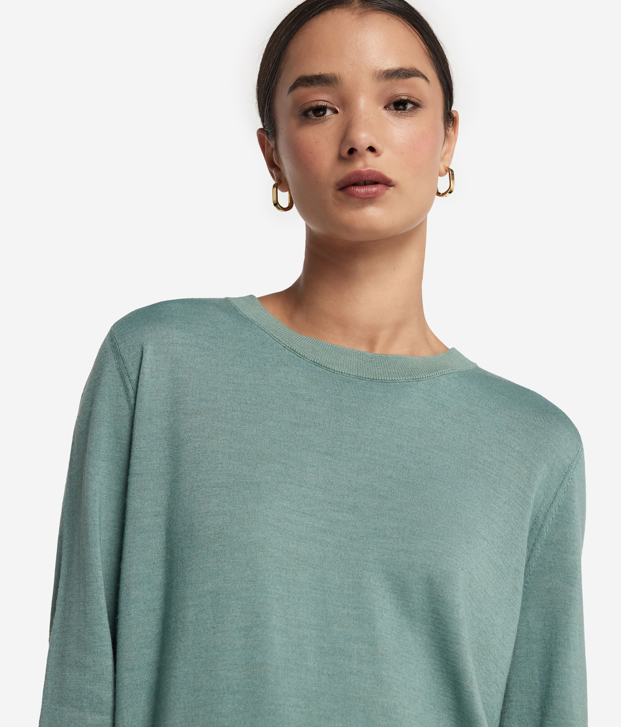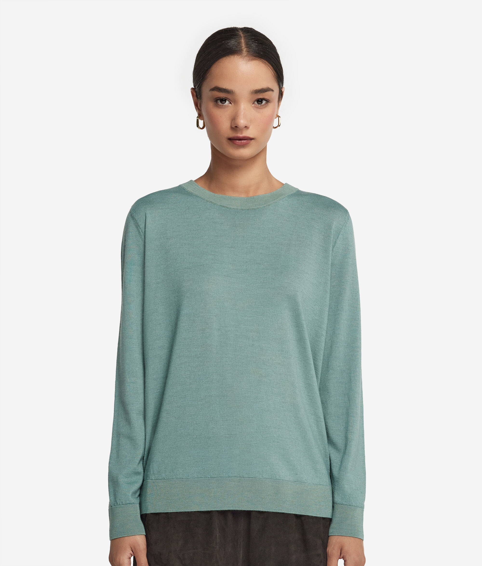 Bu lüks Ultrasoft Cashmere yuvarlak yaka kazakla gardırobunuza lüks ve konfor ekleyin. Tasarımı zenginleştirmek için, parçanın sade stiline zarif bir görünüm katacak şekilde yakada, manşetlerde ve bel bitişinde ribana detayı uygulanmıştır. Serin günler için vazgeçilmez olacak bu parça hem iş hem de günlük kullanım için mükemmeldir.