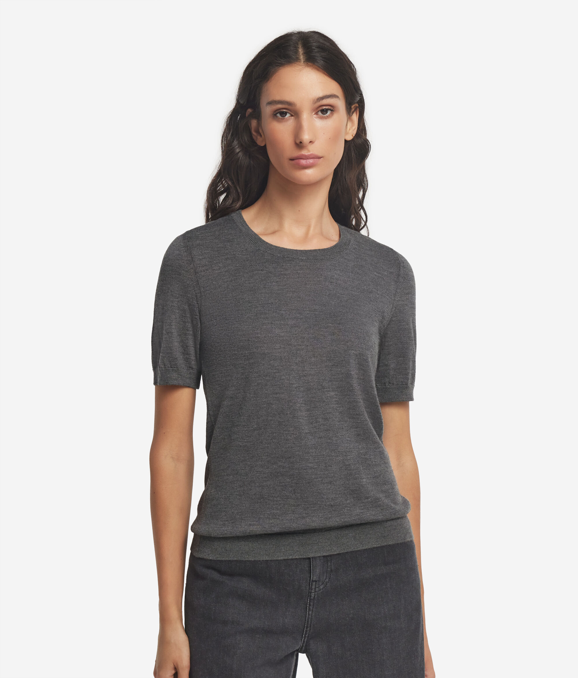 Falconeri'den sade stil ve temiz çizgileri sevenler için kısa kollu ultrafine cashmere polo yaka. Ceket altına giymek için mükemmel olan bu yuvarlak yaka kazak her kadının gardırobunda olması gereken temel bir parçadır.